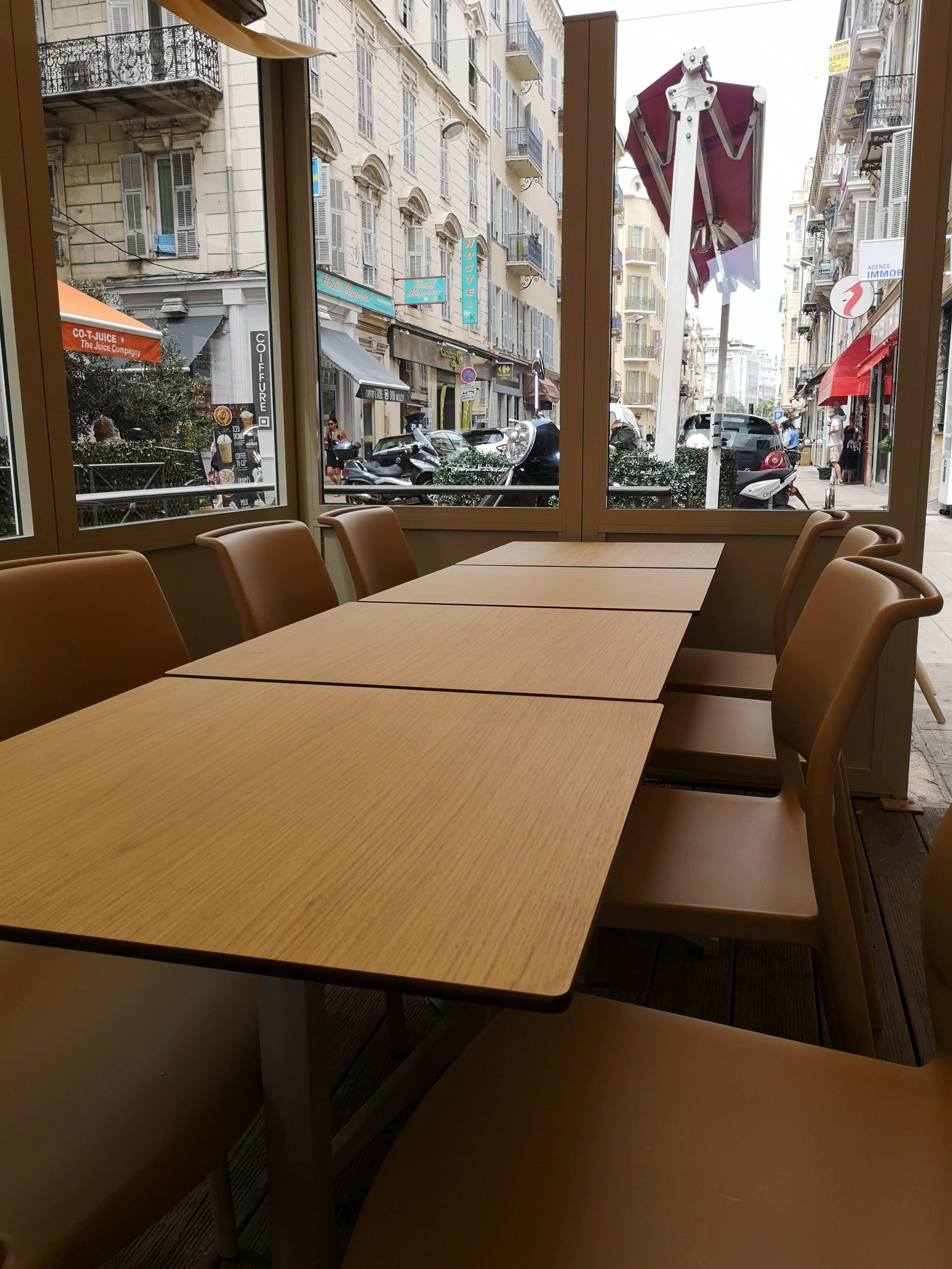Un balcon en Italie en plein centre de Nice. Tout est bon, de qualité, les produits frais. Un joli voyage.