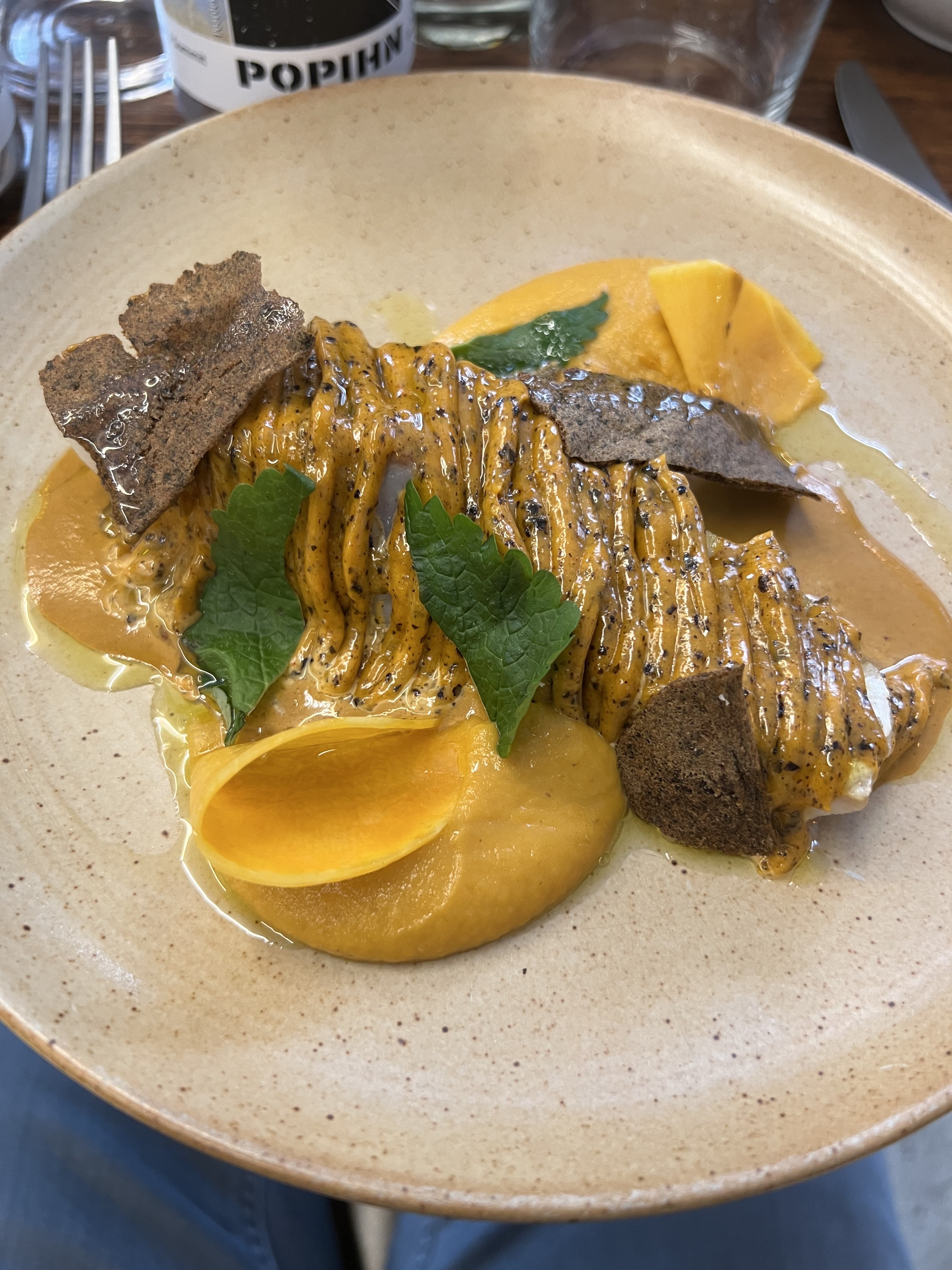 Des mets délicieux et recherchés, des saveurs présentes et de très jolies liaisons. Un dessert whouaou, équilibre parfait de la datte et du potiron.