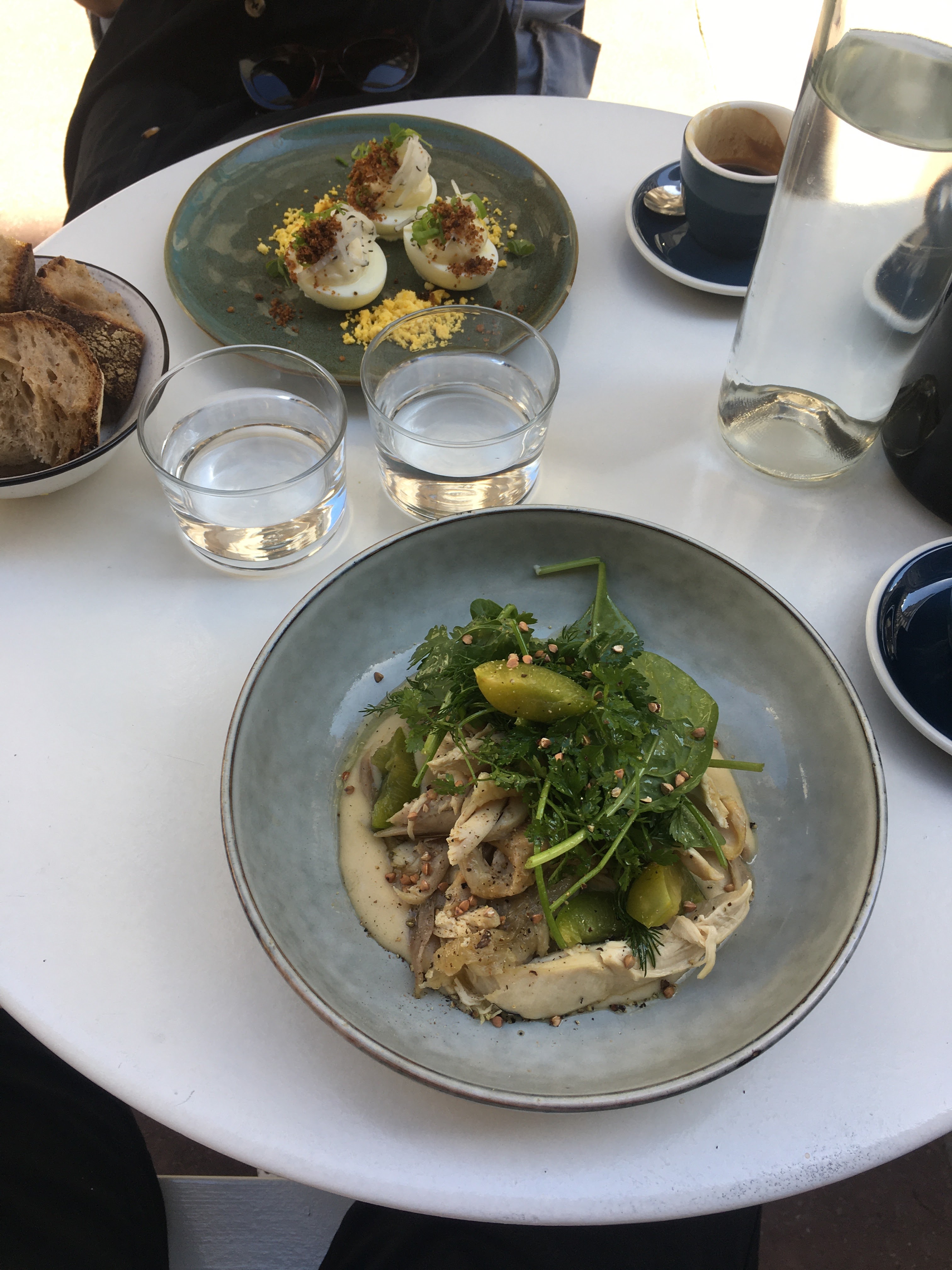 Nous avons passé un très bon moment au déjeuner à Vacarme. Des oeufs mimosa très bien fait, bien cuit donc pas cotonneux et avec une mayo légère et gourmande. Un velouté de carottes au goût très fin et à la fois un peu rustique mais surtout réconfortant. J'y ai savourer le meilleur maquereau de ma vie tellement fondant avec du caractère et le poireau est à tomber. Petit bémol, la tarte au chocolat et le gâteau au citron qui sont tout les deux très bon manquent un peu de sophistication à comparaison avec le reste du repas. Mais c'est bien parce qu'il faut trouver un petit défaut 😉