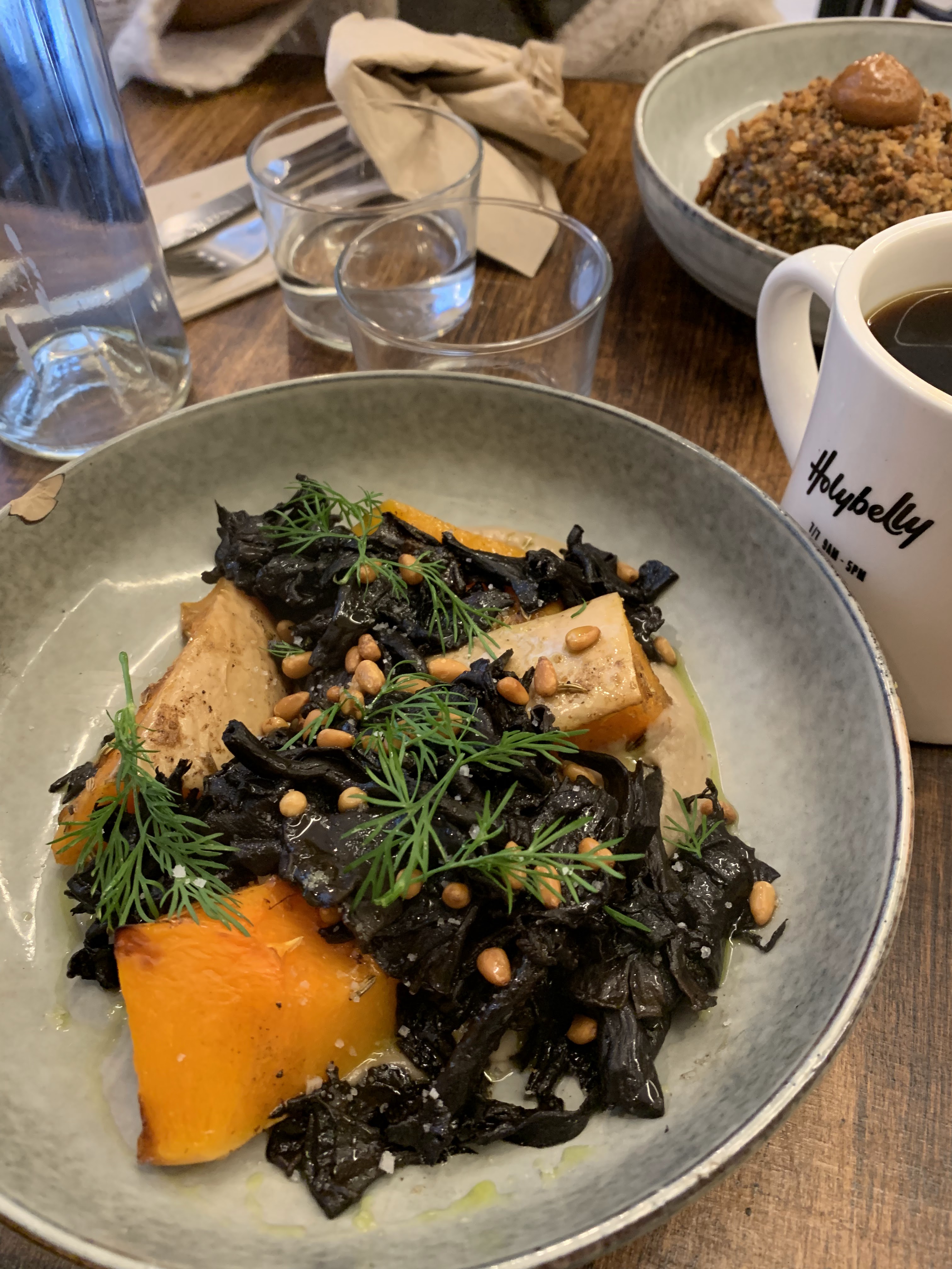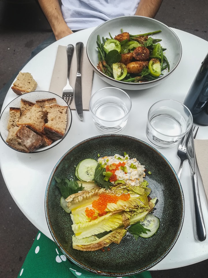 De passage à Nantes, j’ai voulu testé ce restaurant : Ambiance/Déco très très sympa (je changerai la table qui bouge bcp 🙈) Acceuil nice & casual Entrée : aux poireaux… It was just PERFECTION , très très bonne! & Les œufs… yummy! Plat : à base de choux à la crème de coco et des haricots blancs … très bon! (Dommage Qu on n a pas du poisson dans le menu) Dessert: Tarte tatin avec une crème à la reine des prés… hmmm, pas mal Et on a pris le rouleau finlandais à la cannelle pour le goûter : j’ai bien aimé !