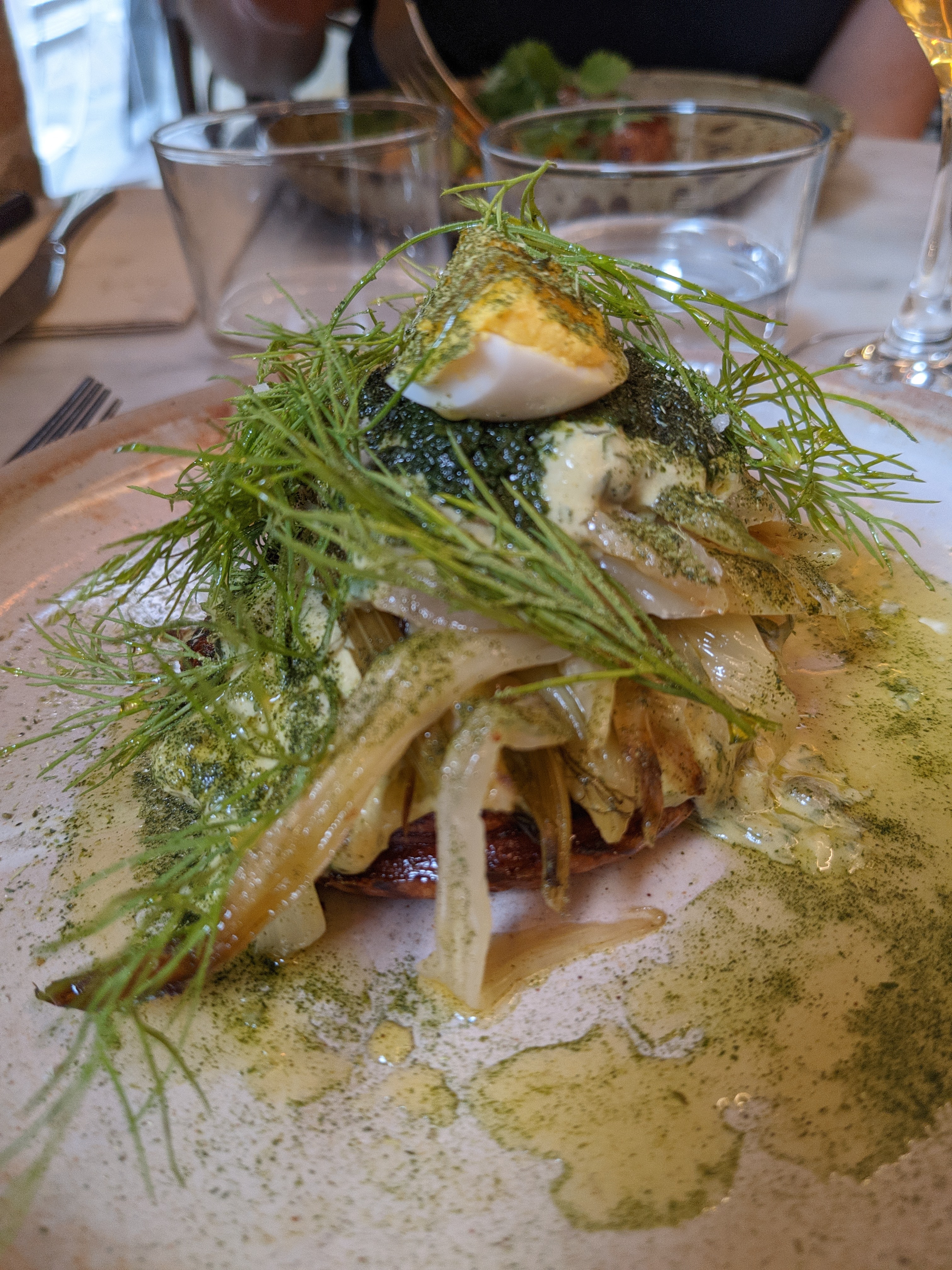Expérience toujours aussi réjouissante de créativité et de réconfort: coques et émulsion de pommes de terre hyper équilibrée, saucisse briochée régressive avec une béarnaise montée qui déboite et enfin dessert citron, fenouil et orties juste incroyable et inattendu! Service au top