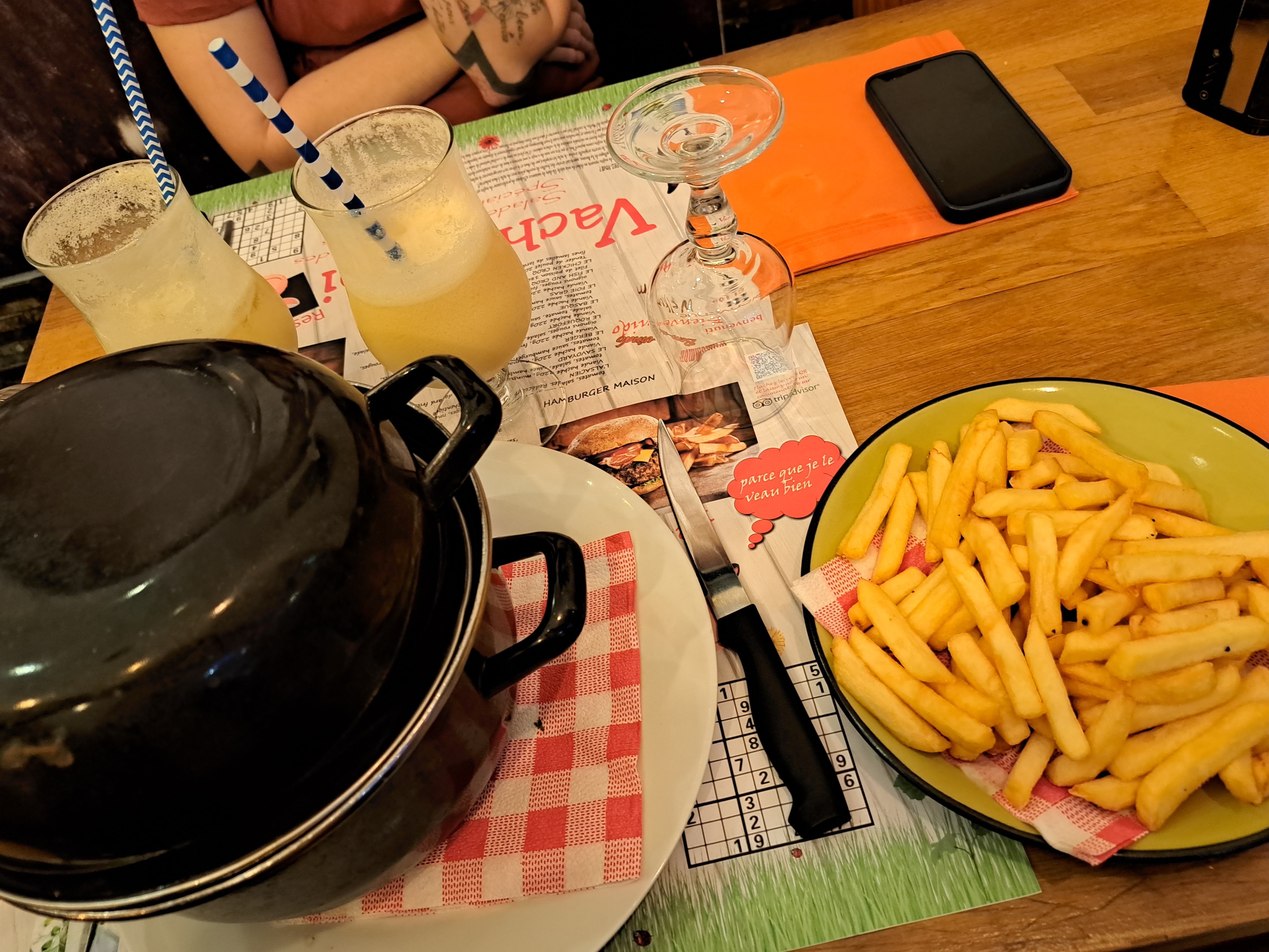 Repas copieux assuré personnel aimable !! Pas de formule adulte dommage formule enfants manque le dessert Prix un peu cher sur les boissons mais rien de plus que la plupart des commerçants du coin. Attention les moules piquantes sont très piquante réserver au adorateurs de piments . Une petite déception pour la sauce des moules un peu trop limité. A part ça aucun désagréments mérite comme même un 4 Juste des ajustements à faire pour du parfait .