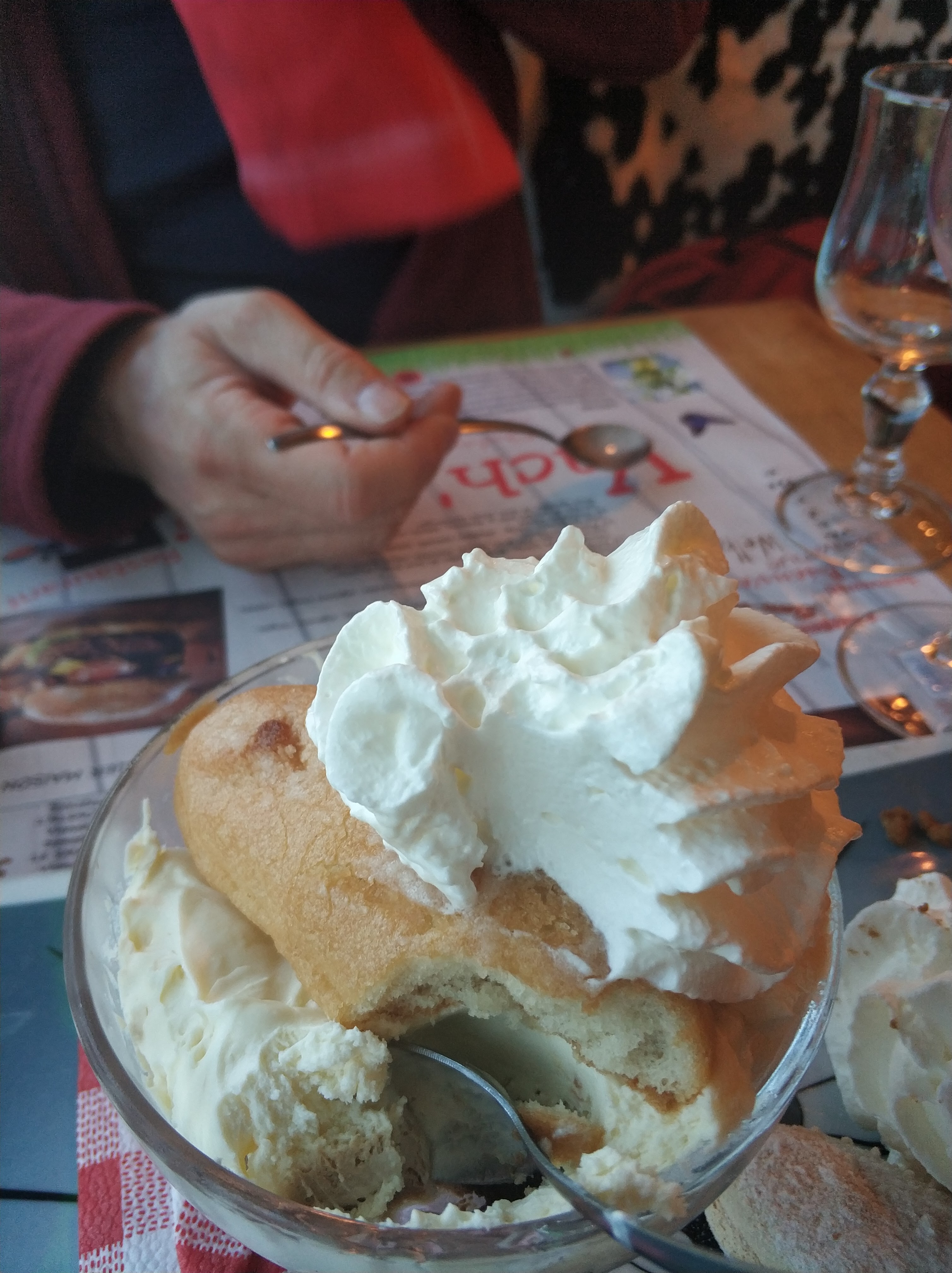 Nous avons été servi par un serveur et heureusement pas sa collègue qui préférait faire son one woman show avec des clients espérant sûrement un pourboire qu'elle n'a pas eu. Je le précise juste parce qu'à l'exétérieur s'est petit et pour le coup manger tranquille n'a pas été facile le temps de son show. Service rapide, de qualité mais attention au dessert ;-). Ma fille a prit un chocolat liégeois qu'elle n'a pas aimé car c'est du VRAI chocolat cacao qui peut sembler amer. Le serveur lui a changé tout de suite par du chocolat au lait. Quant à mon dessert, commandé des profiteroles mais pour deux, j'ai ouvert de grands yeux à son arrivée (voir ma photo). Plat copieux, de bonne qualité.