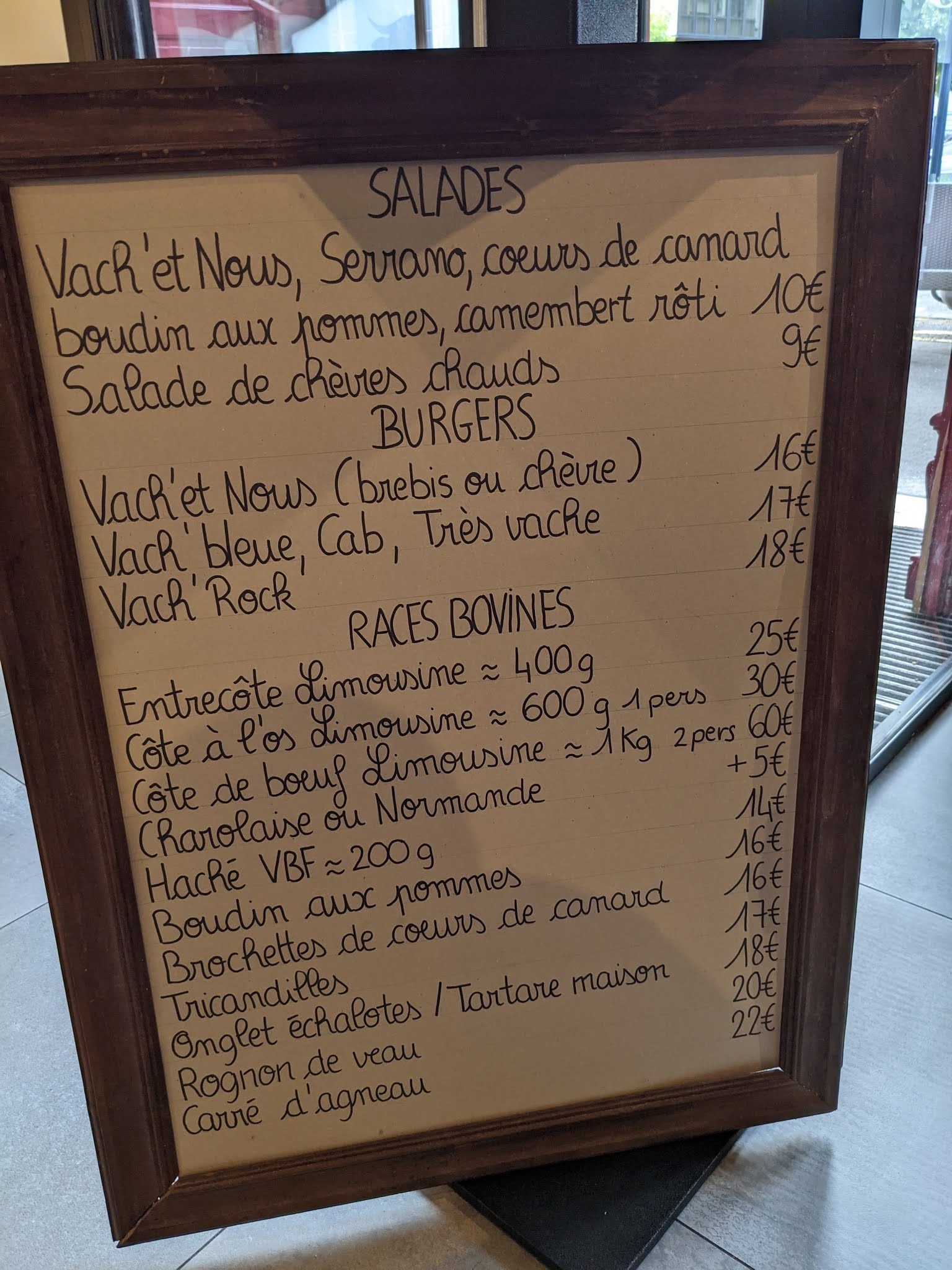 Vous aimez la viande ? Une seule adresse : le Vach&Nous ! Tout est bon, même le burger Végan. Mais si vous voulez vous faire plaisir prenez au moins l'entrecôte limousine 😊. Bref c'est mon restaurant préféré pour manger une bonne entrecôte.