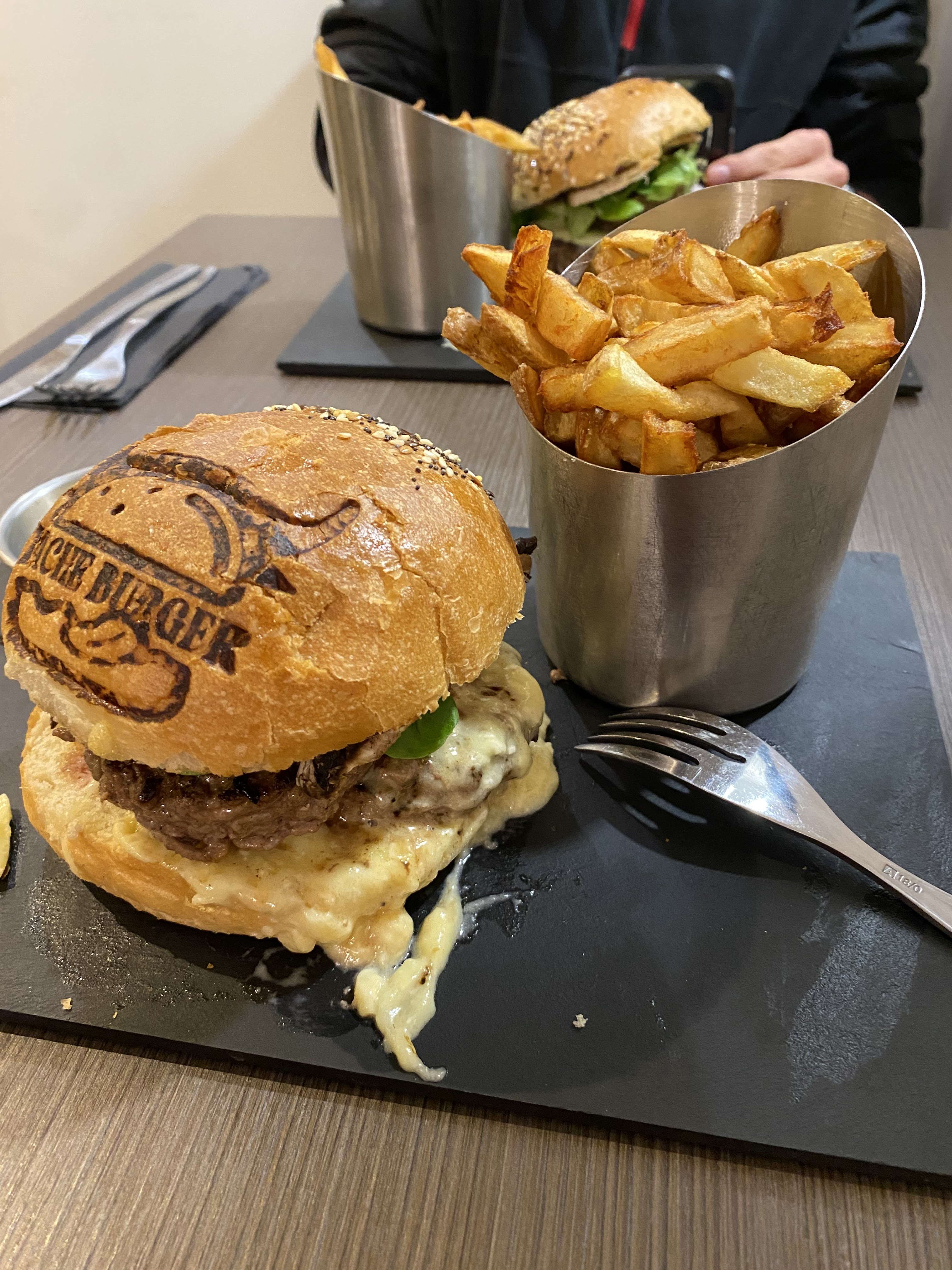 Un grand bravo pour la cuisine des burgers qui sont excellents et très bien proportionné, la viande est très bonne, pas sèche, les ingrédients de qualité et les frites, un régal (un chouille froide malgré tout). Mais je souligne surtout la qualité de service. Le jeune homme extrêmement polis et accueillant, disponible, sans être intrusif ! Venant de Reims, ça fait très plaisir de trouver des restaurants avec des serveurs aimables !! Je recommande à 200%