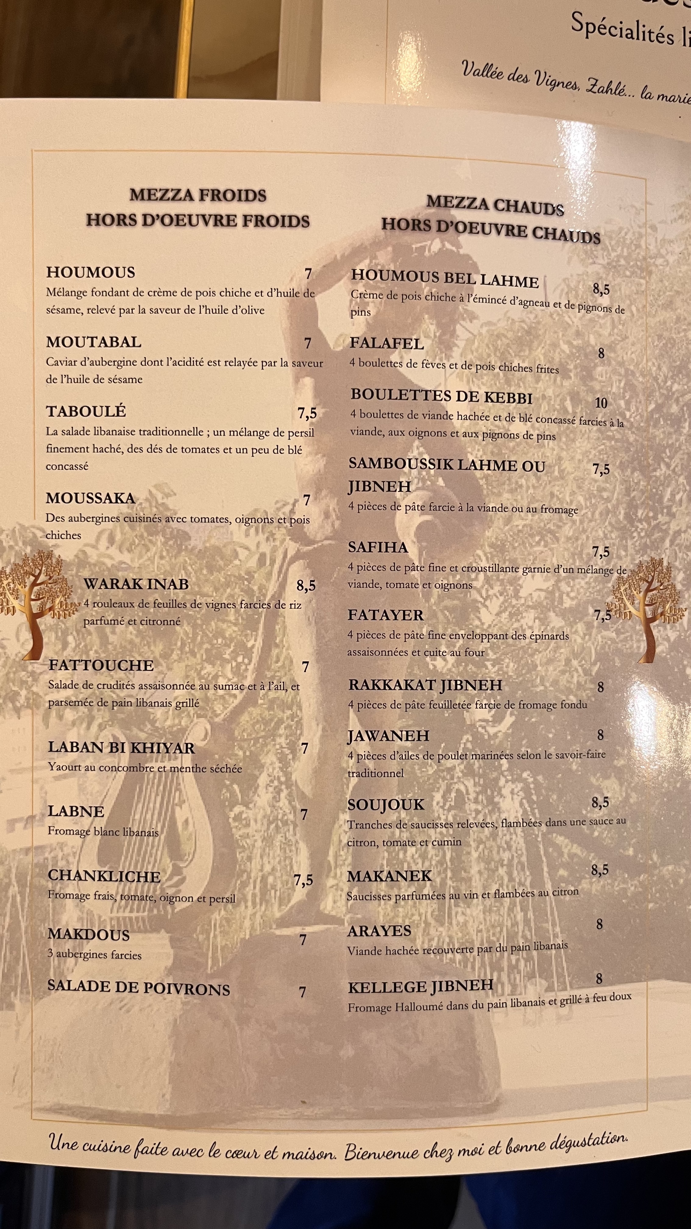 Découvrez une explosion de saveurs authentiques au restaurant libanais. Des mezze frais aux grillades savoureuses, chaque plat est une expérience à savourer. L'ambiance chaleureuse et l'accueil attentionné par la patronne, complètent ce voyage culinaire unique. N’hesitez pas à découvrir ou redécouvrir le Liban à chaque bouchée à la Vallée des vignes.