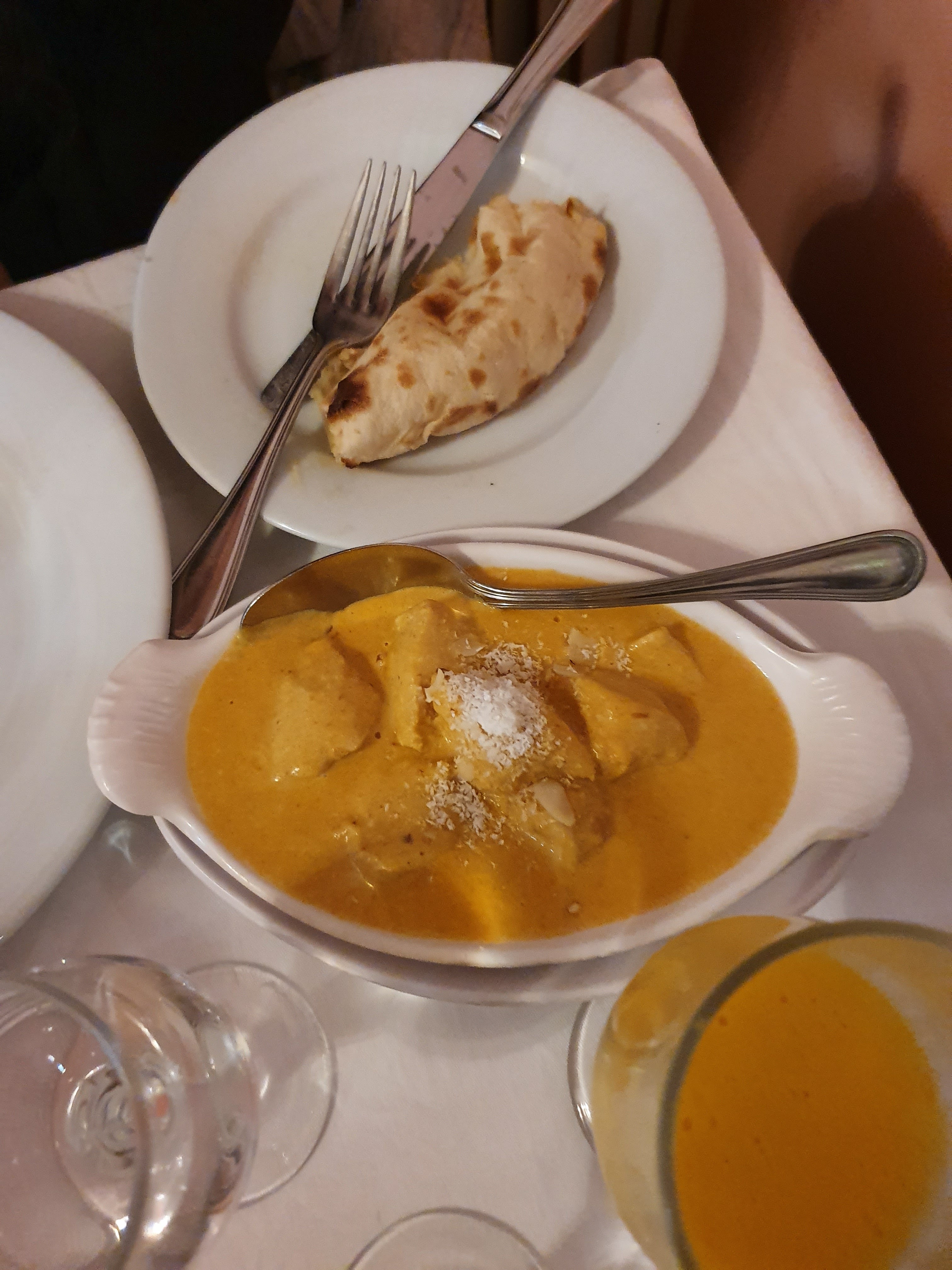 Très déçue. Nous y sommes allées entre amies un soir de semaine. Le restaurant était quasi vide. L'accueil fut correct et les entrées assez bonnes (samoussa et nan). Toutefois les plats étaient fades, sans saveur. Nous avons commandé le poulet Shahi korma qui devait contenir des noix de cajou et pistache, il n'y en avait pas. Le butter chicken n'avait quant à lui pas le goût du butter chicken.
