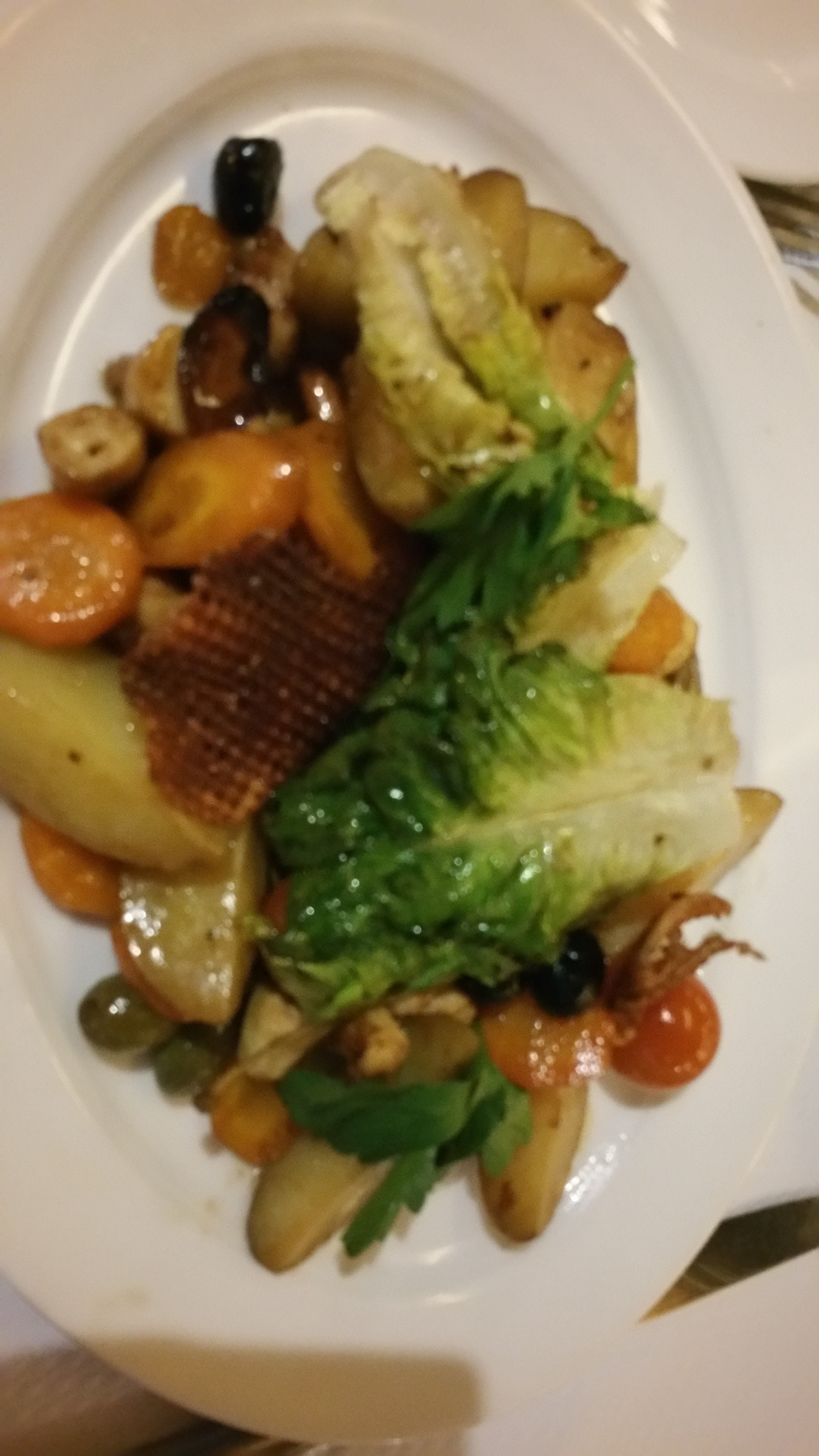 Légumes dans une salade chaude très mauvais, voir pas mangeable (gout très bizarre). 30min après et j'ai déjà mal au ventre, j'ai laissé la moitié de l'assiette à part le poulpe ...