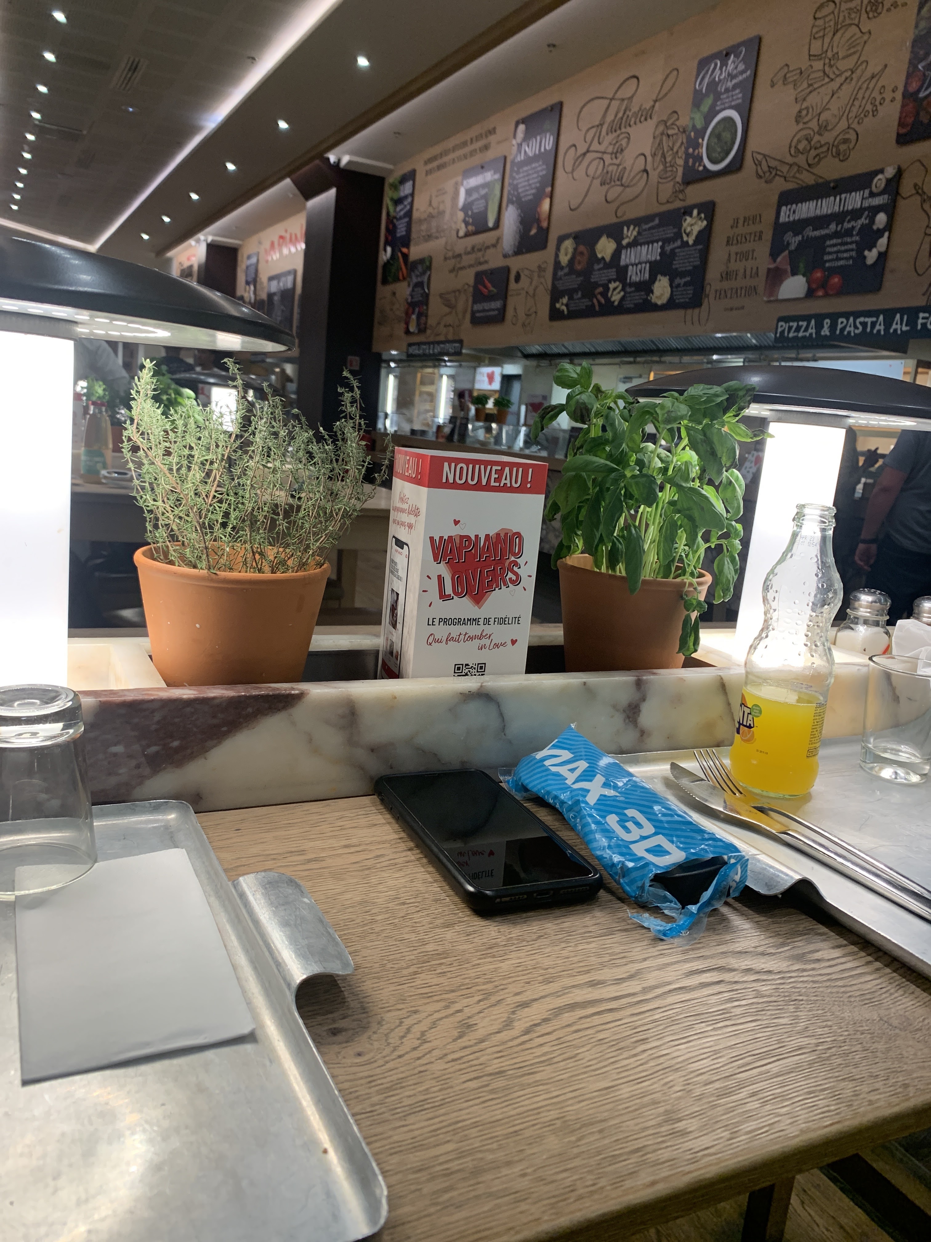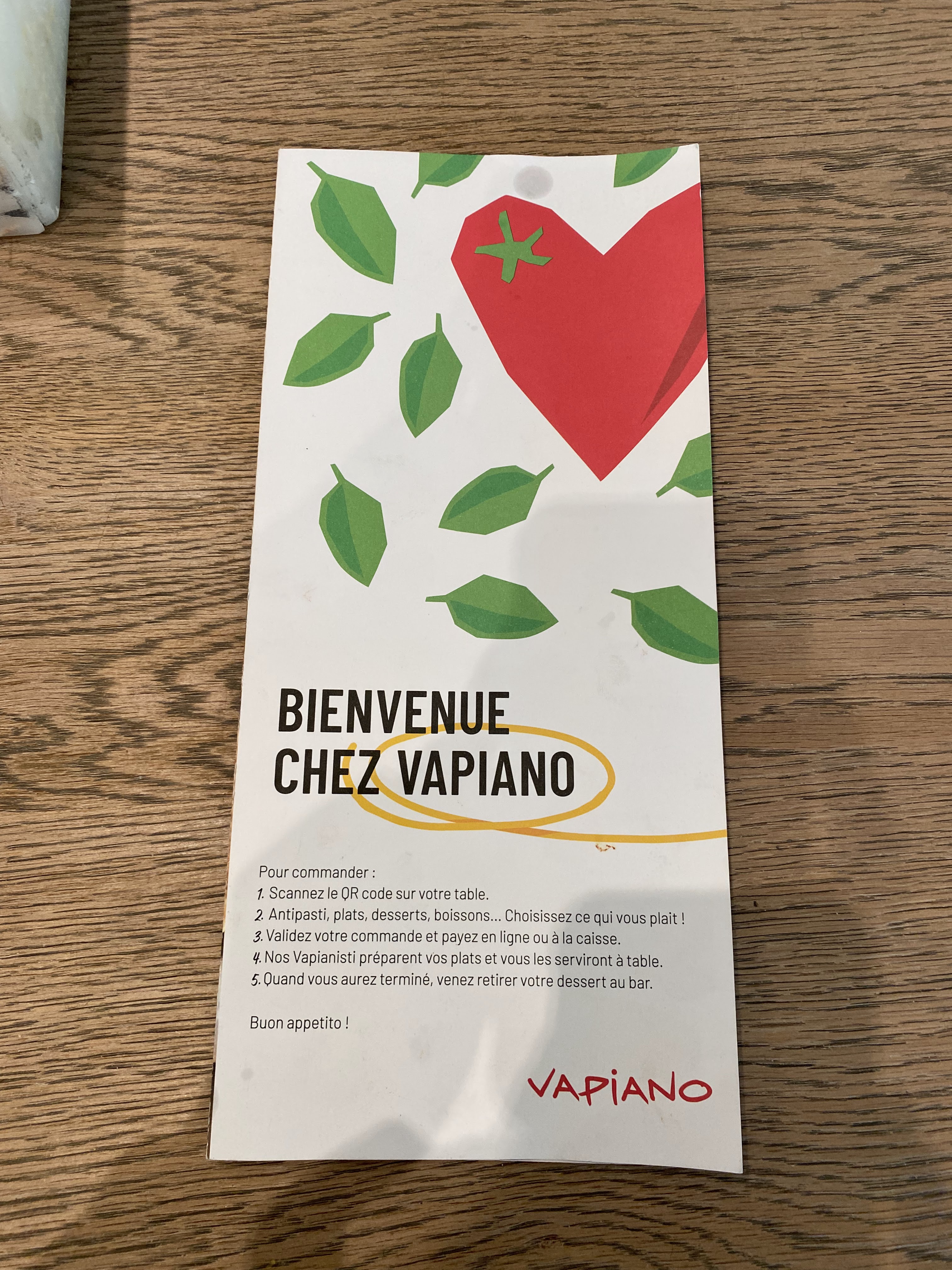 Bonne expérience pour une première fois chez vapiano . Nous sommes venus manger en famille ( 2 adultes et 1 enfant) pour 60 euros en se faisant plaisir . Nous avons trouvé nos plats très bons et généreux , l'accueil sympathique. C'est vrai qu'avec le système de commande et paiement en ligne nous n'avons pas le contact avec les serveurs mais ils restent disponibles pour toutes questions. Nous avons passé un bon moment et nous reviendrons avec plaisir. A noter : Chaises hautes disponibles pour les enfants et accessibles PMR.