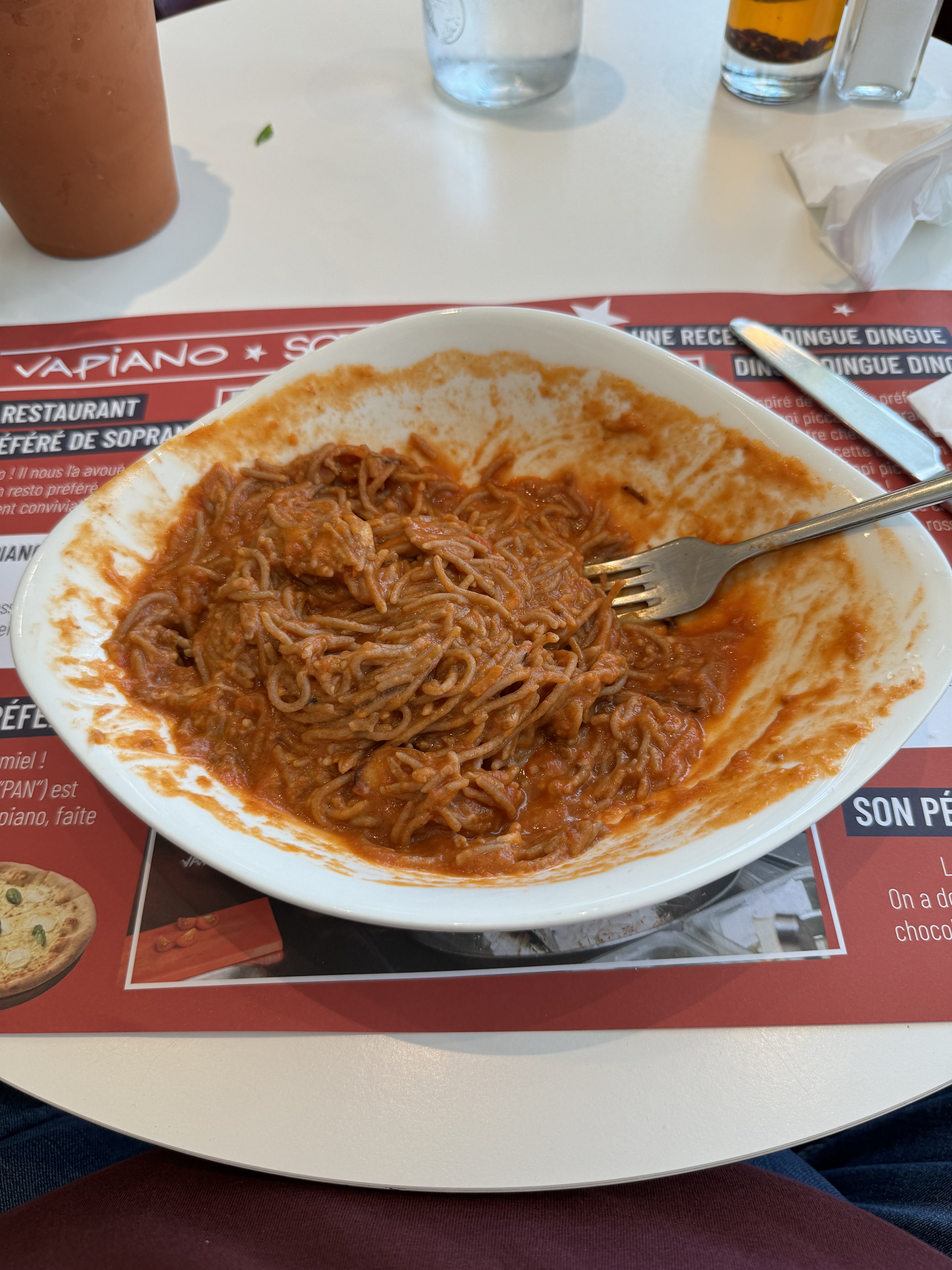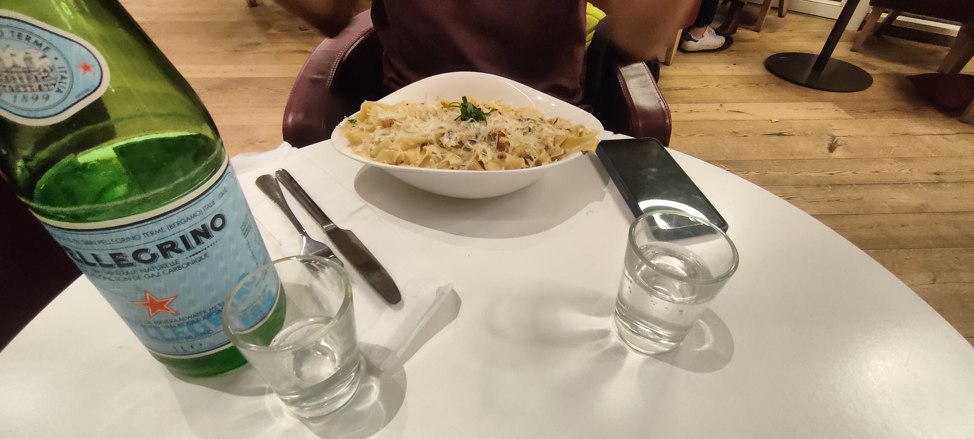 Les sauces de nos pattes étaient plutôt moyennes, et la quantité de pattes un peu limite. Et nous ne sommes pas de gros mangeurs La quantité de tomates cerises dans les pomodoro limite aussi ( 1 tomates cerise coupé en 4 dans l'assiette) Et pour le détail, pas une bière disponible, ni bouteille ni pression. Donc globalement pas génial.