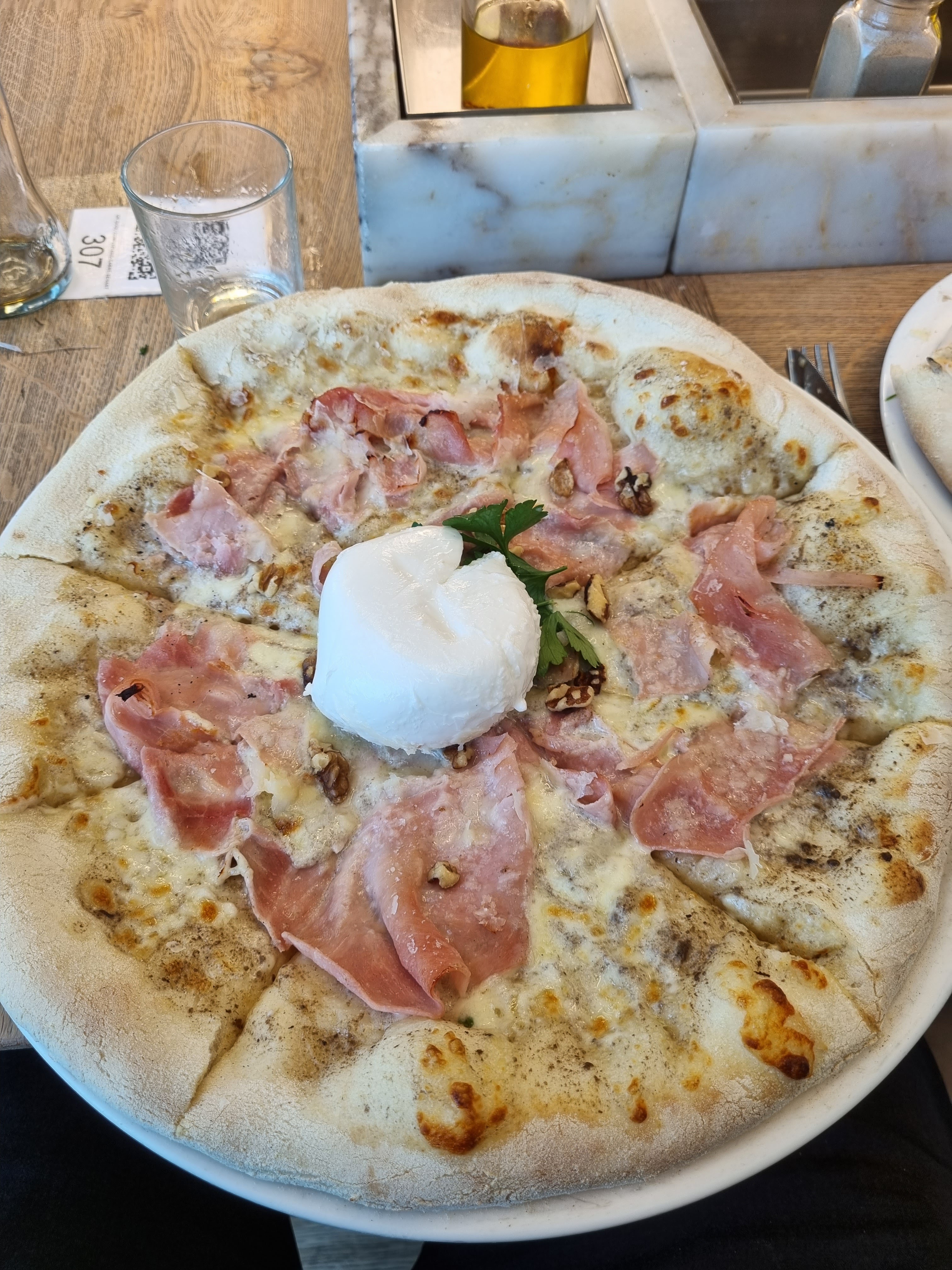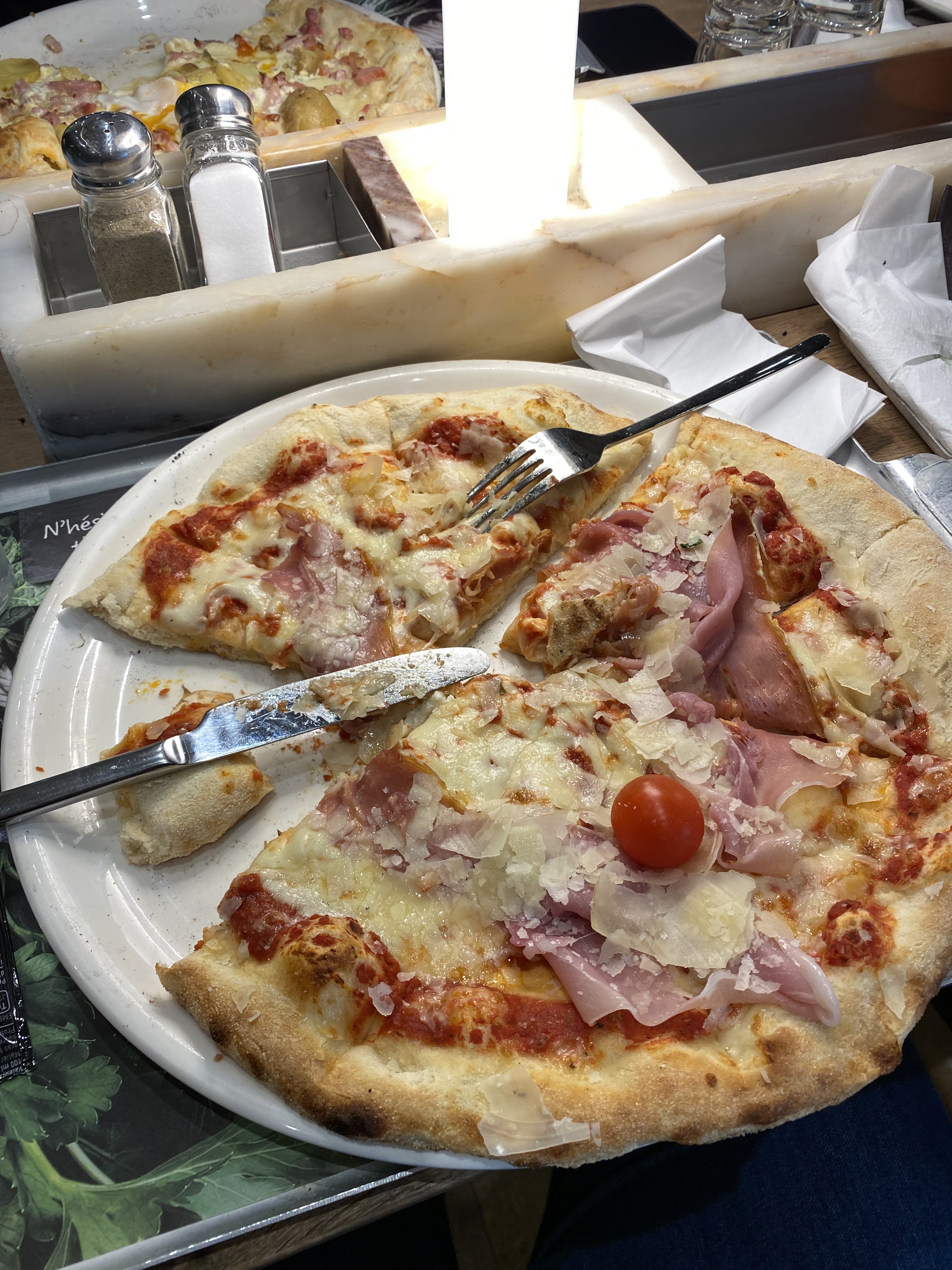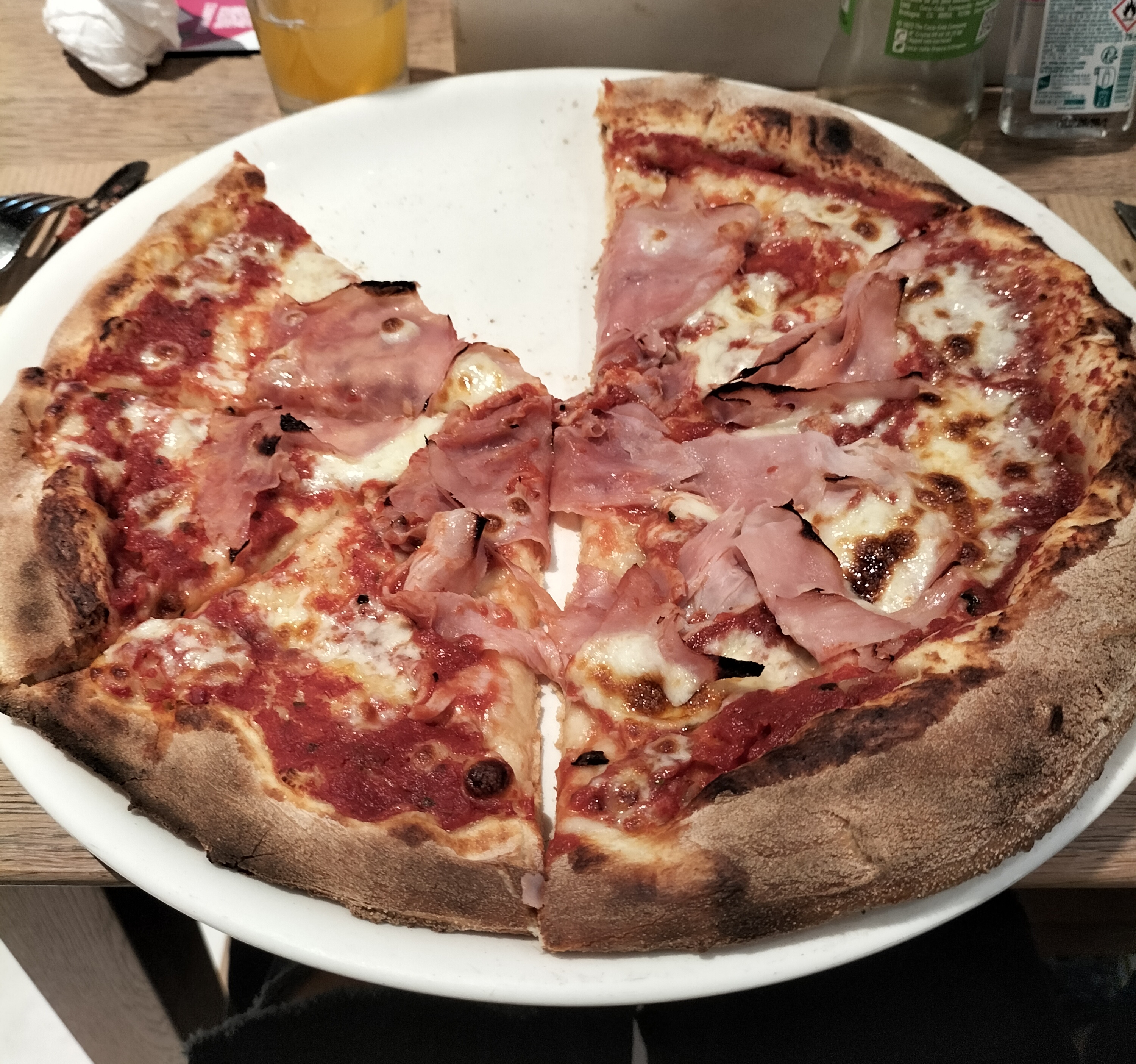 L’environnement est très agréable et propose une variété de plats (pâtes, salade, pizza). Bonne organisation pour le service. Cependant, très mauvaise organisation au niveau de la propreté: les tables ne sont pas lavés, nous avons donc dû demander à ce qu’elles soient débarrassées. La pizza quant à elle n’était pas bonne (j’ai pris une Dell’Alpe) elle manquait vraiment de goût (même les classiques comme les 4 fromages sont fade ) malgré la fraîcheur des ingrédients. C’est dommage, je n’y retournerai pas pour les pizzas.