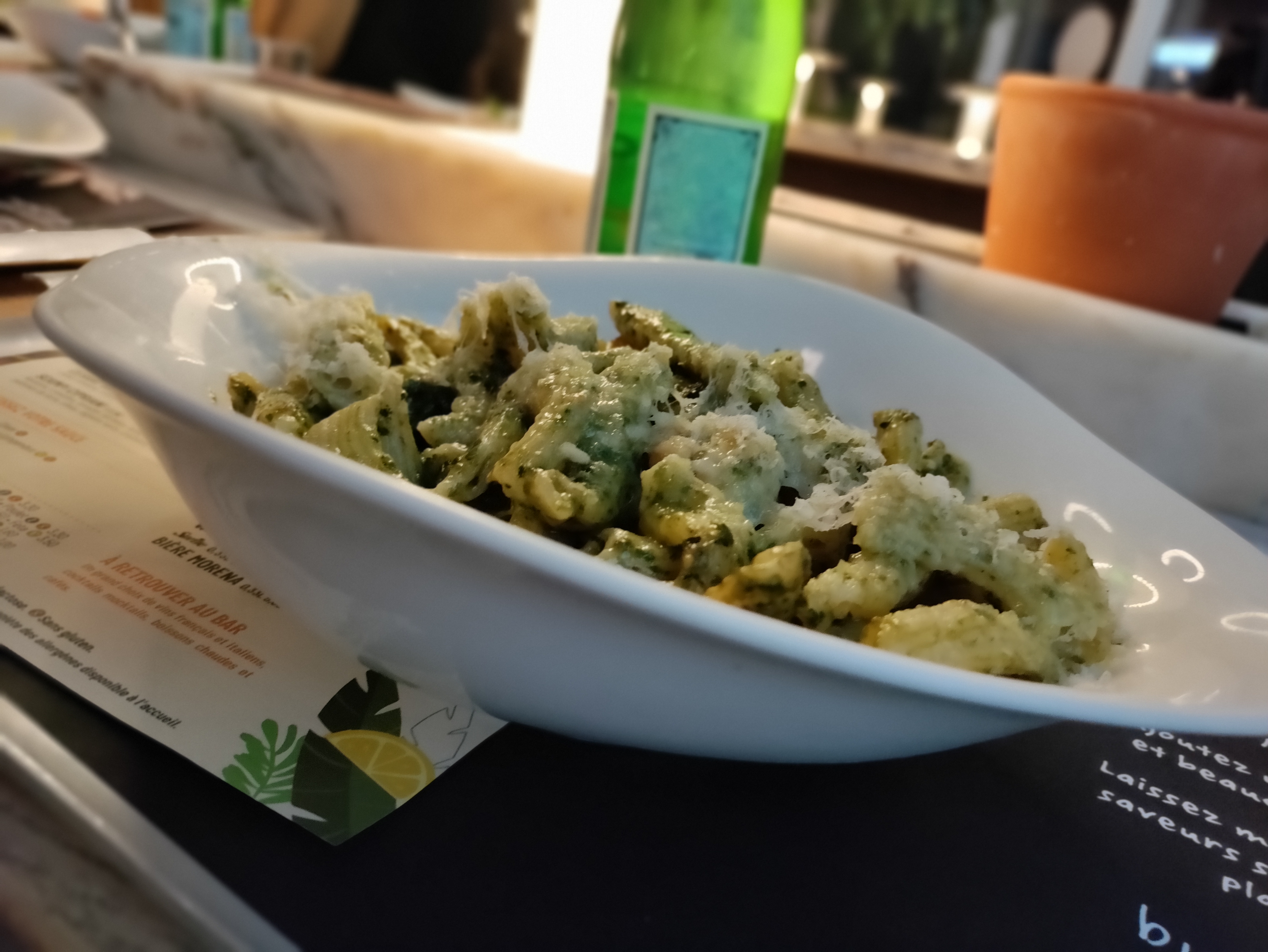 Bonjour, la nourriture est moyenne, j’ai trouver que la pizza Pesto avait un goût de parfum et les pâtes à la truffes était bonne ! J’aime le concept de choisir la forme des pâtes et l’épaisseur de la pizza. Le restaurant était très sales, poussières et restes de nourritures sur la table et le sol en début de service, je n’imagine même pas à la fin… Le personnel pas accueillant du tout, pour le payement on demande Vous voulais votre monnaie? avec un air de laisser la moi, j’ai trouver ça déplacer. Pour nous amener les plats on a le droit à un bonjour sans sourire sans rien, et les boissons était tièdes ! Je déconseille.