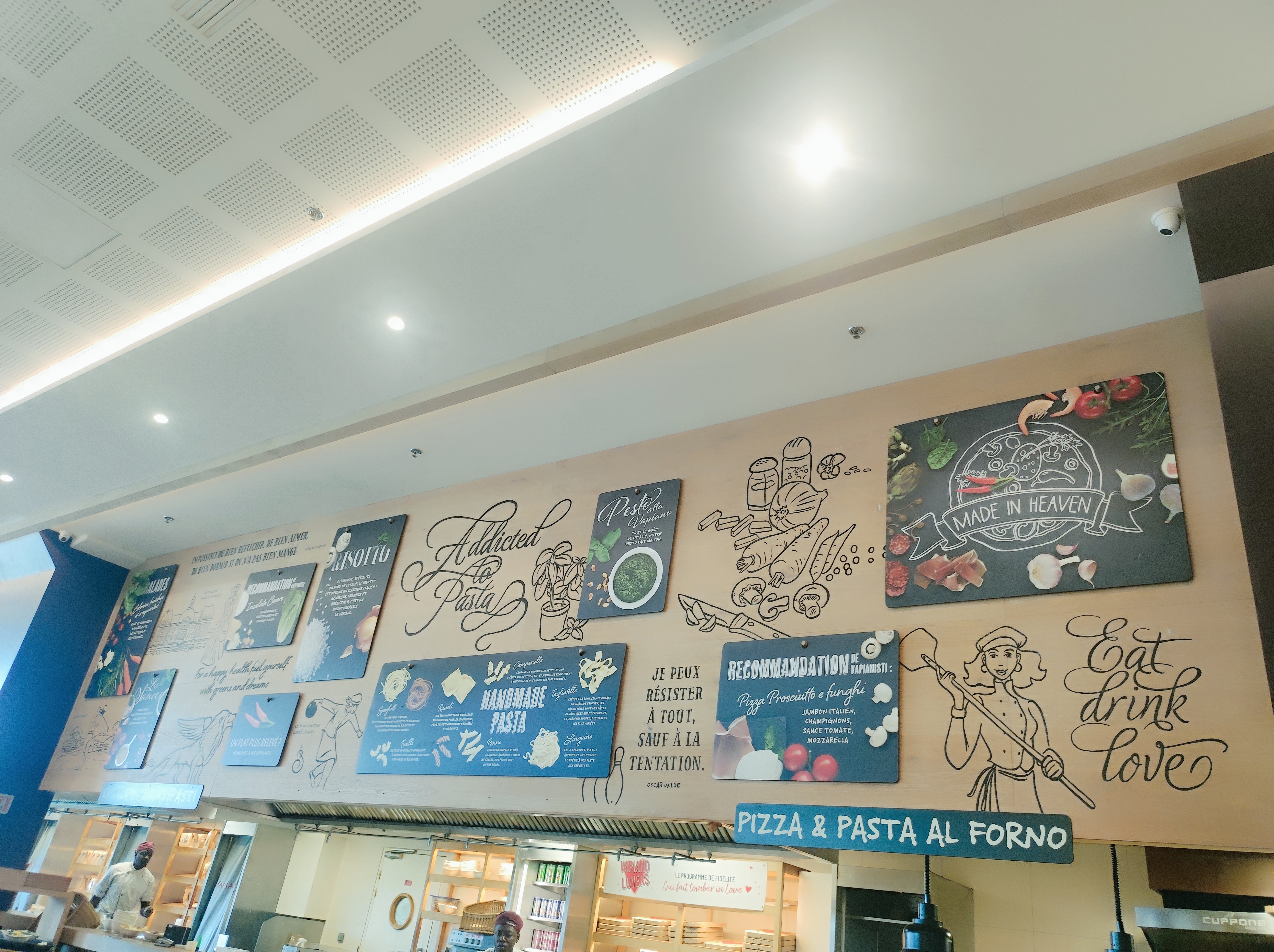 Très bon concept de commandes et pickup ainsi que les différents corners de préparation des plats. Le personnel est avenant et n'hésite pas à nous expliquer et orienter si besoin. C'est dommage que l'attente soit si longue pour récupérer les plats. Bon rapport qualité prix