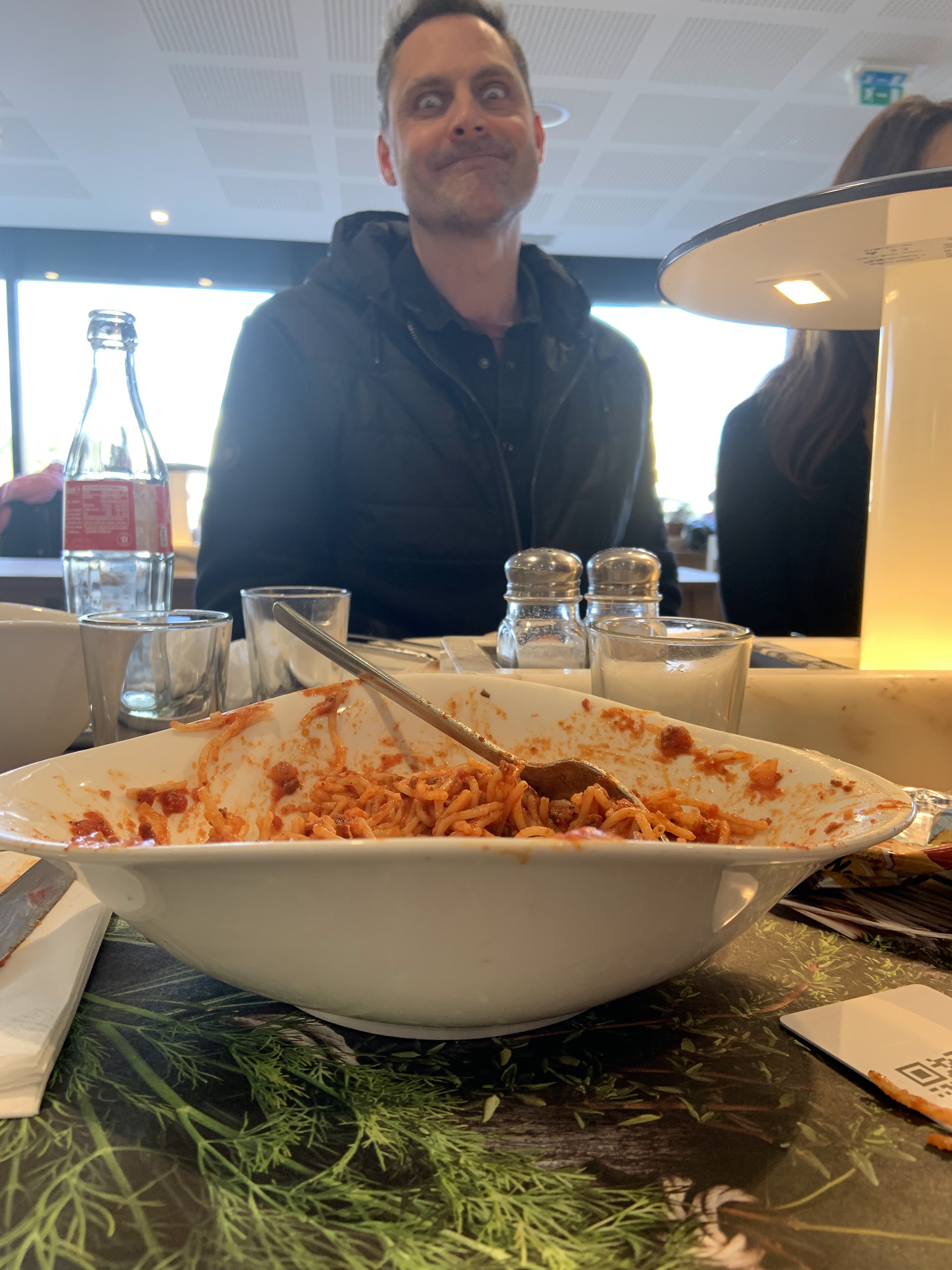 Nous avons déjeuné ici hier, un dimanche. Salle seulement moitié pleine, comme je préfère. La queue d’entrée pas de soucis. La femme devrait faire scanner les passes sanitaires et travailler la caisse en même temps: simple quand il n’y a personne, mais compliqué quand du monde arrive. Alors, on a essayé les pâtes, une calzone, et une salade. La spaghetti bolognaise était sans goût et les pâtes pas assez cuites, presque craquantes. La salade César parfait, calzone délicieux, même si peut-être pas assez chaude à l’intérieur. Le « cheese & garlic bread » était le top! Les autres pâtes carbonara étaient bons. L’ambiance du restaurant est globalement cool, avec le bois et les plantes. A noter: si tu as froid, le chauffage fonctionne bien à côté des toilettes et dans les toilettes. :-)
