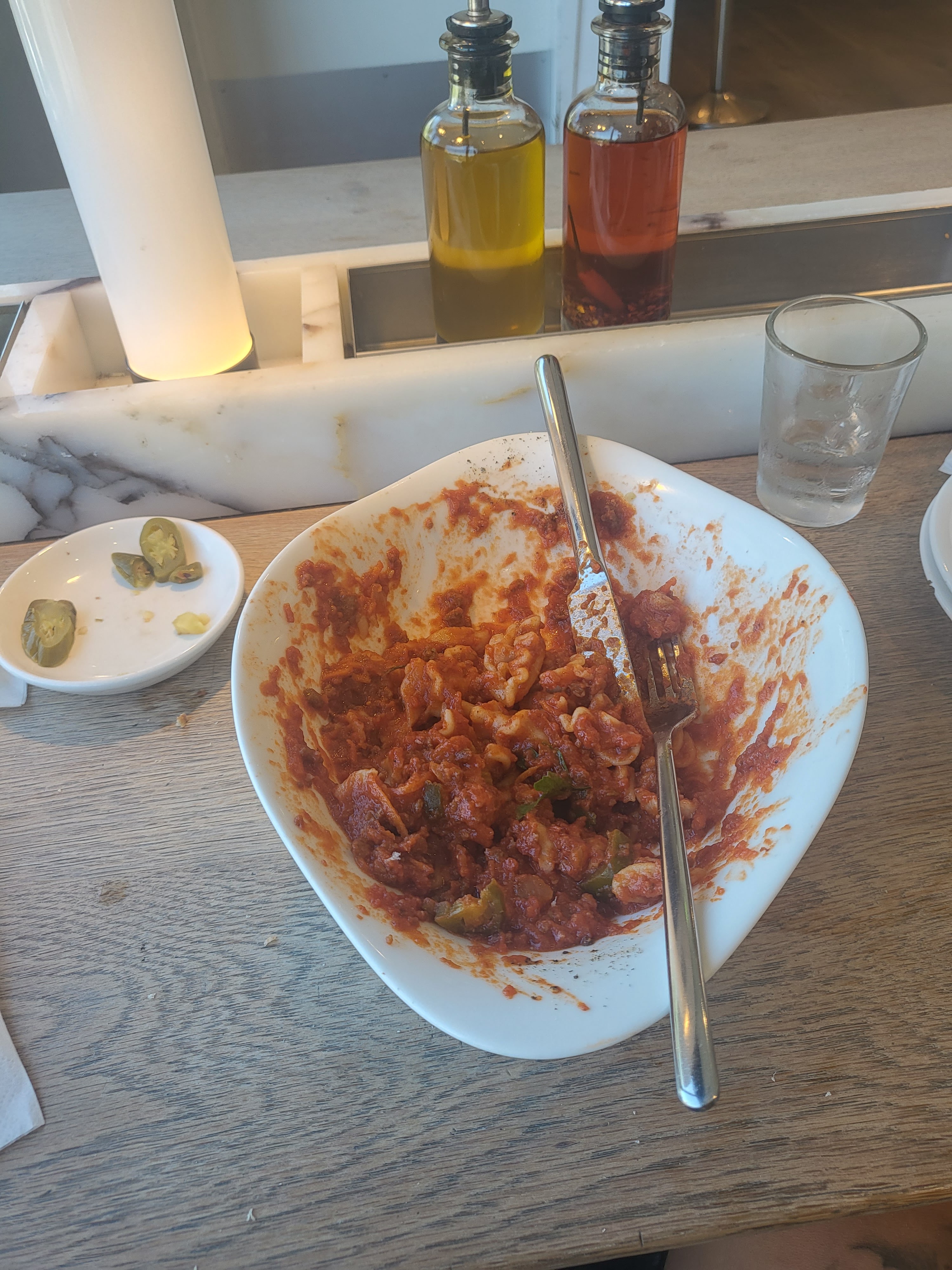 Ne pas avoir toutes les variétés de pâtes disponibles pour un resto de pâtes, c’est plutôt pathétique. La table n’a pas été nettoyée après le 1er service. Beurk! Bref, on ira plus!!!