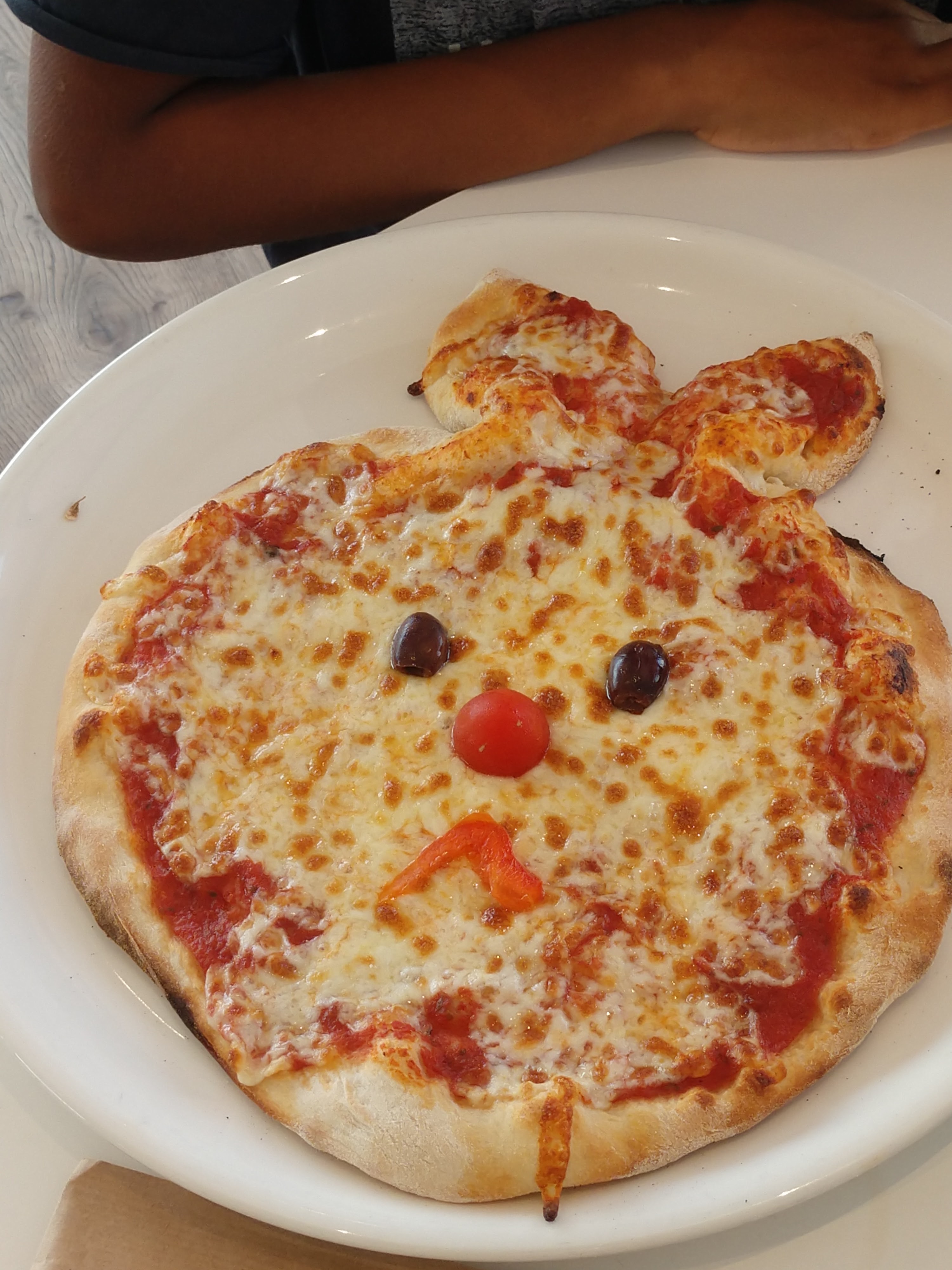 Expérience moyenne… déjà on paye avant d’être servi, c’est particulier. J’ai pris une pizza Chèvre Miel. Elle était bonne par contre la pâte était très fine, pas assez copieuse pour un prix assez élevé. Nous avons aussi commandé un risotto qui était plutôt bon. Dommage juste qu’il ait été servi pas en même temps que la pizza qui est arrivée 20 min après. Ce qui fait qu’on a pas pu manger en même temps. Le menu enfant est correct pour le prix avec la pizza en forme de lapin. Le concept de base du restaurant est pas mal mais l’expérience client mériterait d’être beaucoup mieux vu le prix
