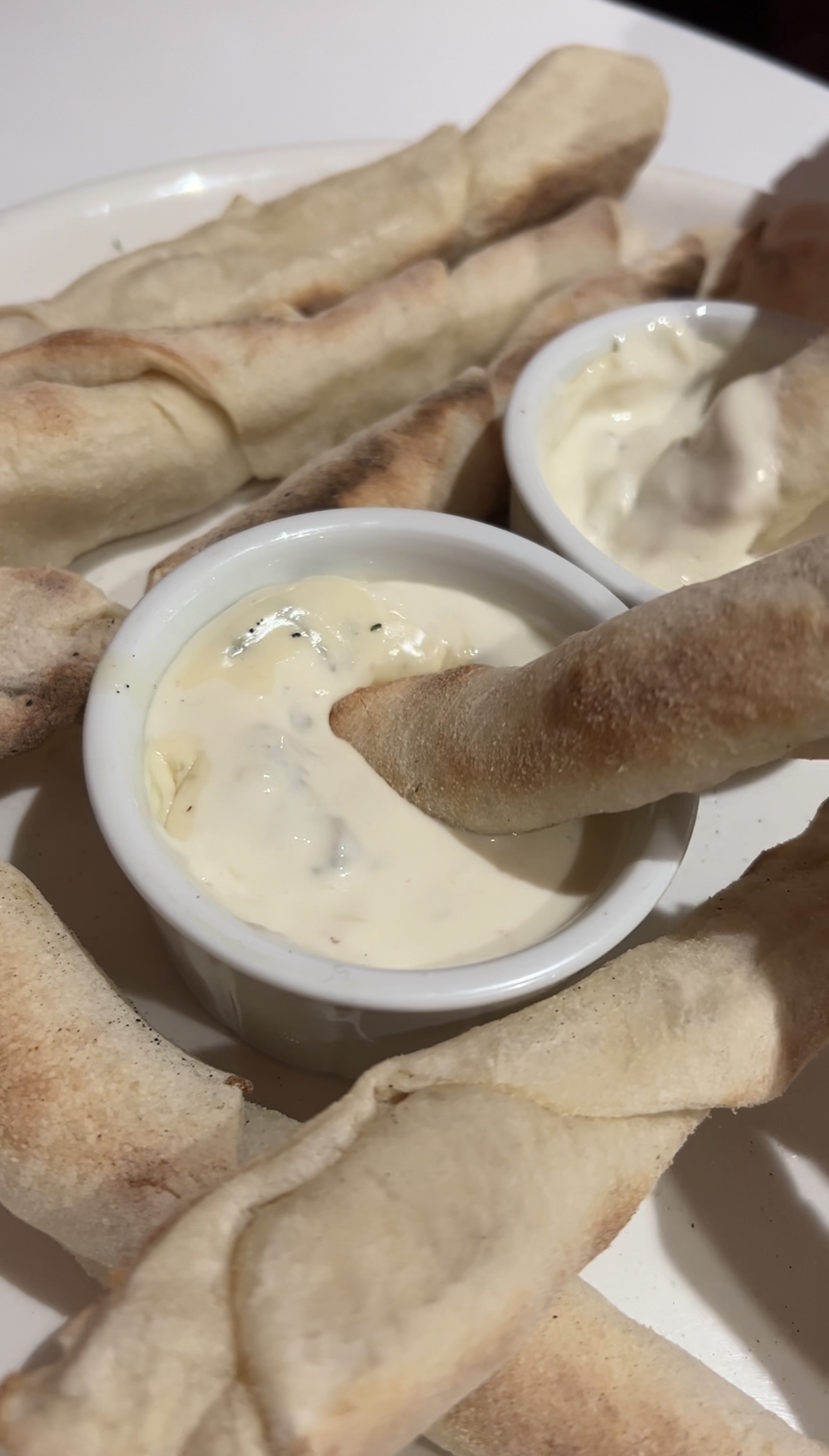 Première fois que je vais dans un Vapiano je n’ai pas été déçue !! J’aime beaucoup le principe de commander sur le téléphone. Il y a deux étages, on est allé en haut. Les plats sont très copieux, on a plus faim après ! J’ai meme demandé un doggy bag, le lendemain les pâtes étaient encore très bonnes. On a pris en entrée une tuerie !! C’est des minis baguettes qui ressemble à de la pâte à pizza, elles sont à tremper dans une sauce au fromage ou ail herbes !