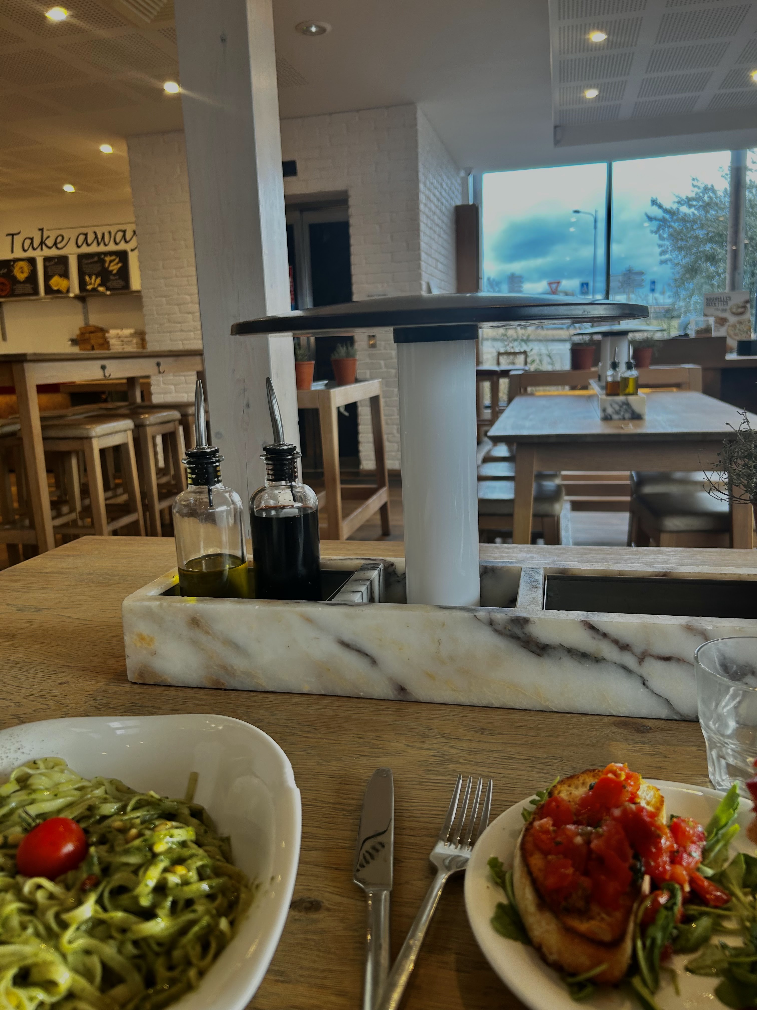 1ere expérience et la dernière je pense , pâtes au pesto qui trempent dans l'huile moi qui adore le pesto je suis vraiment déçue, par contre le pain était vraiment bon, vraiment dommage.