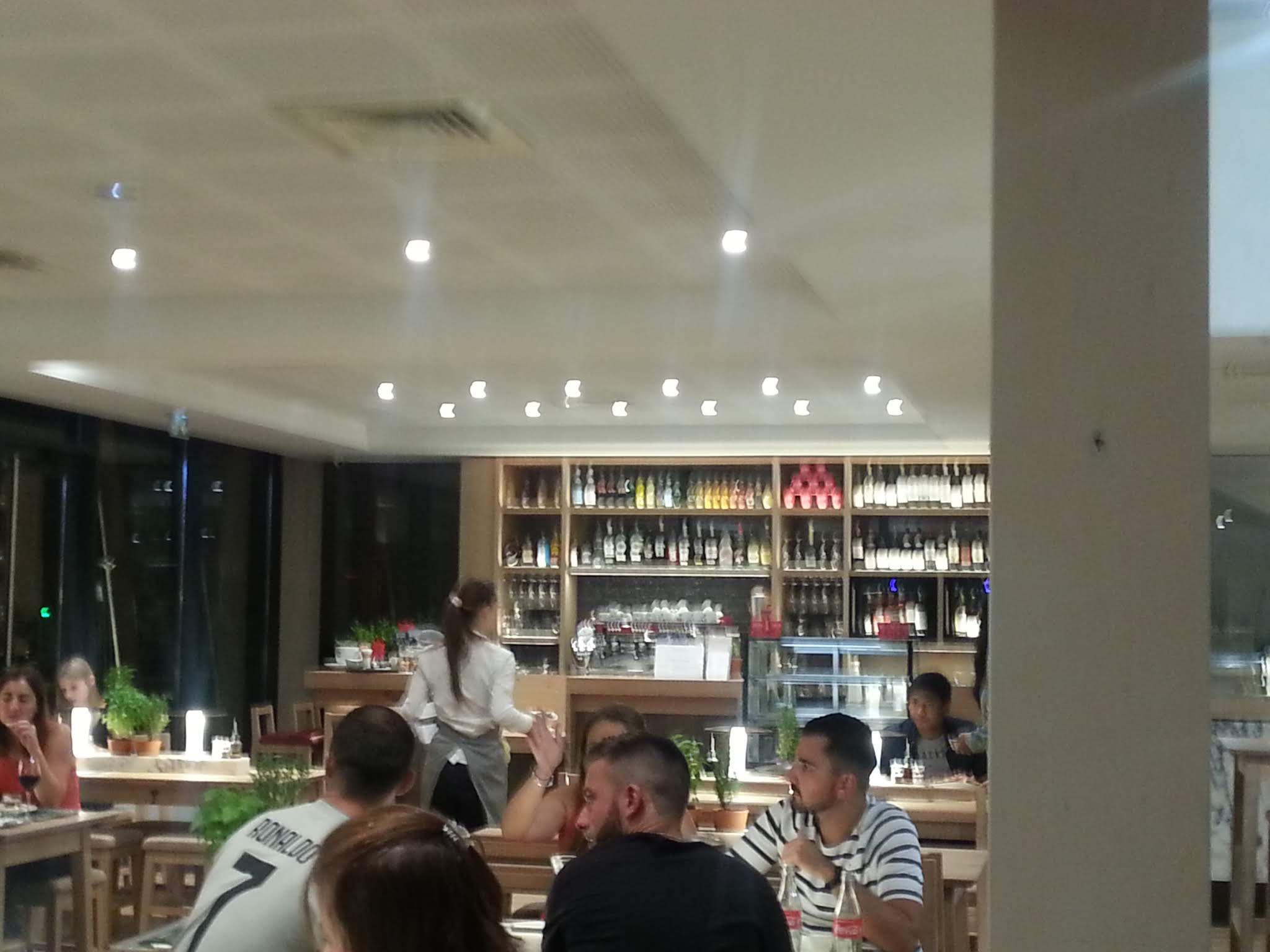 Quand des financiers se prennent pour des restaurateurs ça donne vapiano : ce sont les clients qui vous accueillent et vous expliquent le fonctionnement. Personne pour vous accueillir et vous placer, pas de carte : pensez à prendre votre téléphone pour commander. Ce sont les clients qui vous conseillent aussi sur les menus. Introvertis n’ayez crainte personne ne viendra vous parlez, vous pouvez venir sans soucis. Vous avez besoin de quelque chose ? Le service se fait par vous même. Pour faire simple ça donne : payez, mangez, et partez. Pour la cuisine, les plats sont dans la moyenne de ce que l’on espère en venant ici, je reste sur ma faim. Le lieu et sa décoration sont bien pensés.