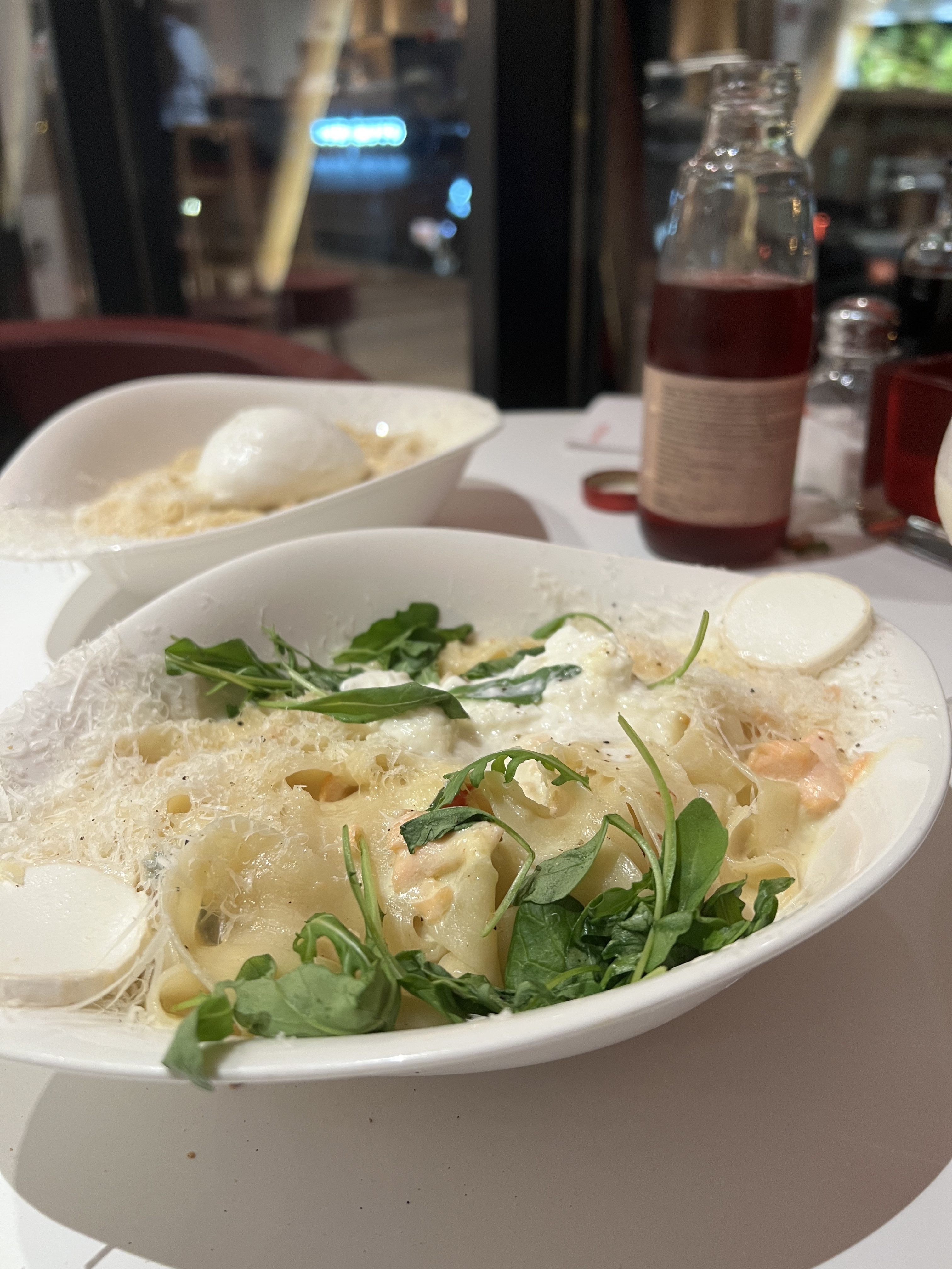 J’ai dîner récemment chez Vapiano. Le concept est assez particulier : nous sommes (presque) obligés de crée un compte avec numéro et email, c’est vraiment dommage je pense que ce n’est pas très honnête. Il faudrait tout de même proposer une vraie carte et mettre le QR code en option et non l’inverse. Mais je l’avoue c’est un très bon coup marketing que je ne peux tant reprocher ! Mis à part cela, le soir aucune salade n’était disponible et peu d’option végétariennes pour celles-ci. Mais les pâtes pesto étaient très bonnes et le risotto onctueux ! Il manquerait peut-être un peu de fromage sur les pâtes. L’entrée est également très bonne mais un peu amère. Un peu cher mais pas de manière excessive. Service agréable, rien à dire !