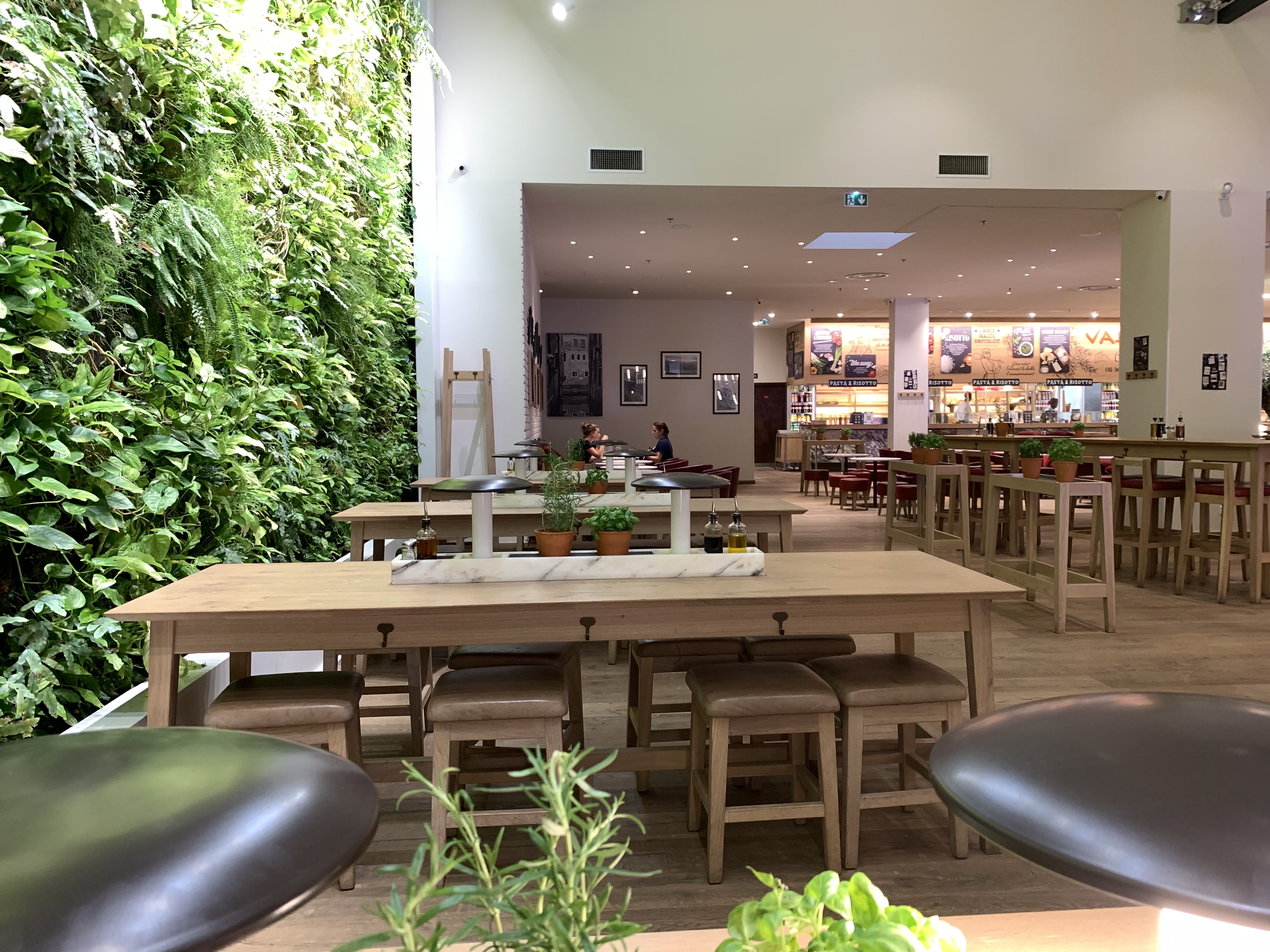 J'ai pas adhéré au concept... vraiment désolé. Faire la queue pour mon entrée, prendre un plateau comme à la cantine, récupérer mon entrée, 12€30 pour une toute petite plancha charcuterie burrata... je pensais qu'on pourrait la partager mais au vue de la taille de la plancha on en a vite pris une 2eme... aller m'installer, manger mon entrée puis me relever pour faire à nouveau la queue, aller commander le plat (pizza), me réinstaller, tant pis pour le dessert! Le bar... pauvre en bière! La pizza était bonne mais très vite froide. Bref j'ai pas vraiment apprécié à sa juste valeur ce restaurant dont la décoration est soignée et le mur végétal de toute beauté! Désolé mais c'était la seule et unique fois pour moi!