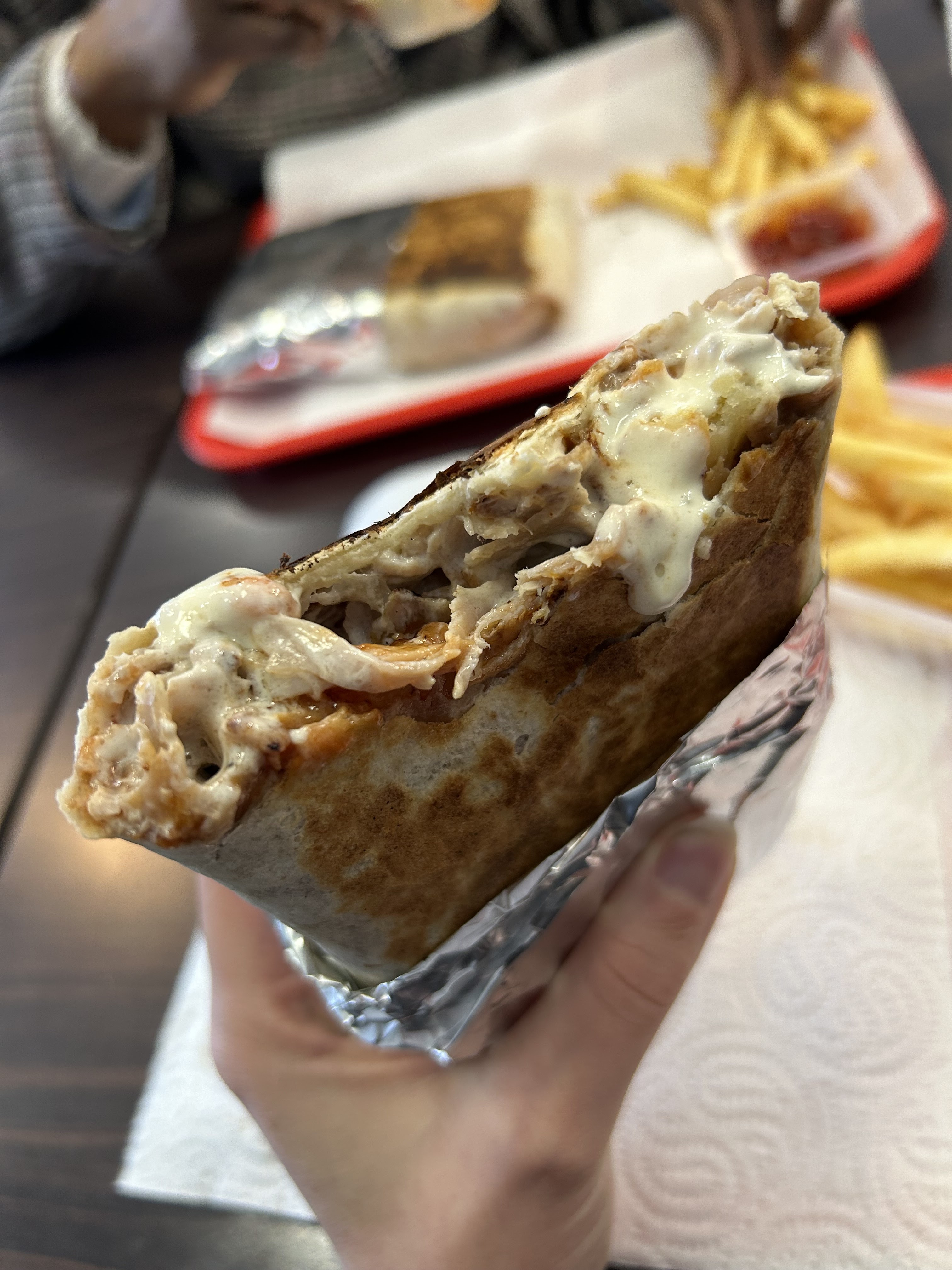 J’ai pris un tacos kebab, c’est convenable mais je ne dirais pas que c’est aussi bon que ça, ça passe plutôt bien mais ce n’est pas le meilleur tacos que j’ai pu connaître. Le service est rapide et le personnel dynamique. Si vous souhaitez manger rapidement sans vous cassez la tête, je vous le recommande mais au niveau du goût et des produits, pas vraiment. Il y avait bcp de frites et la viande de kebab plutôt inexistante. On remercie tout de même l’effort des jeunes restaurateurs