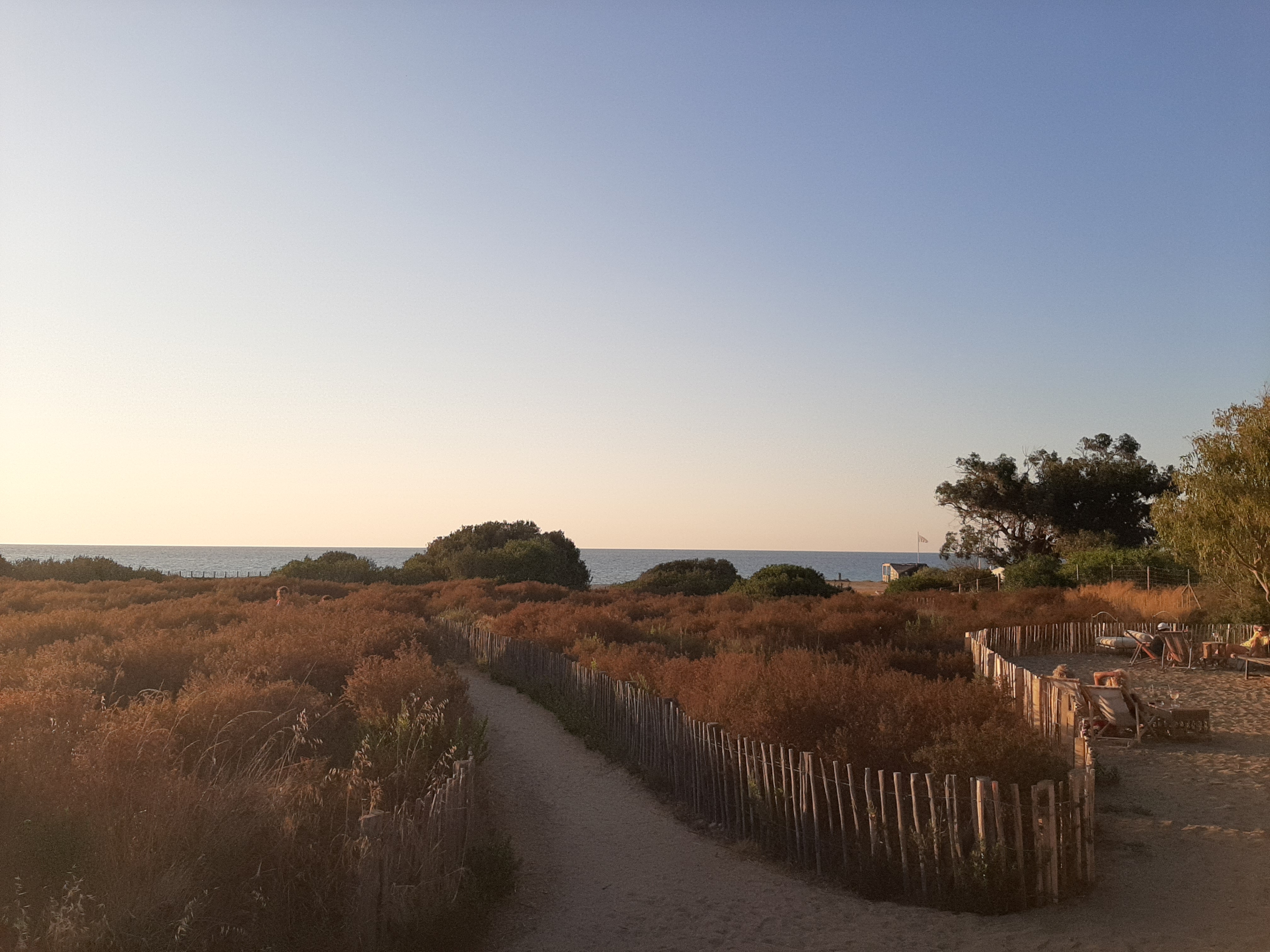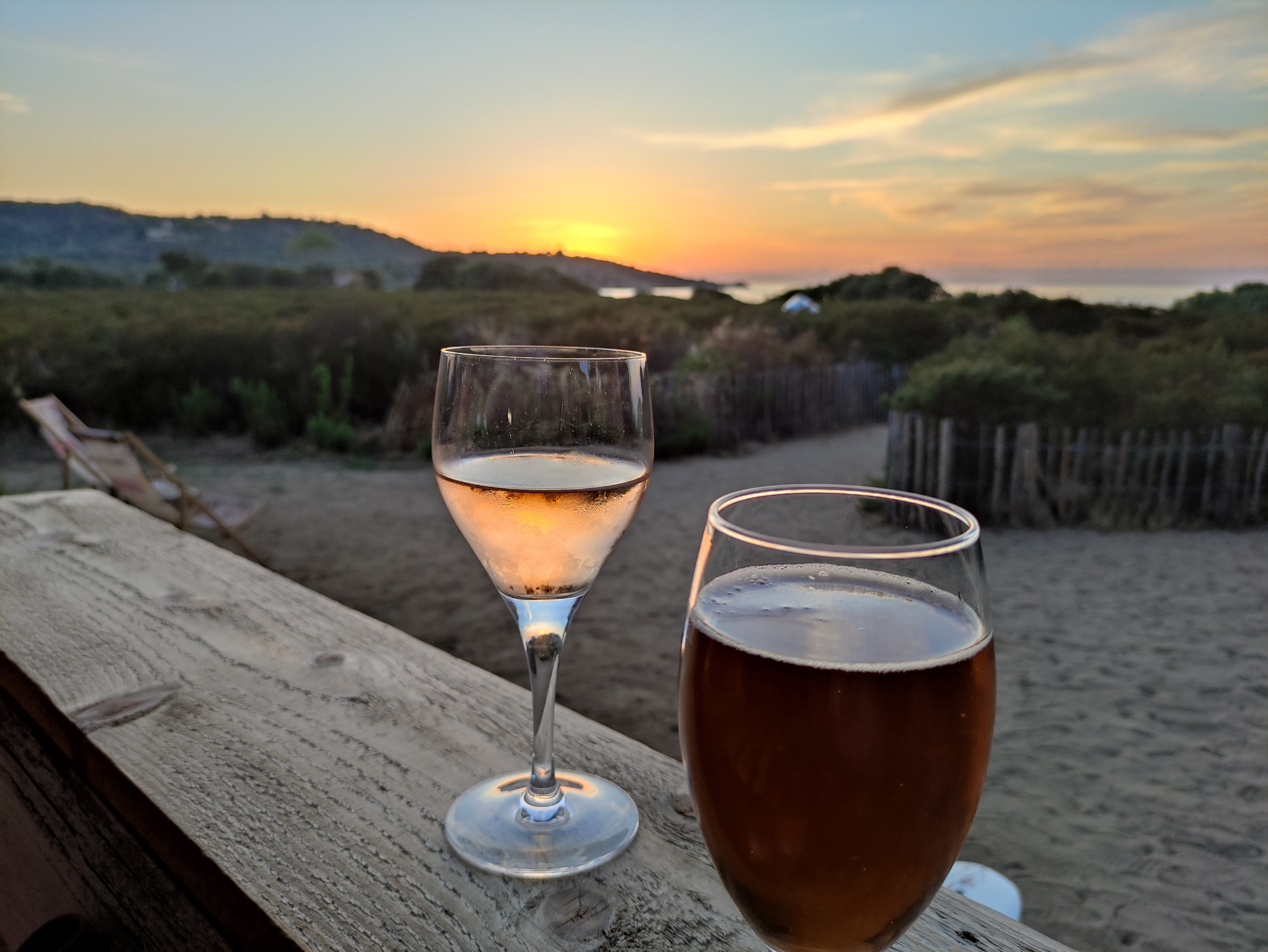 Nous n'avions pas réservé au préalable donc nous y sommes allés un peu à l'improviste mais j'avais tout de même regardé les avis sur les différents sites qui nous donnaient très envie d'y aller ! Pas de réservation donc nous avons eu une table dans le sable très mal placée car en pente. Nous l'avons alors bougé nous mêmes. Les serveurs n'étaient pas trop aimables et mettaient beaucoup trop de temps à nous servir ! Pourtant, nous étions à côté de la descente des escaliers... Nous avons commandé pour le dîner une planche de charcuterie à 18 euros à partager. Le serveur nous a dit d'une façon assez désagréable que cela ne nous suffira pas. Le ton ne m'a pas plu, il y a une façon de le dire. Nous avions déjà mangé avant le restaurant donc une petite planche allait nous convenir. Et même si nous voulons que manger ça, ce n'est pas au serveur de nous dire que ça n'ira pas ou alors il aurait pu simplement nous prévenir d'une façon plus agréable. De plus, pour 4 très fines tranches de 2 sortes de jambon, 18 euros c'est un peu exagéré... Sinon, le thé glacé fait maison est excellent et la vue magnifique.