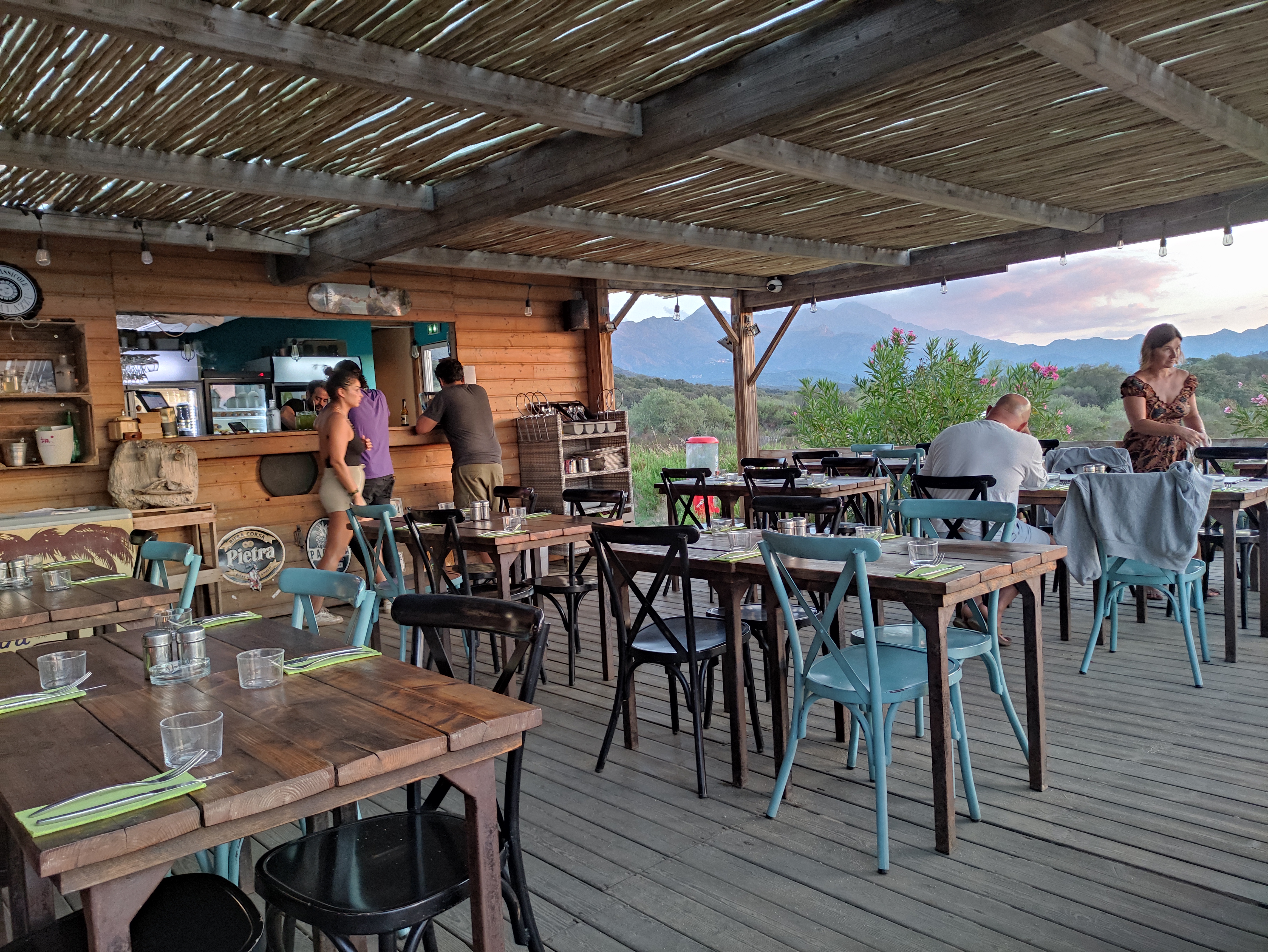 Le cadre est juste splendide entre montagne, mer et maquis. Le service est souriant, le staff très sympa. La cuisine est très bonne, les plats proposés sont originaux. Le salé est aussi bon que le sucré. Bref un incontournable si vous passez dans la baie de Lozari.