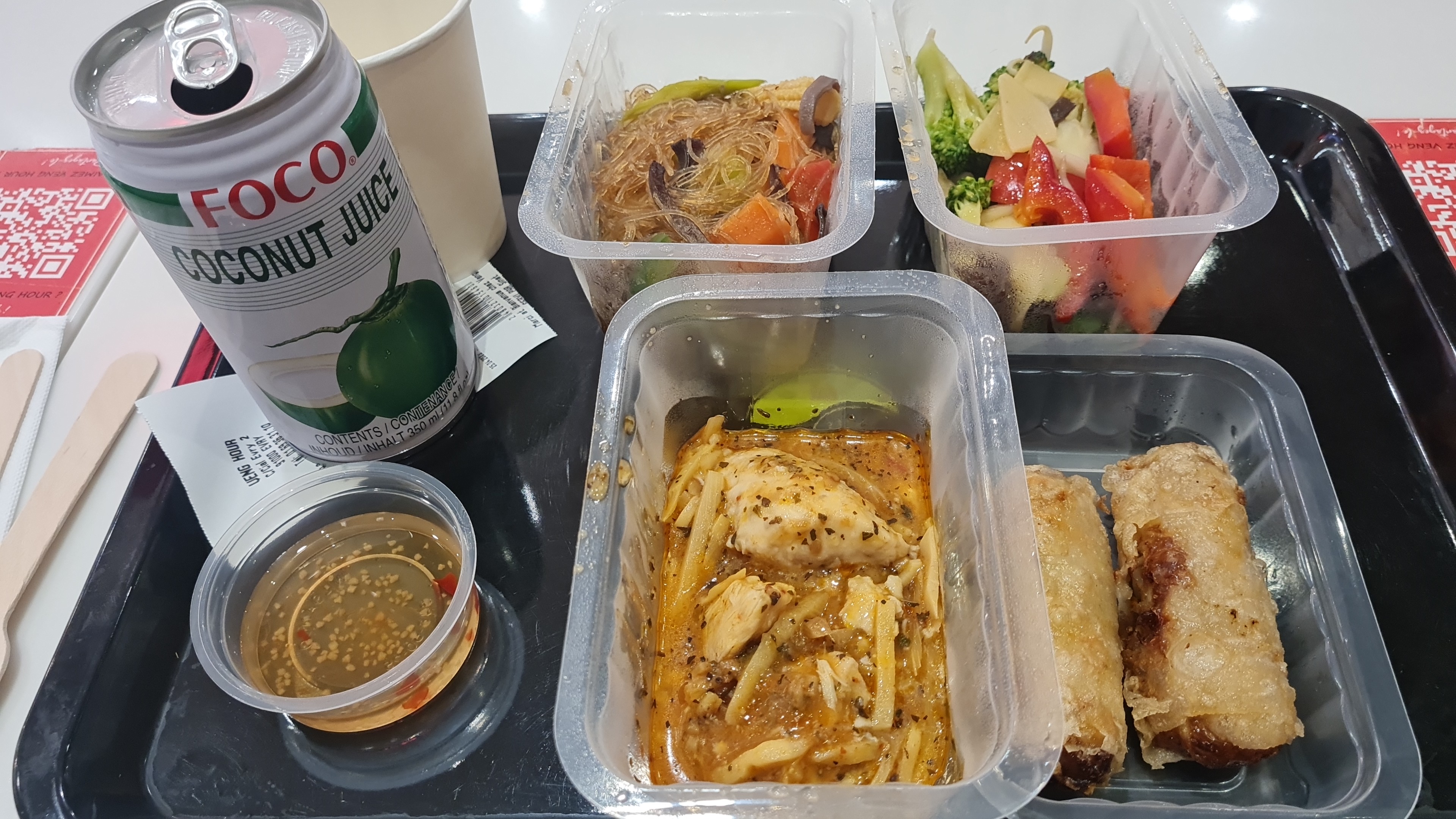 Déjeuner sur place au Veng Hour à Evry 2 le vendredi 27 mai 2022. De prime abord, le prix est élevé. Mais comme nous aimons beaucoup essayé et goûté, nous avons commandé quand même quelques mets en petite barquette : riz cantonnais, nouille, brochettes, nems ... et 2 boissons. A la sortie, la facture est assez salée plus de 32 euros pour 3 personnes. Côté goût, rien de très spécial. Mais comme je le dis souvent, chacun a son goût.