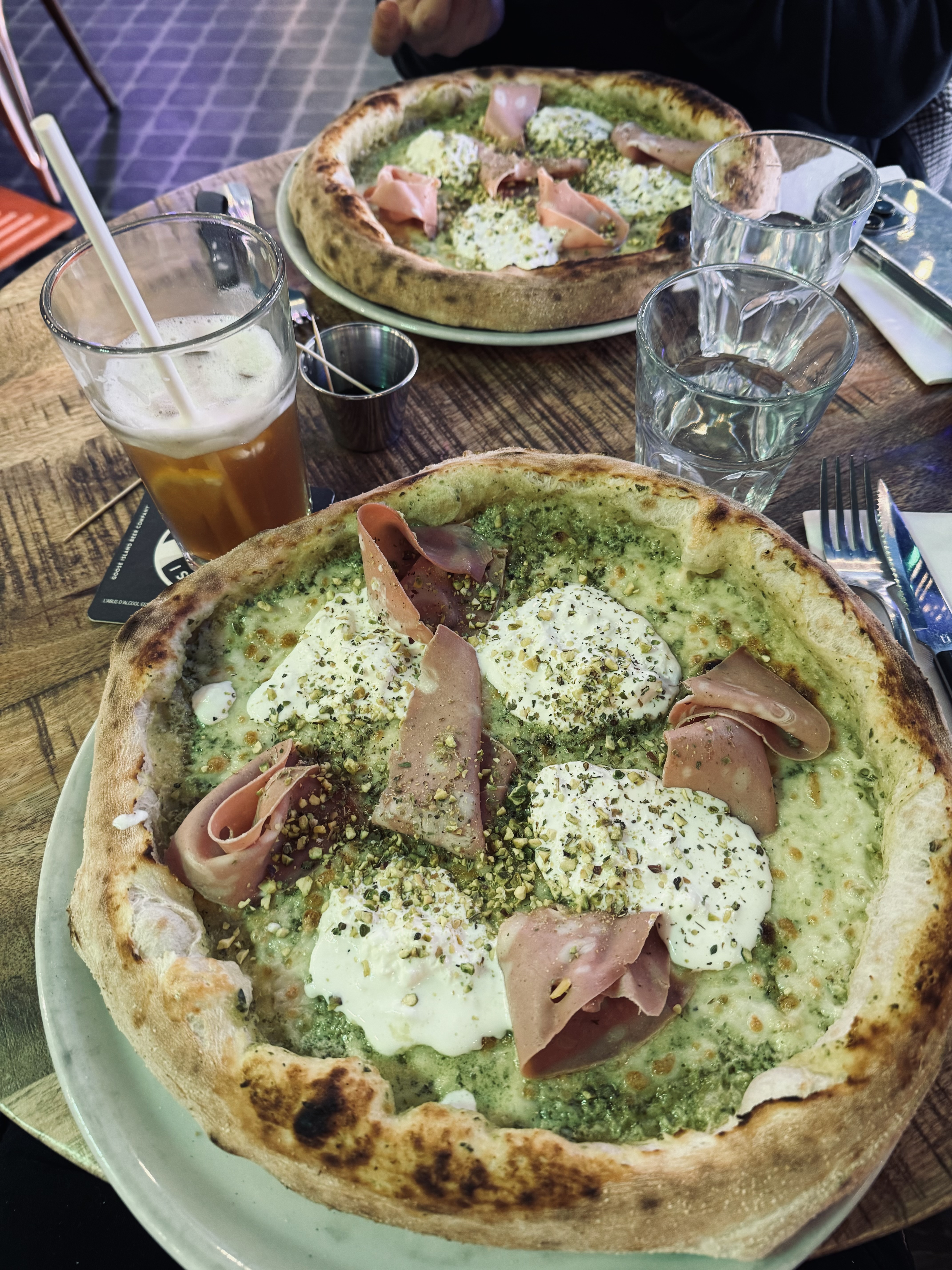 Nous avons pris la pizza 5 fromages et la salade burata. La pate à pizza est très bonne. La salade etait très bonne aussi. Jolie présentation également. Le thé glaçé super bon ! Le service niquel. Le décor est sympa. Par contre j'ai eu l'impression que les tables etaient tres proches les unes des autres donc on participe à la conversation de la table d'à côté. Et aussi la fumée de cigarette (ok on est en terrasse donc ce n'est pas interdit mais la place de la louviere est assez grande pour fumer sa clope plus loin... ) mais on est d'accord que ce n'est pas la faute du restaurant. Un bon moment 😊