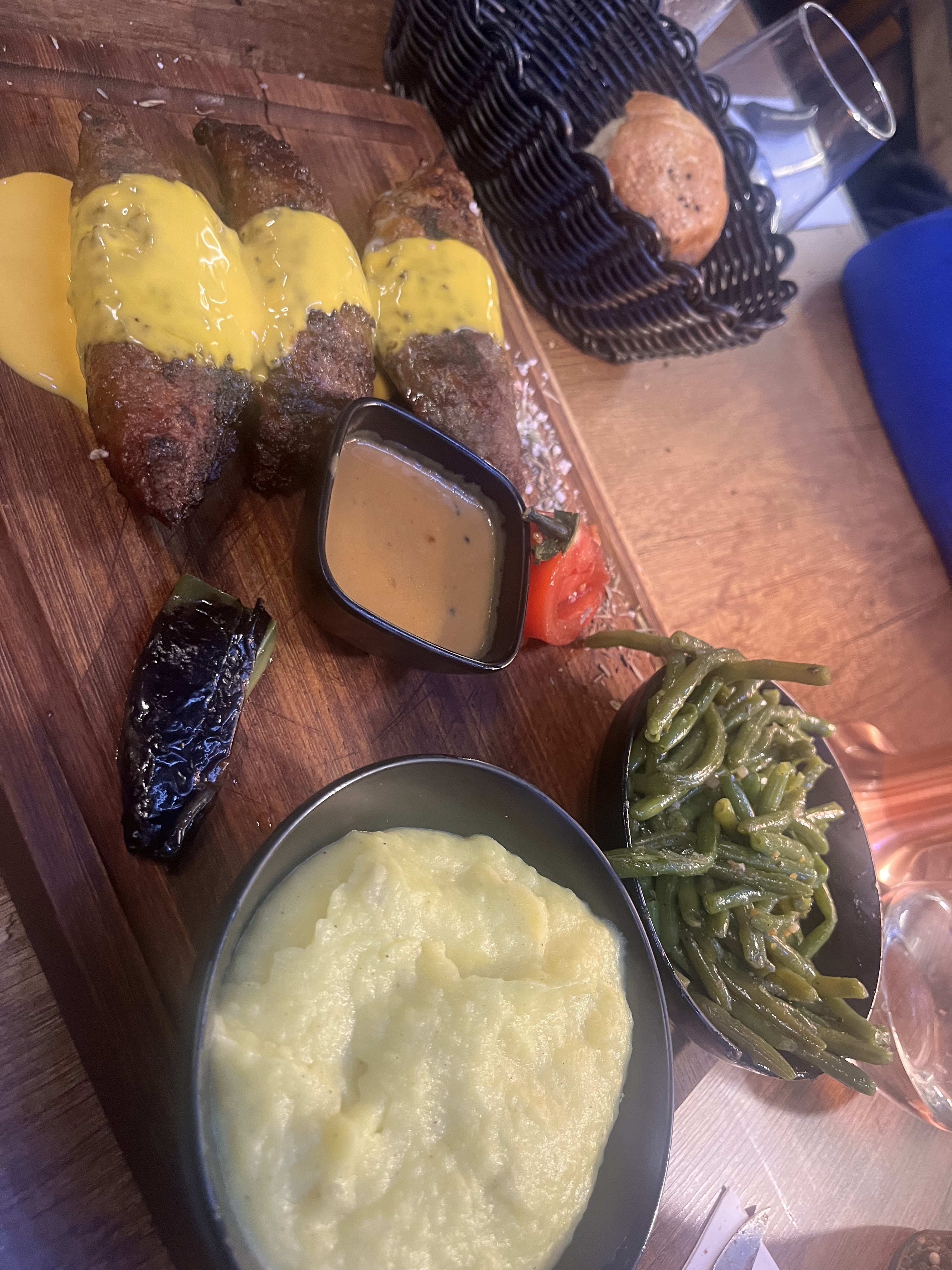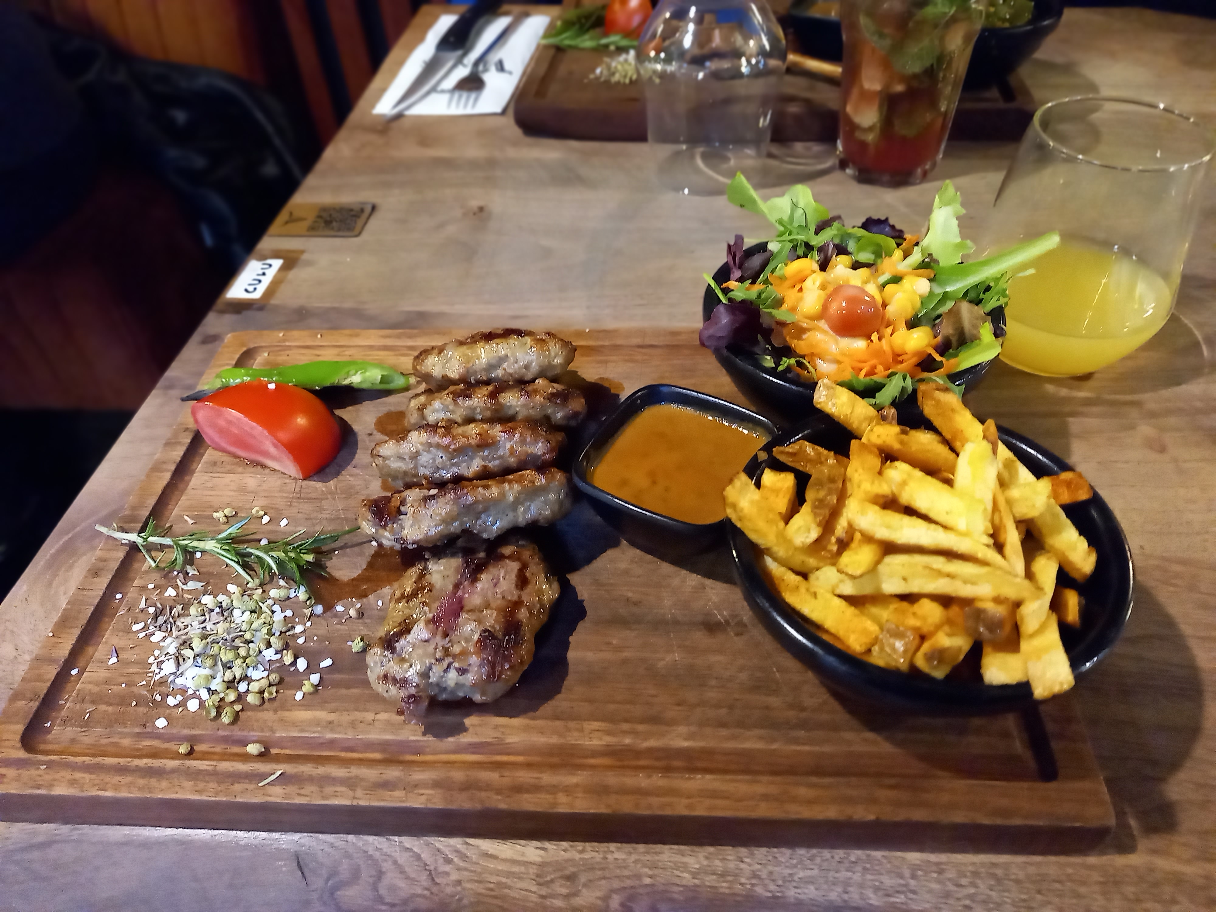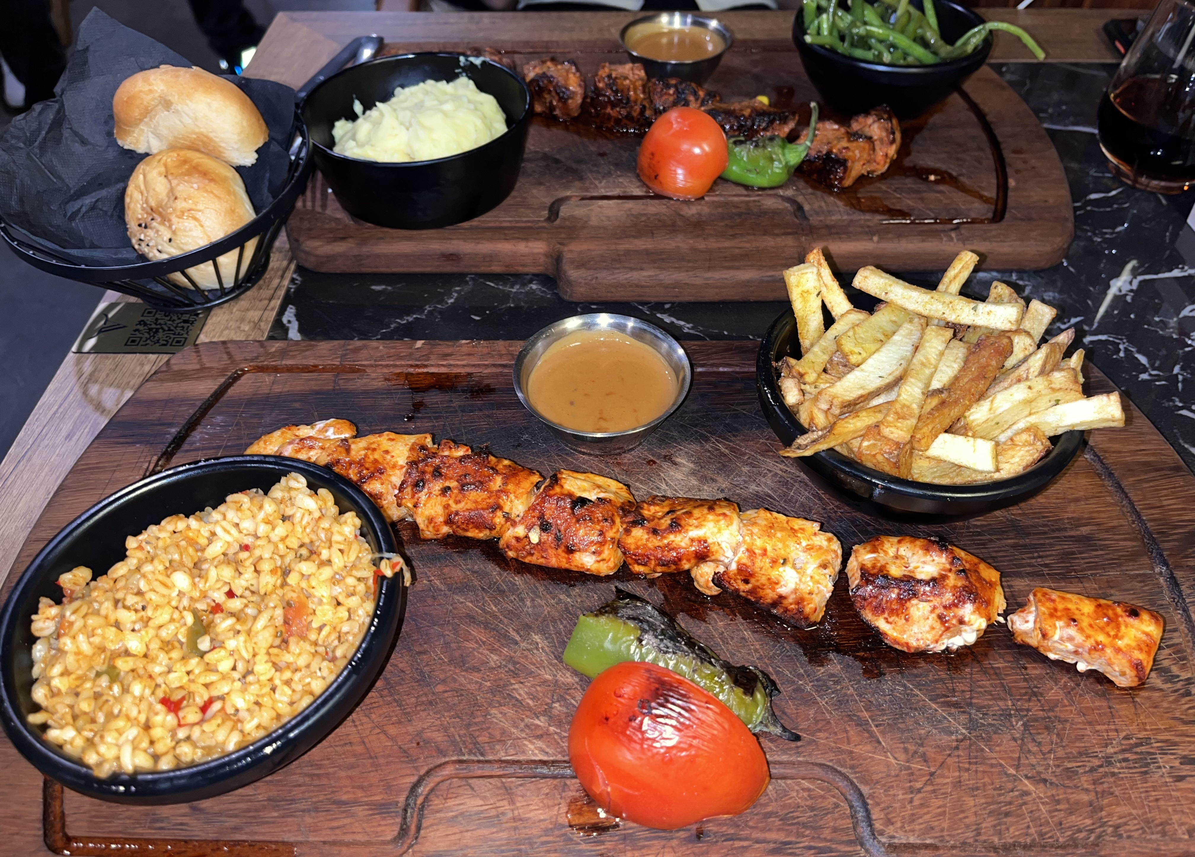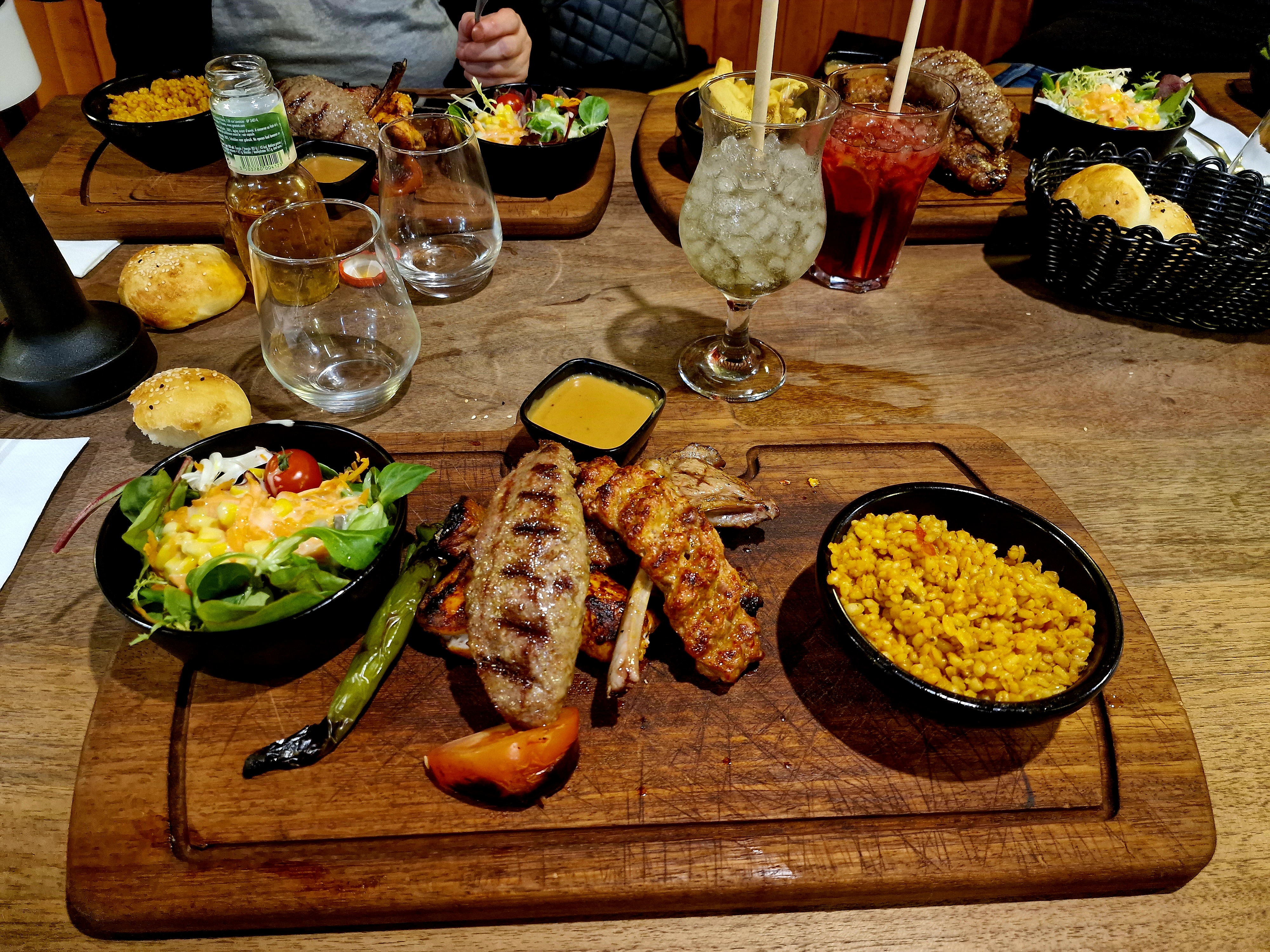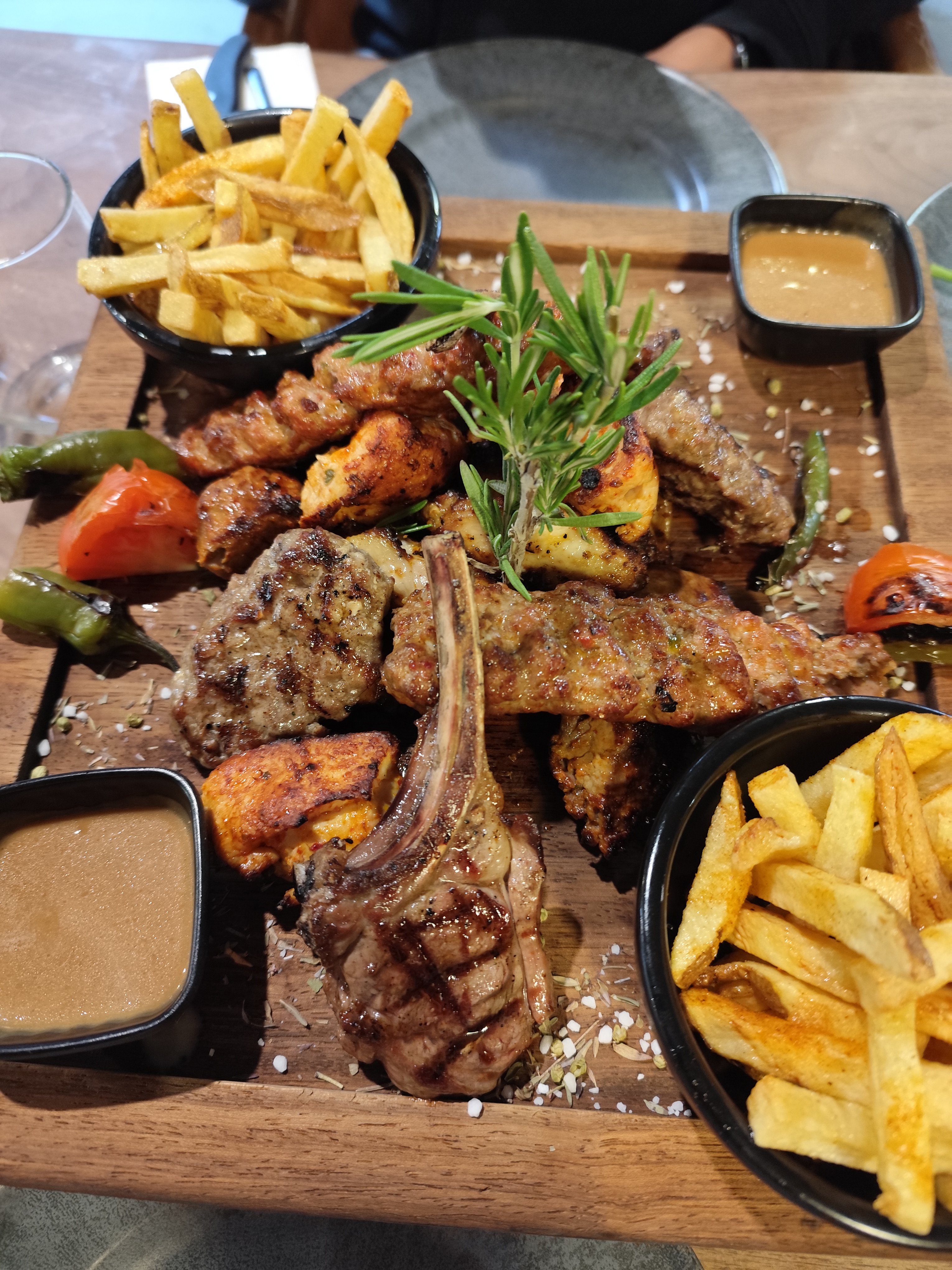 Restaurant très beau et chaleureux, les serveurs sont très gentils. Cependant la viande n’avait pas de goût et manquait d’assaisonnement. Nous avions pourtant pris deux assiettes gourmet avec différentes viandes du coup (c’est un mixte) mais malgré cela ce n’était pas top. Des frittes « maisons » froides et sèches , et le blé n’était pas terrible et manquait de goût . Dommage car le restaurant est très beau et très spacieux et les serveurs sont au top .