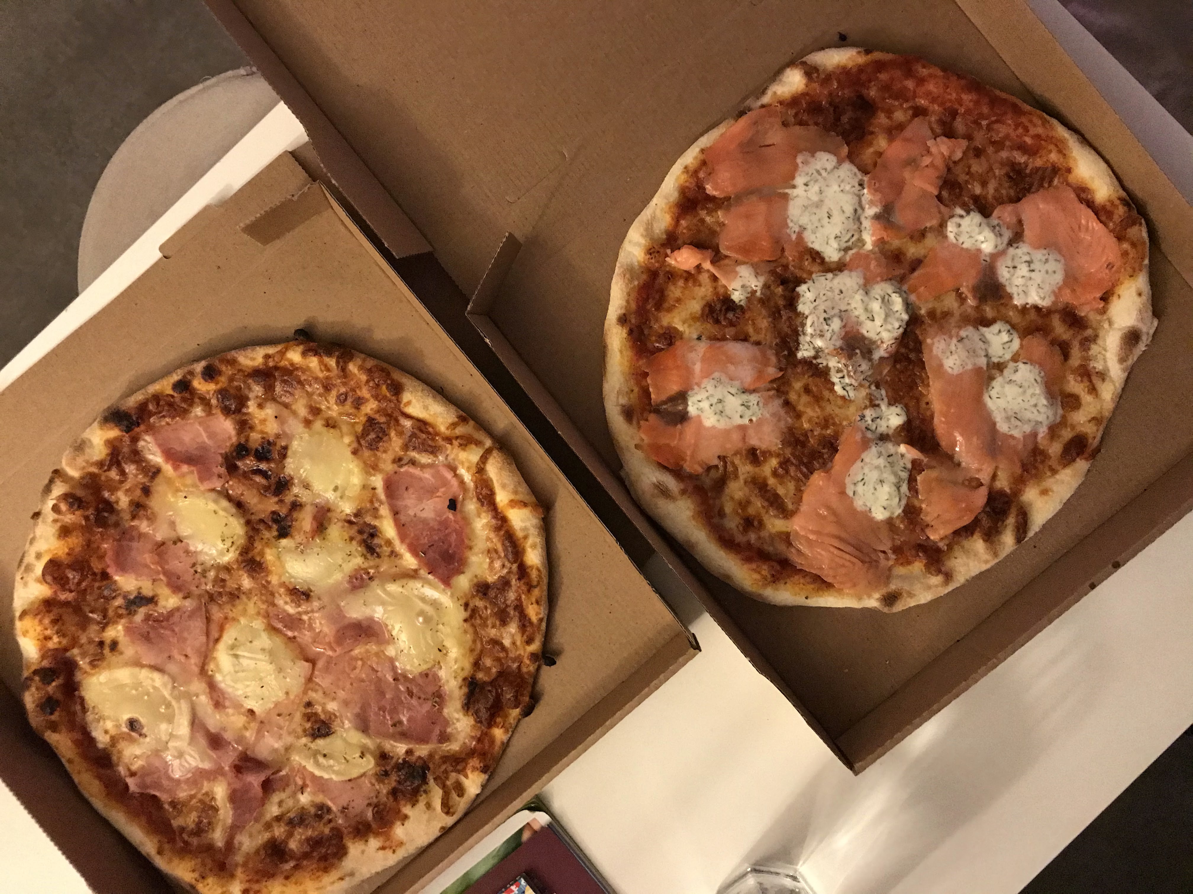 Nous avons pris à emporter (confinement oblige) un samedi soir. On nous a dit qu’en 10min ça serait prêt et ils ont tenu parole! Je pensais pas que c’était aussi rapide. Et nous n’étions pas les seuls clients. J’ai pris une pizza au saumon fumé. C’était très salé vers la fin du coup mais j’ai bien mangé. Niveau prix, on commence à 13 euros la pizza. Un peu élevé par rapport à la concurrence mais je pense que c’est justifié, quand je compare avec les autres, c’est vrai que les pizzas de Version Latine sont plus goûteuses. À tester !