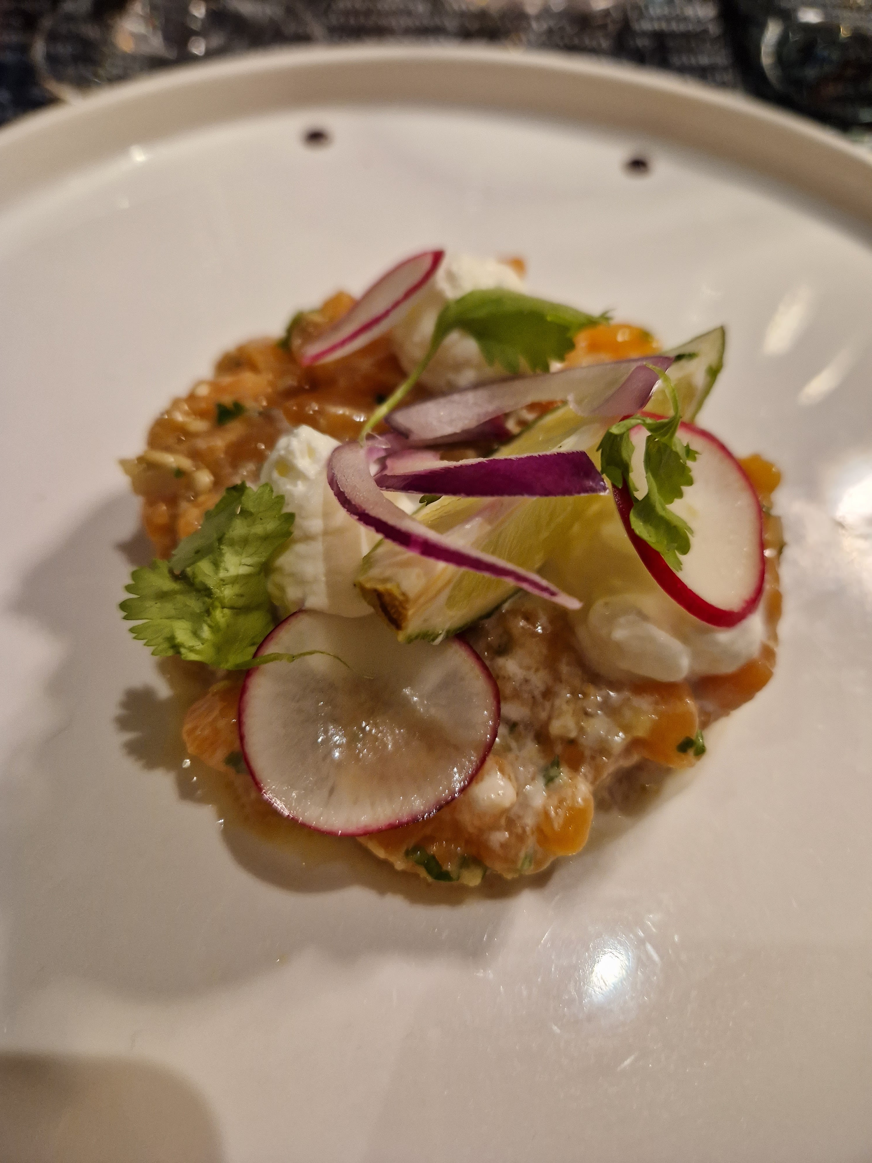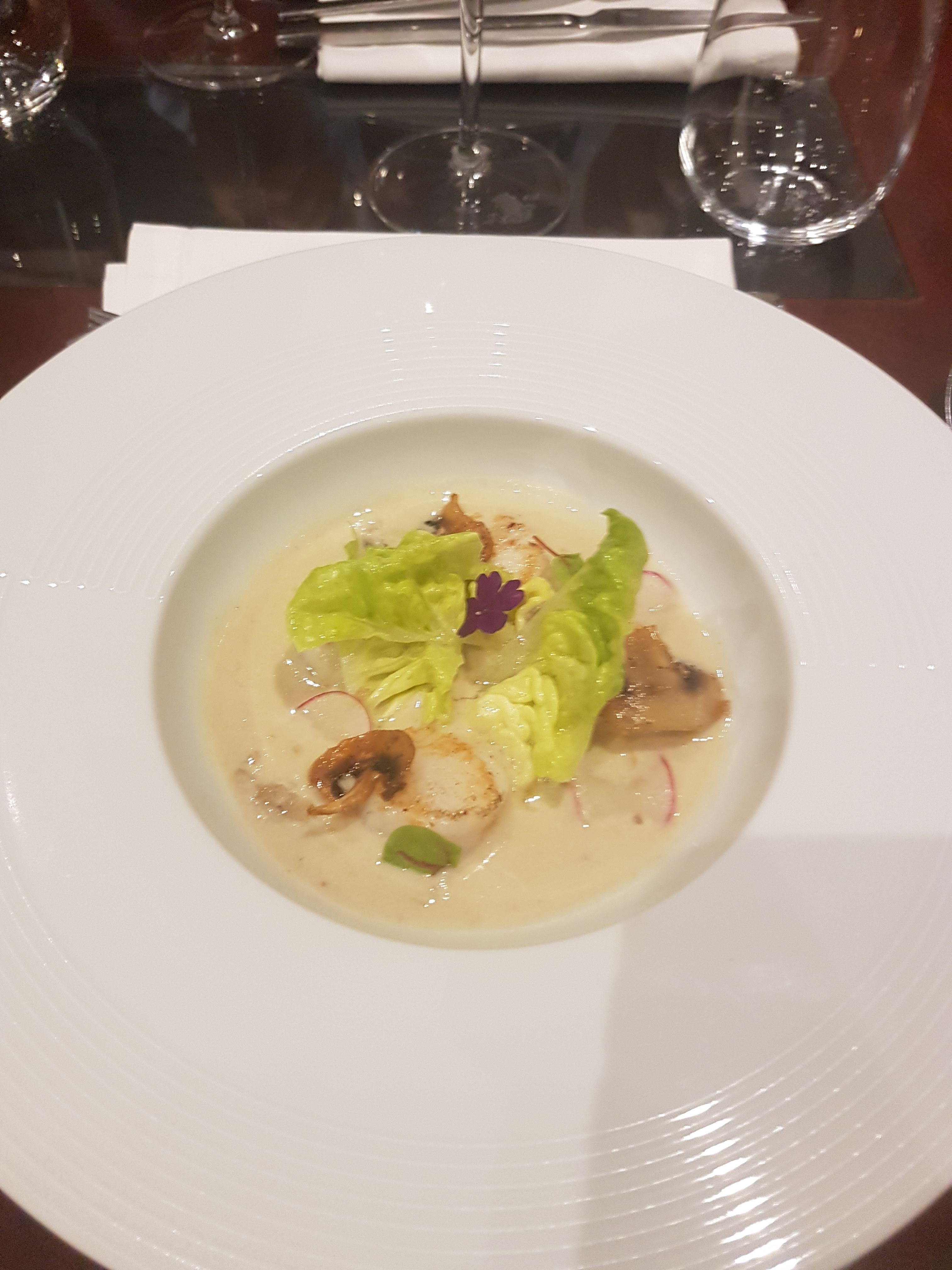 Excellente cuisine gastronomique avec une touche française. Idéal pour un dîner intime. La sélection de champagne était incroyable. J'ai commandé le filet mignon qui était très bon mais quand même un peu moelleux. L'apéritif au crabe était incroyable, tout comme le dessert au sorbet aux fruits.