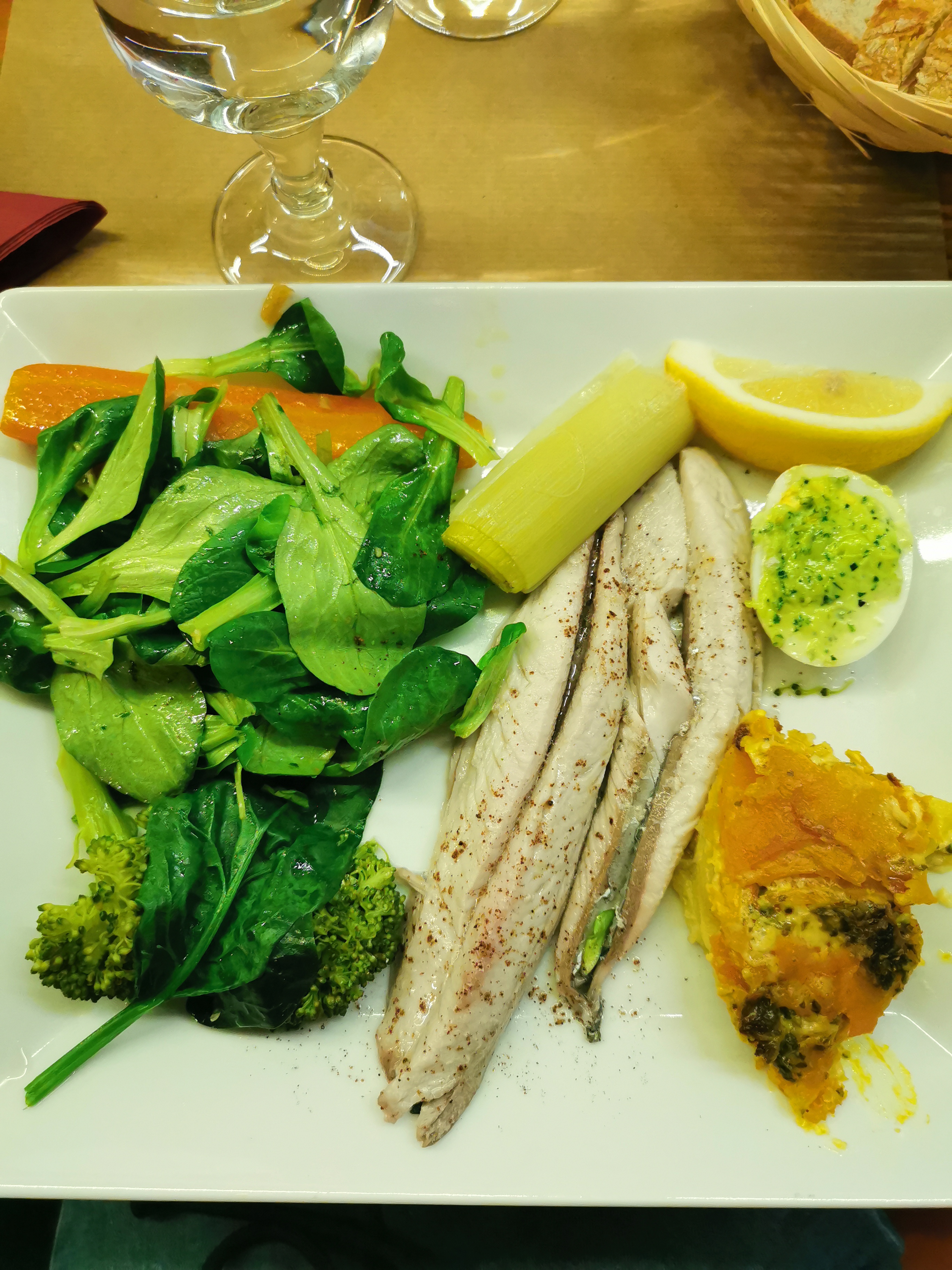 Bon accueil du patron et bon service. Nous avons mangé en entrée une petite soupe de lentilles, très parfumée. En plat, un assortiment de crudités,de légumes et un gratin de pommes de terre. Et le choix est proposé pour du poulet ou filet de rascasse... Pour le dessert j'ai choisi un Tiramisu à la châtaigne, Divin. Une adresse à retenir