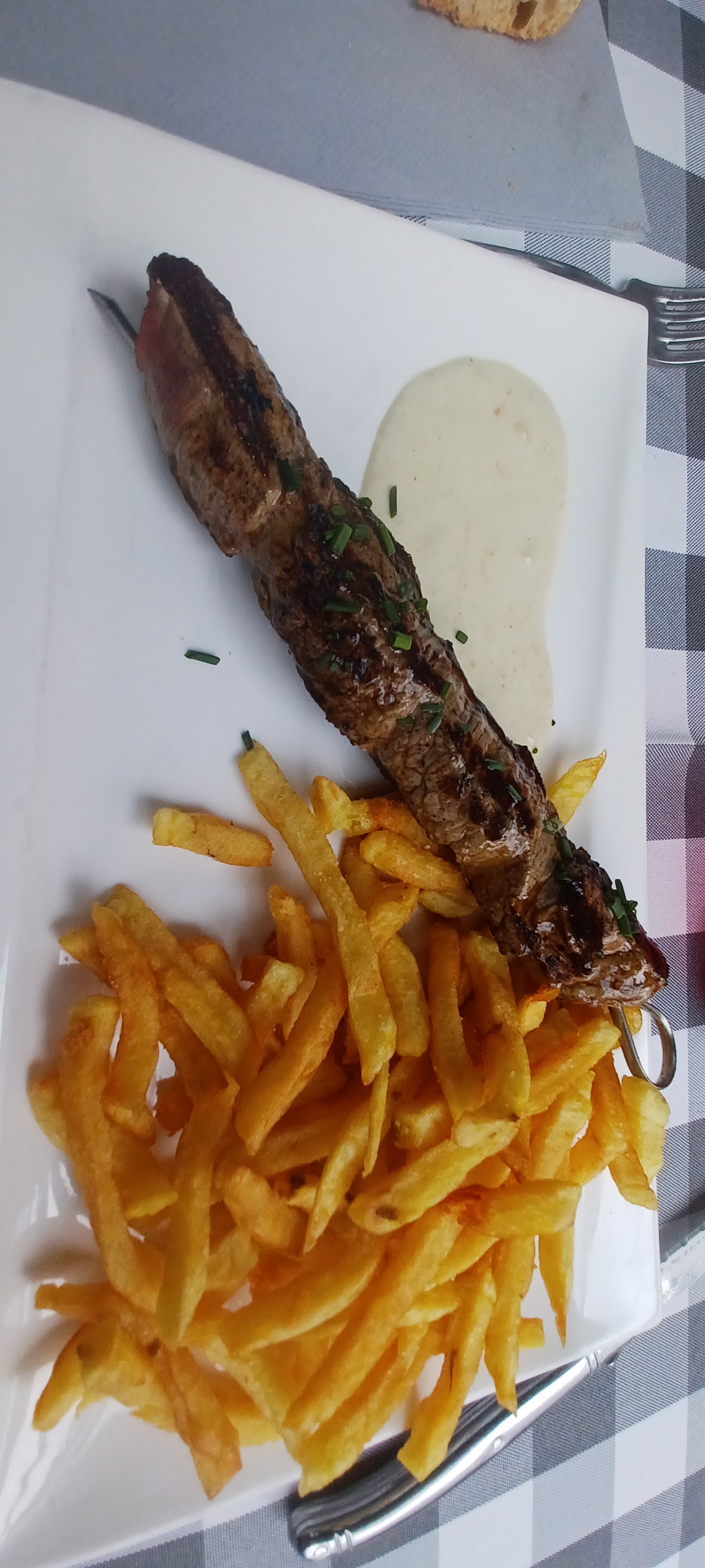 Resto qui ne paye pas de mine de l'extérieur mais qui est plutôt sympathique à l'intérieur avec une déco simple mais intimiste et ce même si les tables sont quand même assez rapprochées. Cela étant dit passons au repas en lui-même puisque c'est un restaurant avant tout : eh bien nous fûmes agréablement surpris là encore ! Entrée salade verte campagne assez bonne mais je regrette le manque de magret de canard là où d'autres restaurants en propose dans les mêmes salades avec une appellation différente... le camembert rôti par contre a fait une heureuse ! Au niveau du plat c'est assez simple mais goûteux avec les frites maison que je ne pensais pas maison d'ailleurs ! Seul bémol mon T-bone de bœuf était trop léger en viande... quand on prend une pièce de bœuf généralement on s'attend à avoir un minimum de 150g de viande, et je dis bien de viande donc sans les os ou le gras. Là je pense qu'on devait être à même pas 80g de viande... je suis resté sur ma faim c'est bien dommage ! Enfin le dessert les profiteroles sont bons et généreux là par contre et le nougat glacé très bon aussi. Le service est rapide et agréable aucun problème à ce niveau là simplement l'accueil était un peu froid et pareil pour l'encaissement... dommage car c'est ce qui donne le premier sentiment et surtout le dernier donc vous perdez des points sûrement a ce niveau-là car la cuisine et le cadre sont plutôt bons.