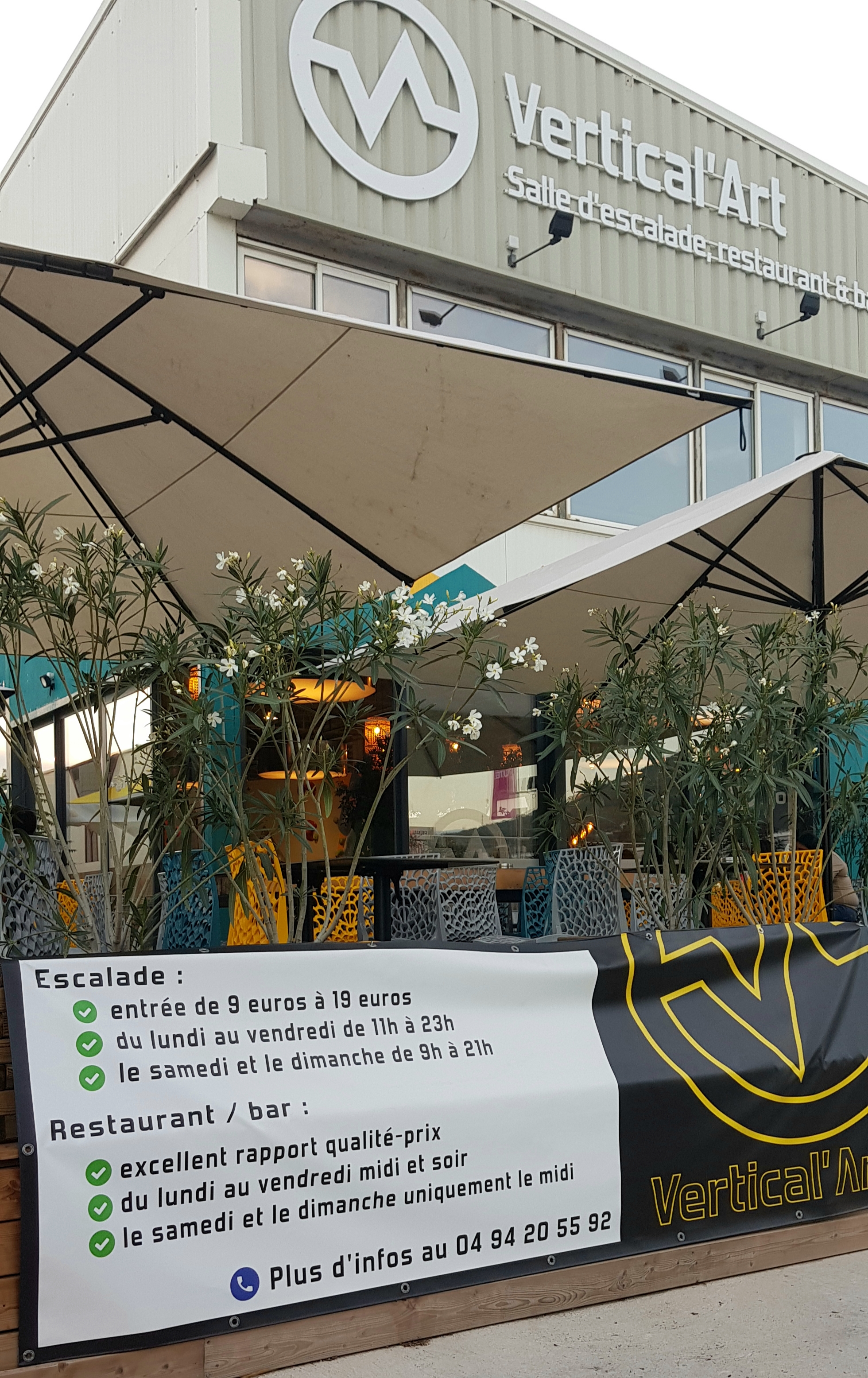 Voici toutes les informations sur le Restaurant Vertical'Art Toulon qui ce trouve au Av. Lavoisier, 83160 La Valette-du-Var (83). Sur cette fiche vous trouverez les photos, l'adresse, les horaires d'ouverture, le numero de téléphone et les avis clients.Vous pouvez églement rédiger un avis si vous le souhaitez en bas de page.