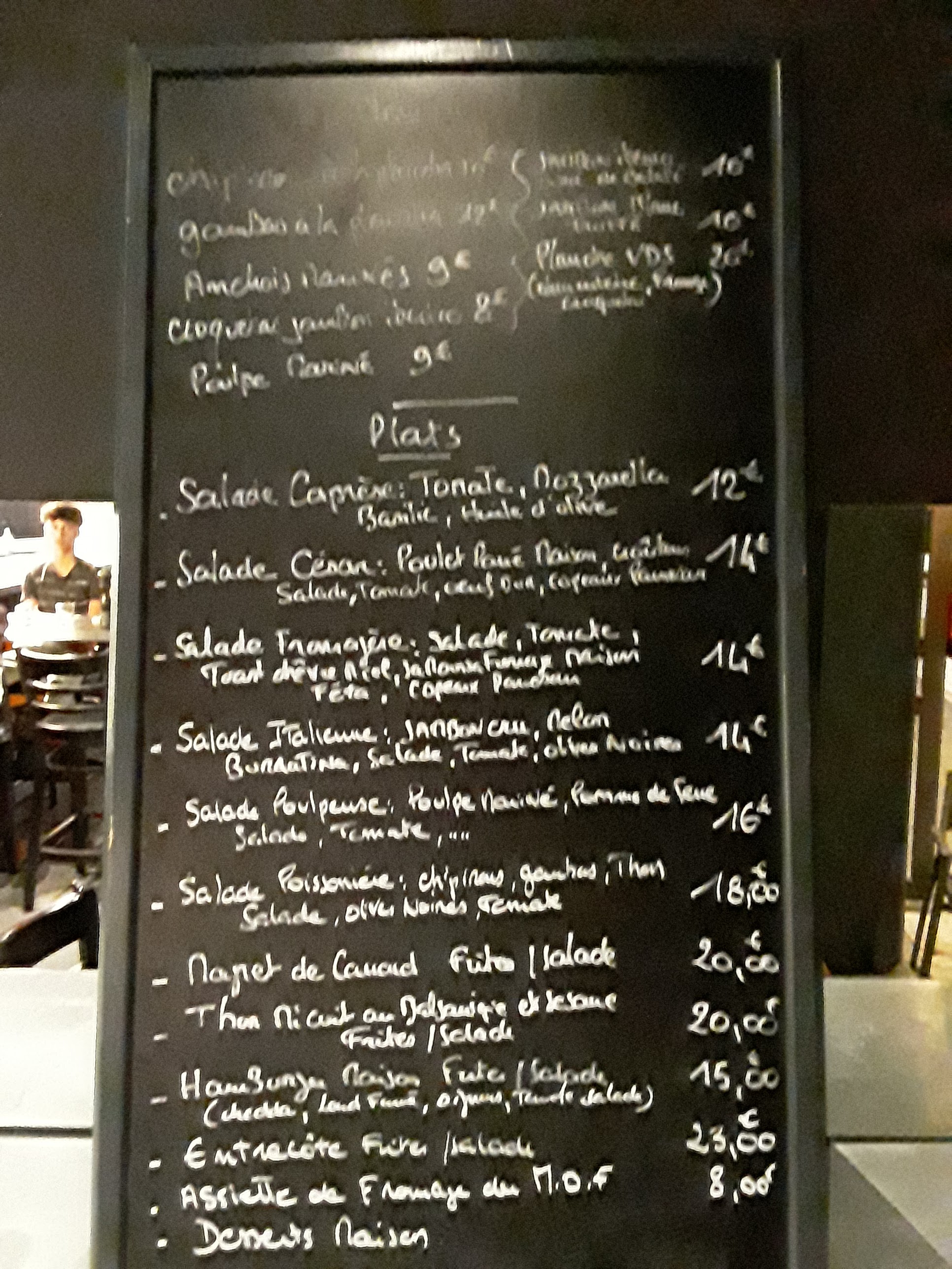 en ce samedi soir, une excellente adresse : thon mi cuit excellent, tapas maison parfaites. les chipirons et les poulpes sont frais, bien assaisonnés. Et pour les desserts, rien que du fait maison par la patronne, gourmande et généreuse: une verrine citron meringue et une tarte chocolat cacahuète caramel au beurre salé façon snikers excellentes!