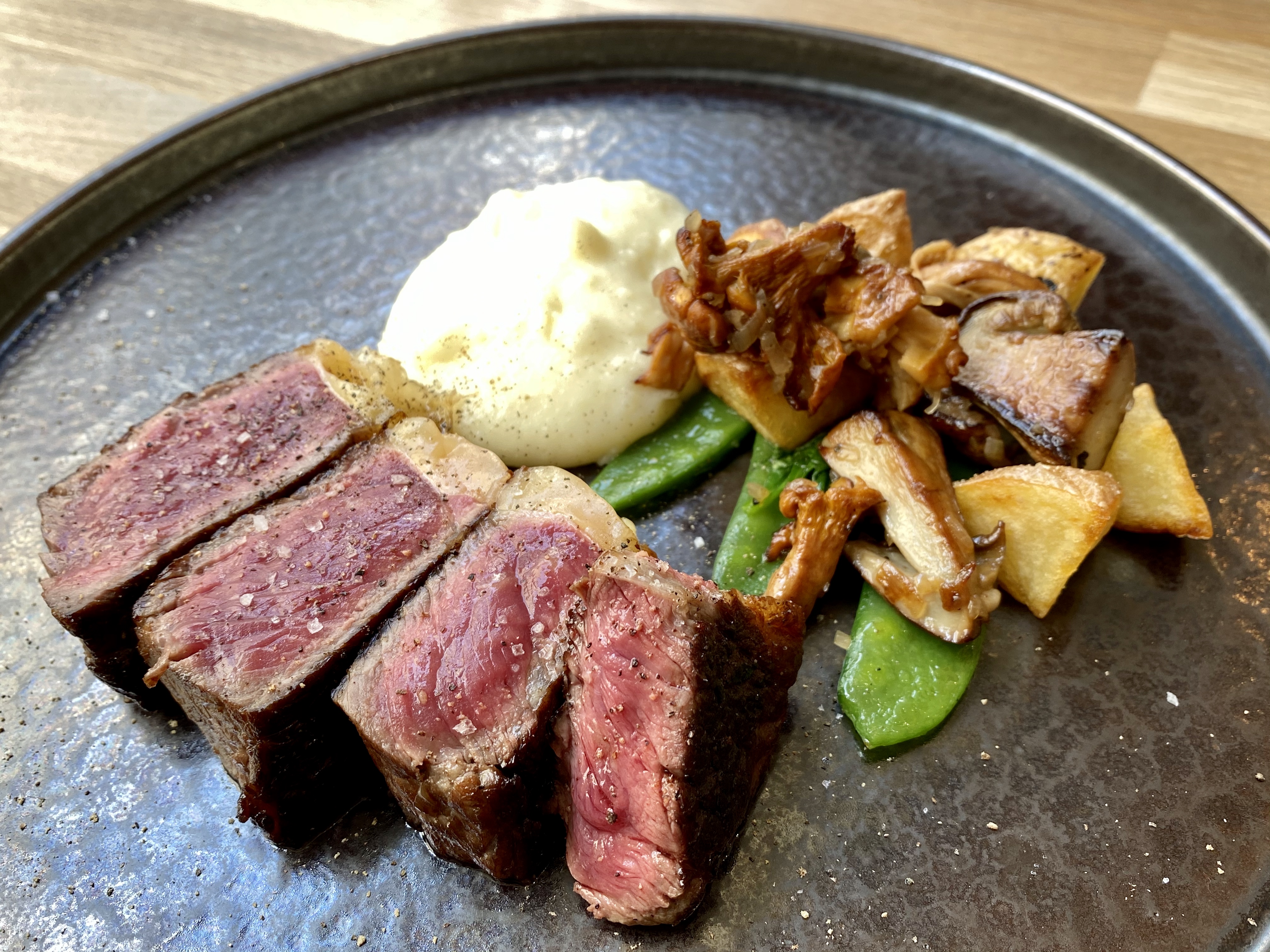Viande maturée savoureuse : cuisson réalisée avec grand savoir-faire tant la texture est bien saisie à l'extérieur et délicatement tendre au cœur.