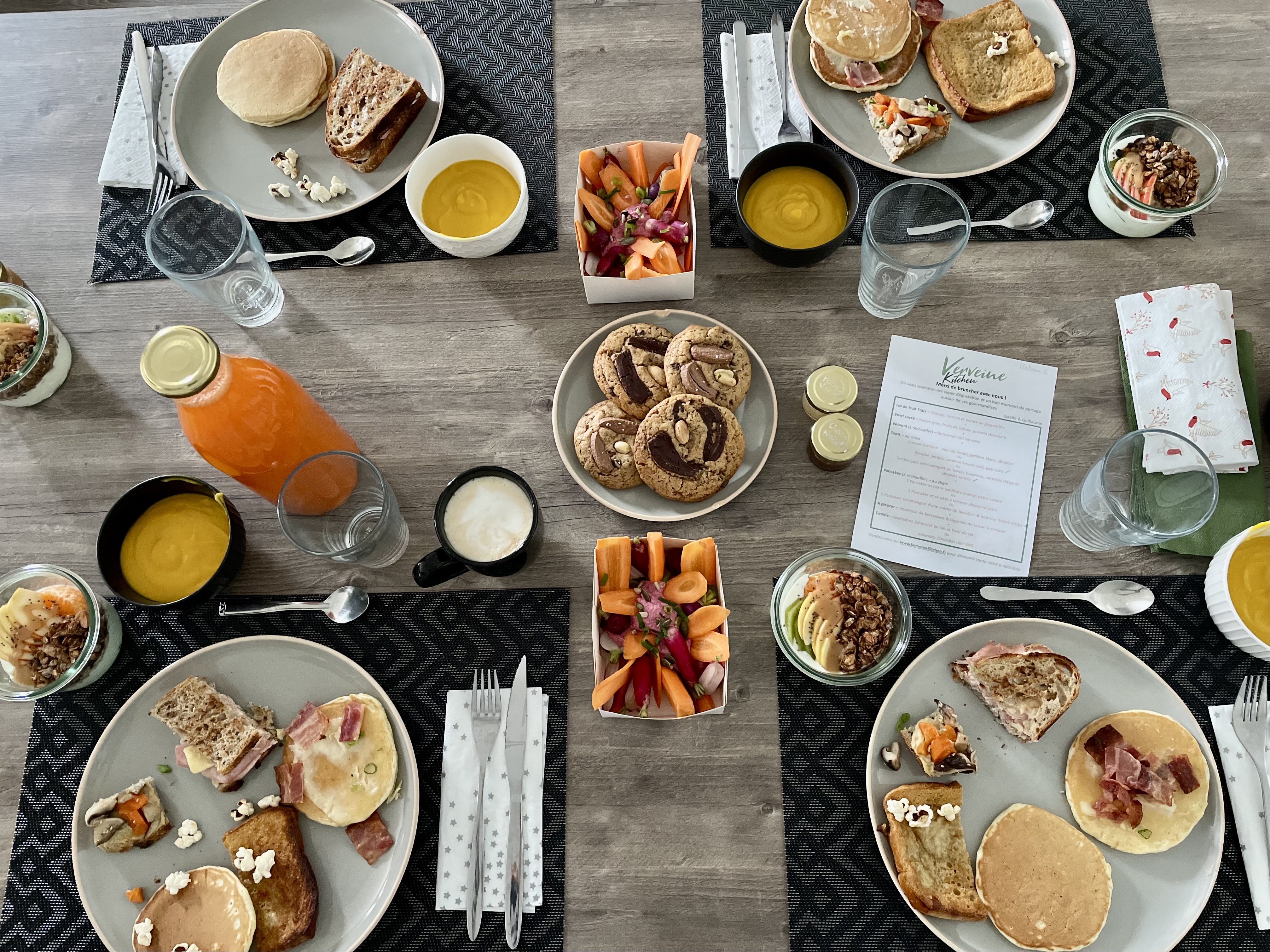 Brunch tout fait maison, complet et équilibré, tout est délicieux! Coup de cœur pour les cookies fondants à souhait!! Tout est réalisé avec attention, la présentation est soignée. Je recommande!