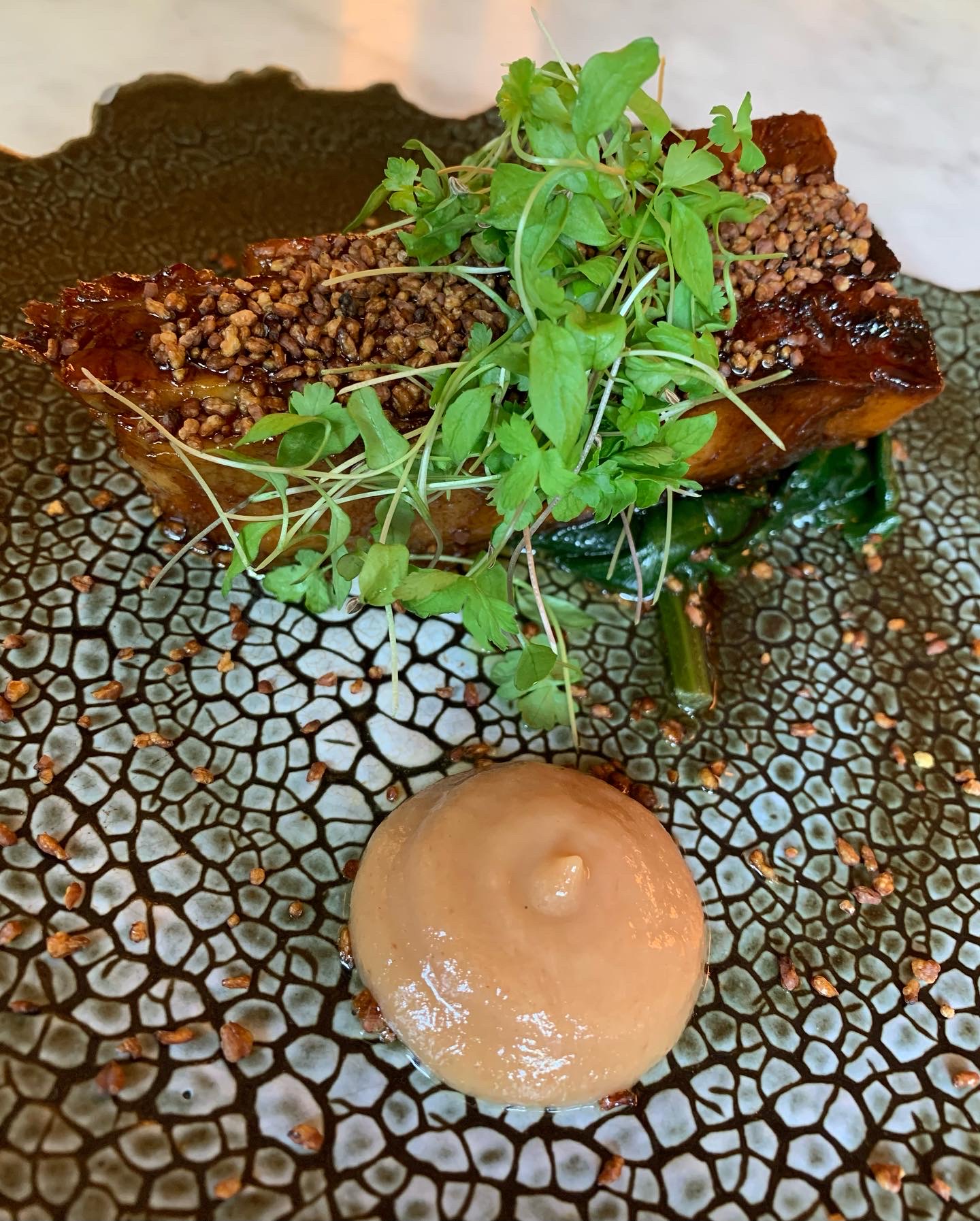 Très bonne découverte les plats sont terriblement bon. Une jeune femme nous a gentiment donné les détails de cette dernière,Alanna Le restaurant est beau et la décoration est très recherchée.