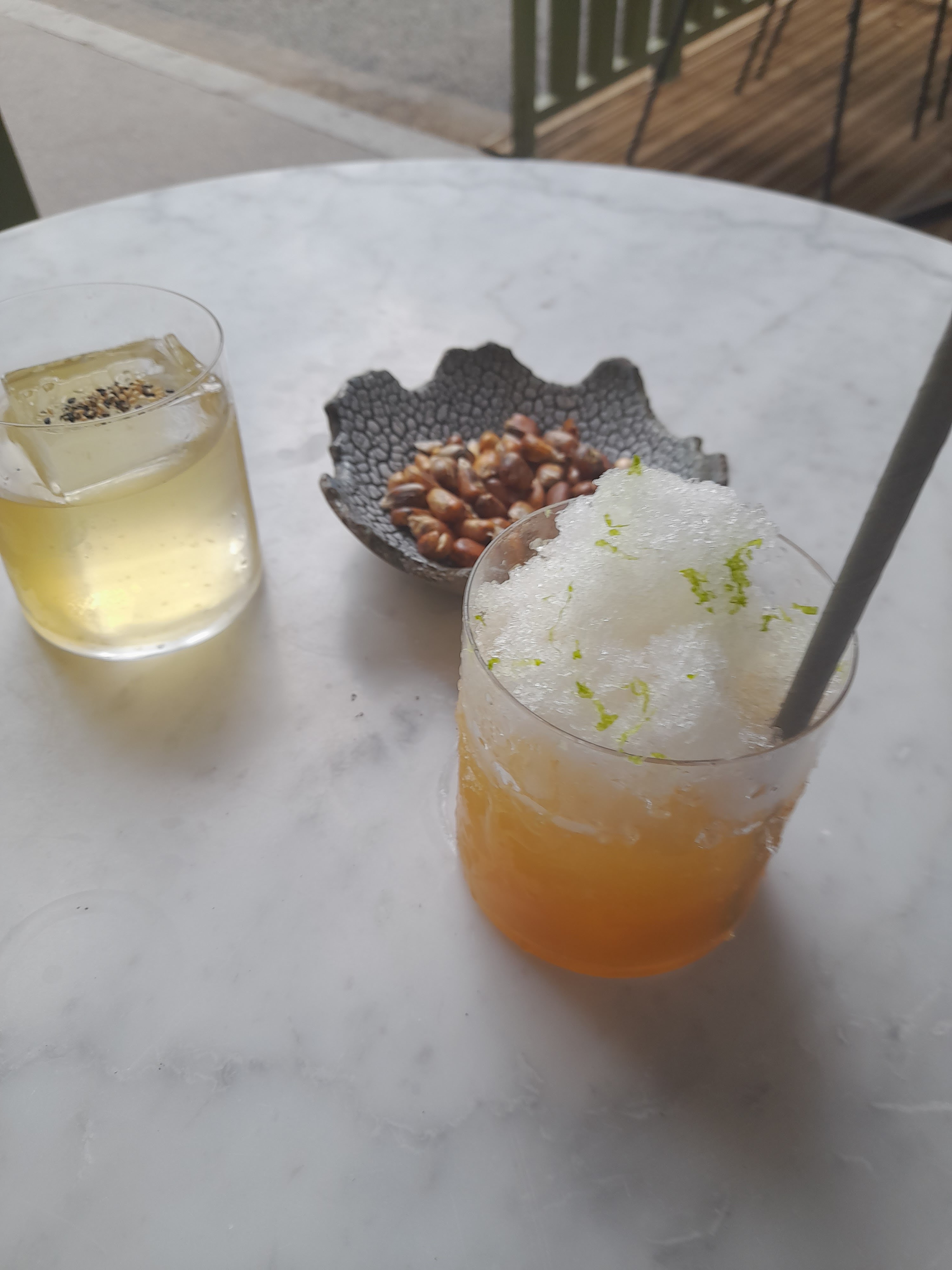 Le lieu est très sympa et très calme, la déco est magnifique, et il s’y joue une bonne playlist de musique. Les cocktails et les plats sont chers, mais tres bons. Dommage que le service laisse vraiment à désirer. Notre serveur avait l’air déçu que nous soyons venu juste pour prendre l’apéro et non pas pour dîner. Il était également désagréable quand nous devions régler l’addition. Nous avons d’ailleurs attendus 10 minutes le temps que le serveur vienne nous encaisser, car nous ne pouvons pas régler au bar mais devons rester assis pour payer. Travaillant moi même dans le luxe, je trouve qu’il est inadmissible qu’on traite un client selon son porte monnaie ou ses envies…