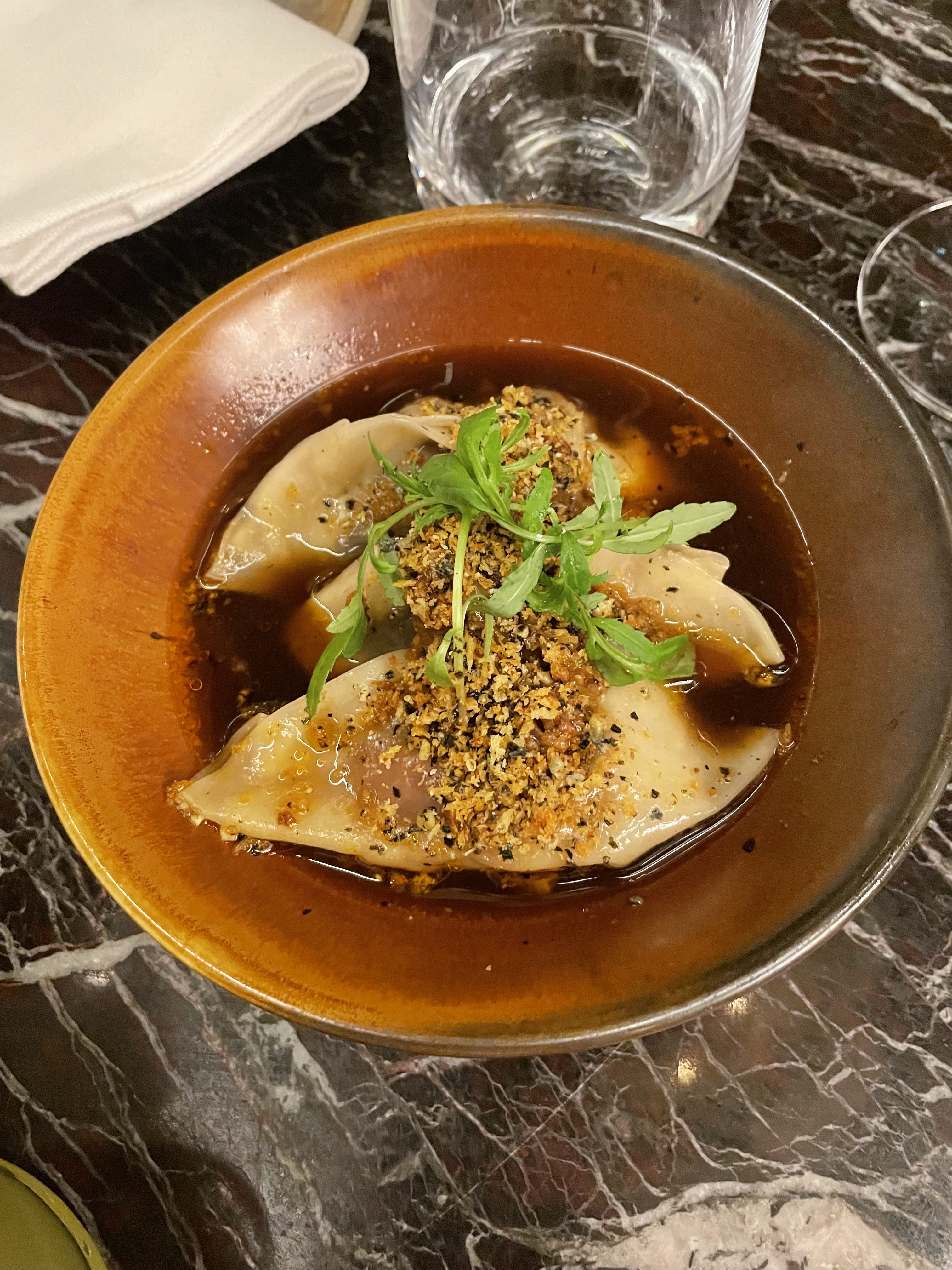 Le restaurant le plus lent que j'ai jamais vu, 40minutes pour servir des entrées, alors qu'il y a à peine 5 tables (les autres étant vides). Les raviolis étaient en plus trop grillés. Le prix est excessif par rapport à la qualité des mets proposés. Sinon, le service est correct et le cadre beau.