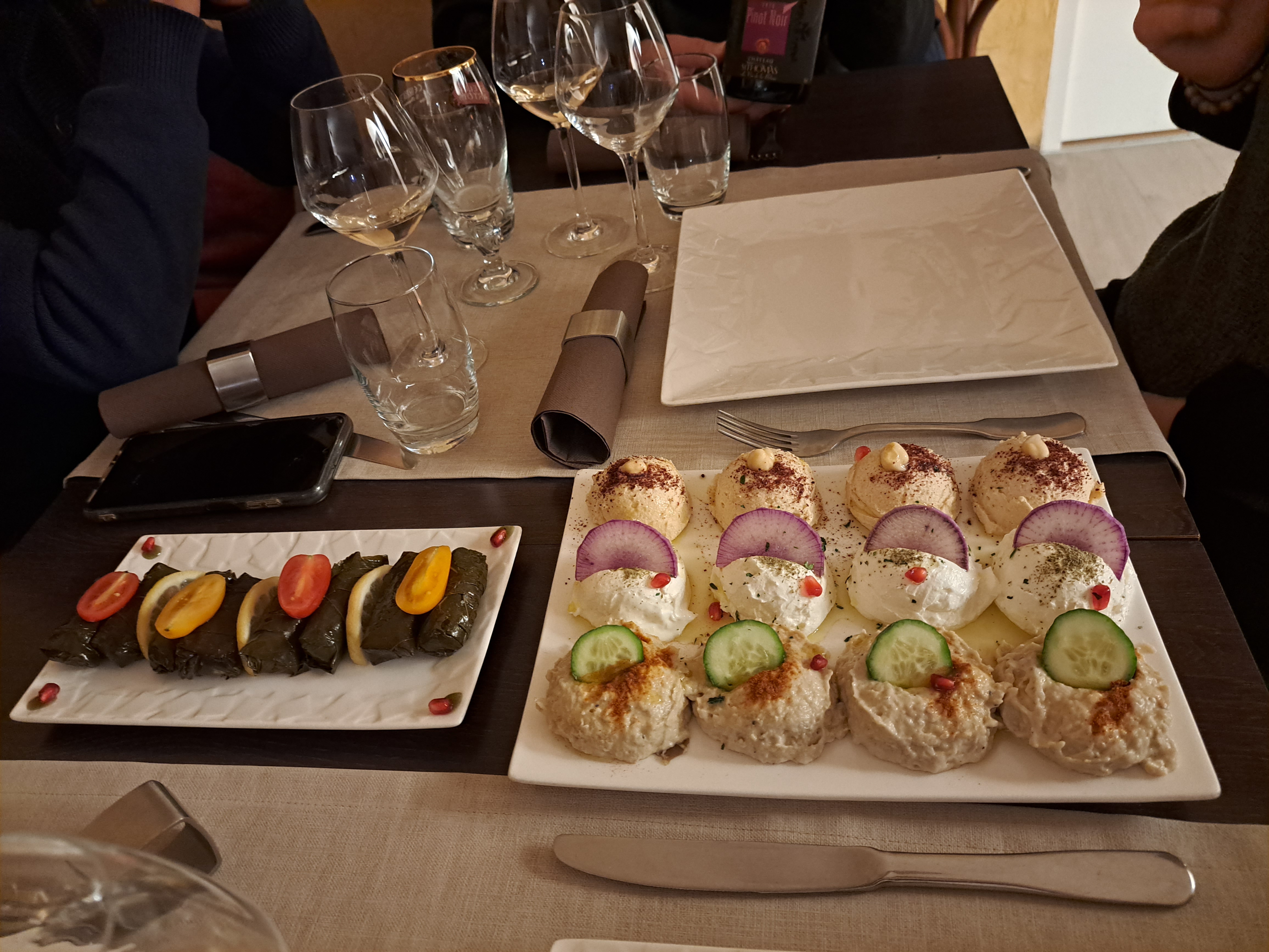 A nouveau conquis par la cuisine libanaise, mezé du chef en 7 compositions. Des très beaux vins libanais ! Excellent !