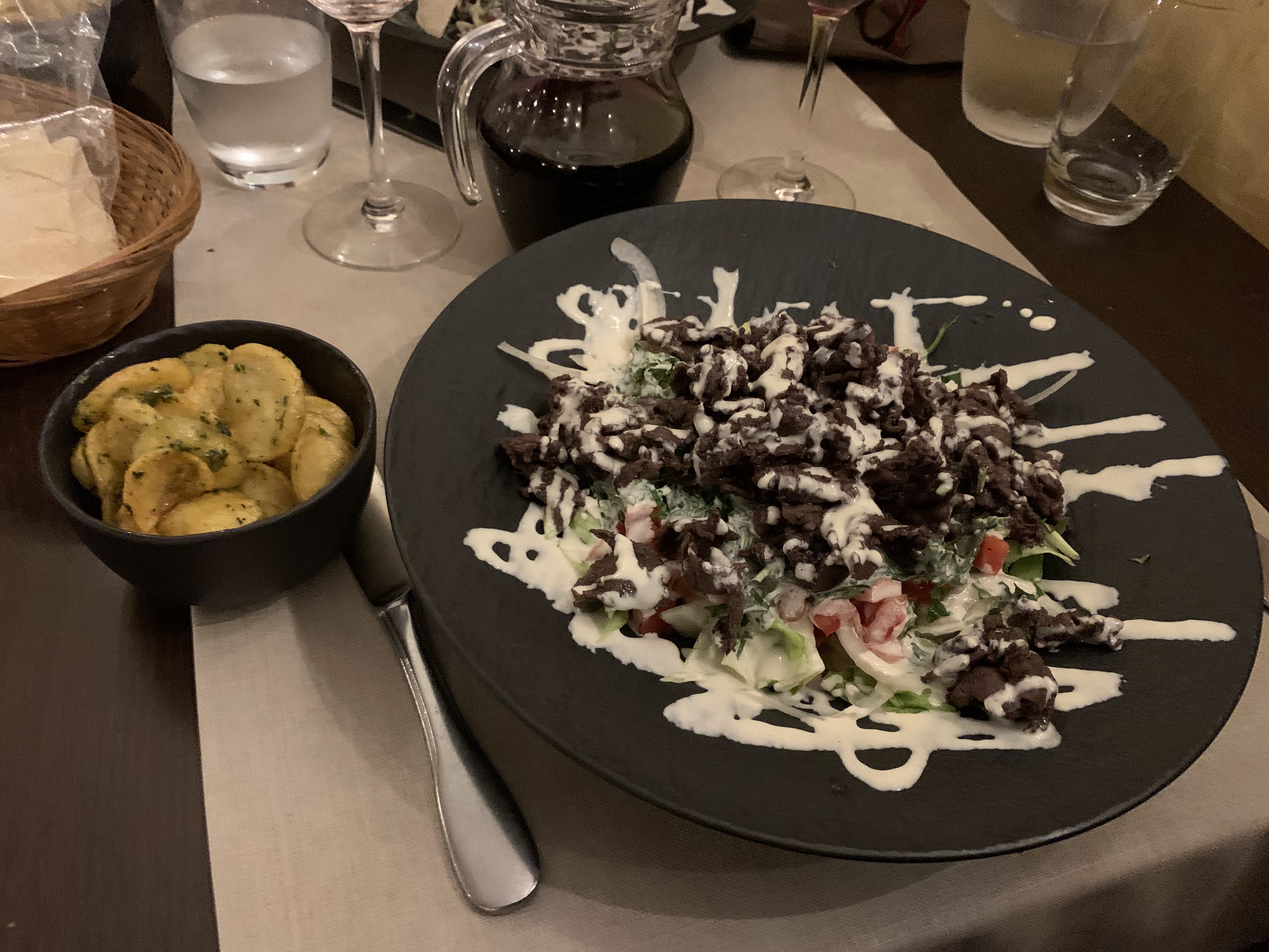 A l occasion du passage à la Catherinette de ma poto Patti Patti...et a son initiative...même si elle réservé ailleurs..🤣🤣🤣..on va fouiller les vestiges de Baalbek (mais pas de leurs fous....référence littéraire...🤷♂️😉)..Laura nous accueille admirablement....puis la patronne découvre émerveillée les joies de Guadalaraja !! 🤣🤣🤣 (primate joke)... déçu par les hors-d'œuvre je dois être honnête...c est les plats qui mettent le feu aux papilles !! Cotes d agneaux au top !!! Bref ! Une très belle découverte !! On reviendra !!