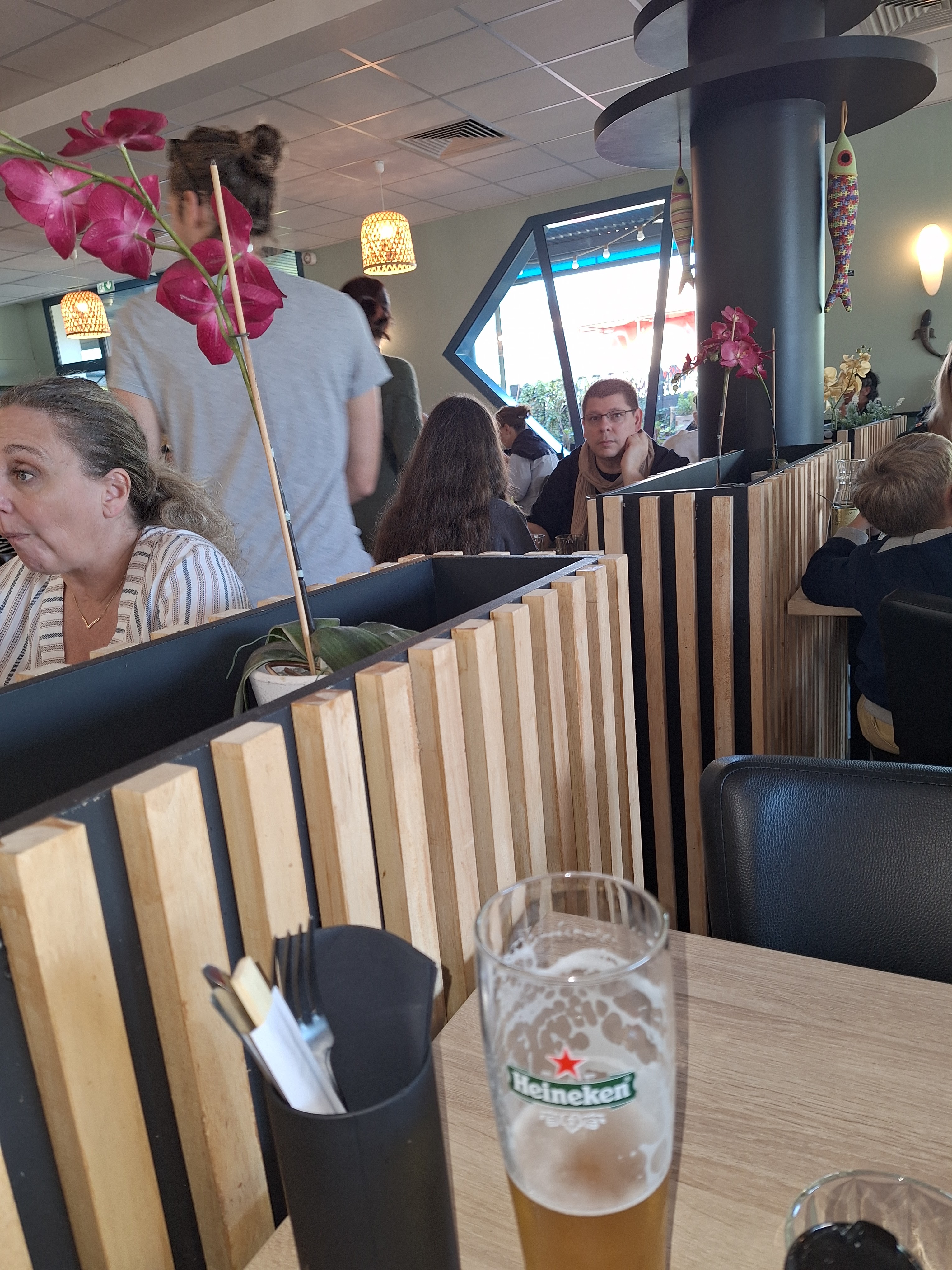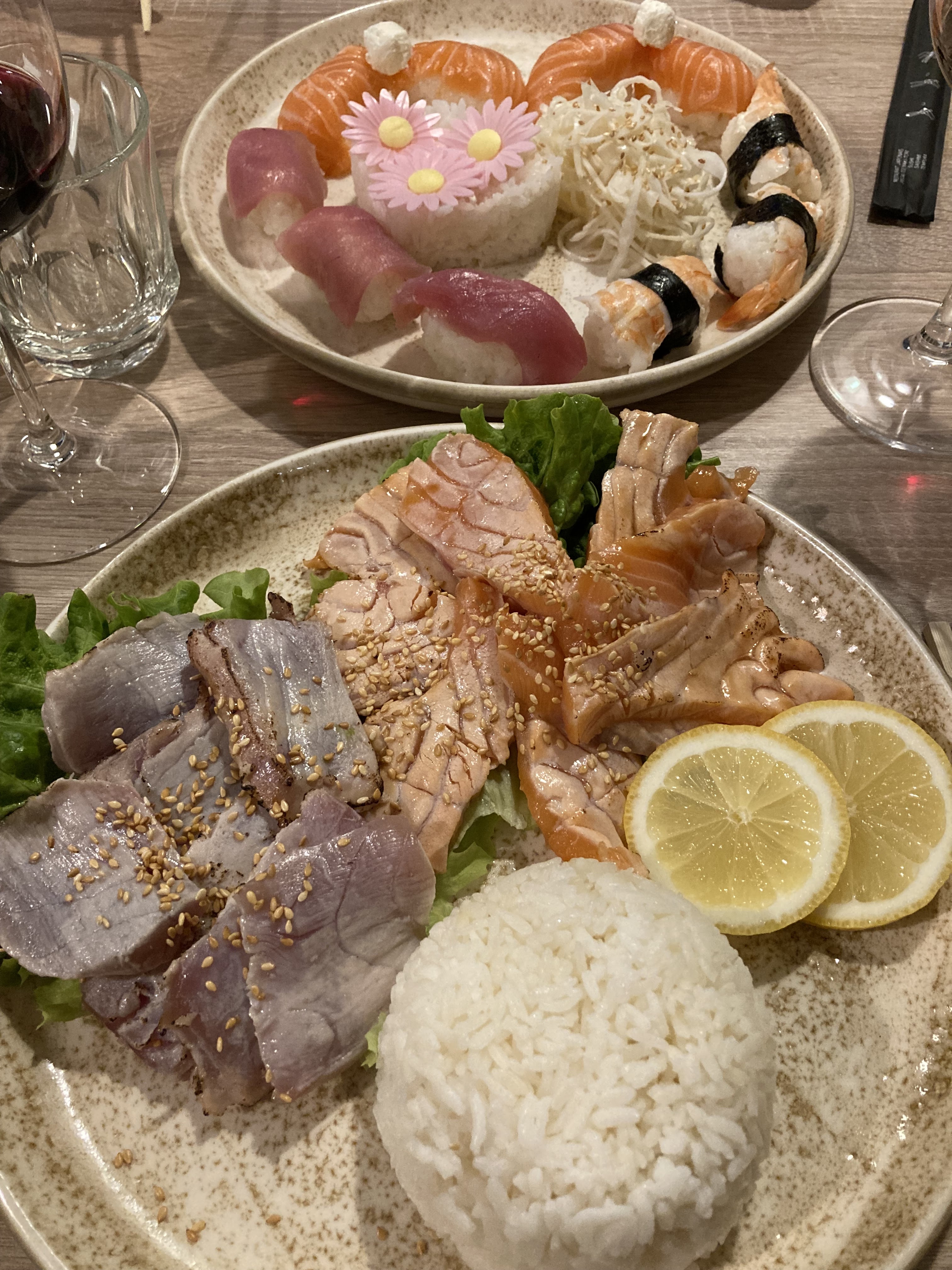 Alors là...TROP bien. A proximité de la zone commerciale et de l'aéroport, nous avons adoré. Le décor est très sympa (avec un côté salon de thé hyper cocooning pour déguster des bubble tee). Le service au top (on me propose de changer mes baguettes tombées par terre, on nous demande très régulièrement si tout va bien et nous avons pu emporter en doggy bag nos restes.) Mais surtout nous avons vraiment très bien mangé ! Notre fille a choisi dans le sushi bar. Très frais et très bon Mon mari et moi nous sommes lâchés avec le menu dégustation. 60 EUR pour 2. C'est vraiment pas exagéré car on a goûté beaucoup de choses . Exemple : ravioli fris, samoussas et crevettes de qualité (pas une bouillie à l'intérieur mais vraiment cuisinés), puis une bonne soupe miso, salade de choux, une assiette gigantesque de 2 variétés de viande marinée (canard et poulet) et une assiette de légumes, puis sushis et café gourmand (tres bon) Alors résumé : ça vaut le détour ! Je recommande (et je crois avoir rarement fait autant de compliments)