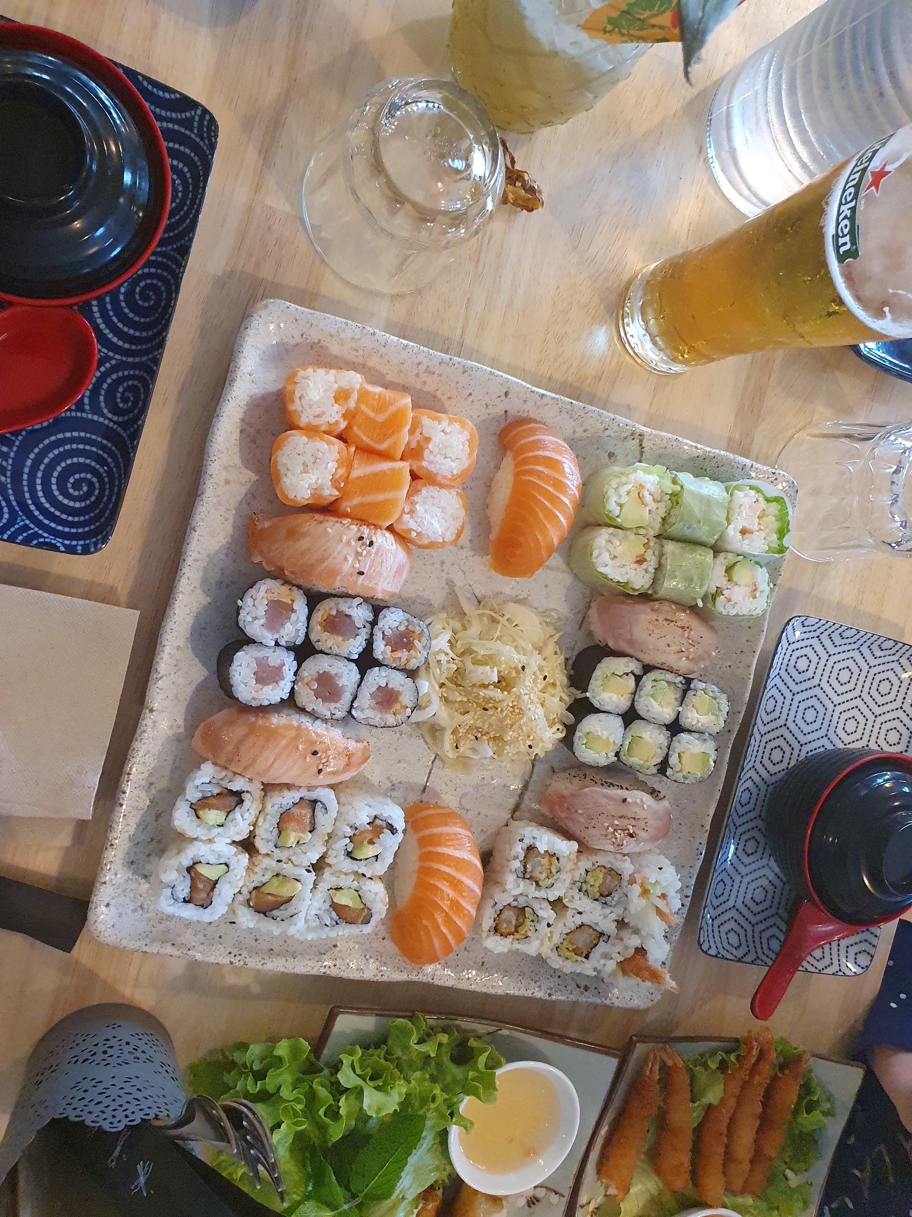 Le buffet est riche (même s'il n'y a que peu de variété de sushis et makis). Un conseil : laisser de la place au délicieux desserts, même si c'est plus facile à dire qu'à faire ☺ Les mouches errantes étaient le seul point noir !