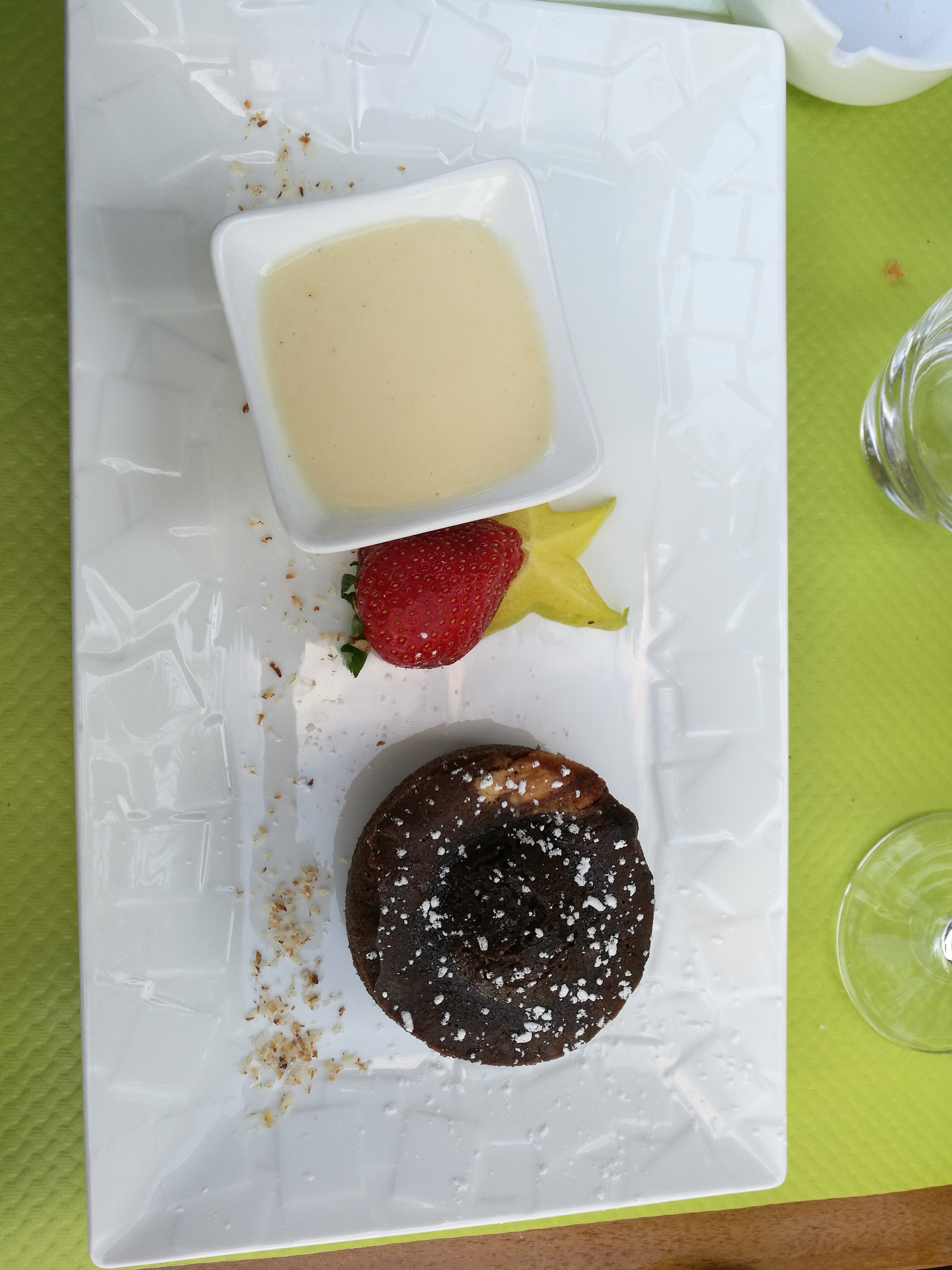 Plat excellent, dessert au top, coktail délicieux (cela dis assez excessif au niveau du prix), le cadre et sympas au abord de la plage, les pieds dans le sable, cosi car endroit clos, vraiment un bon moment.