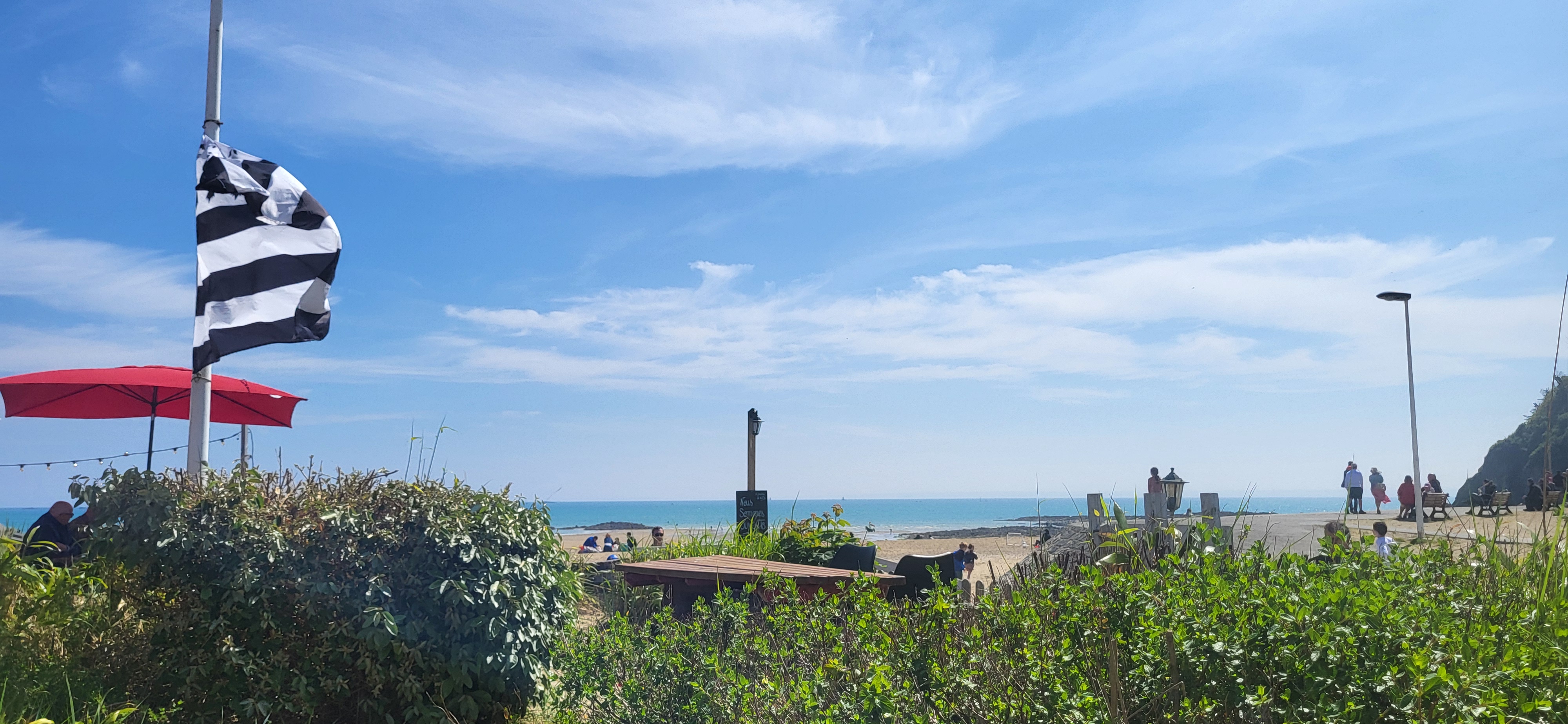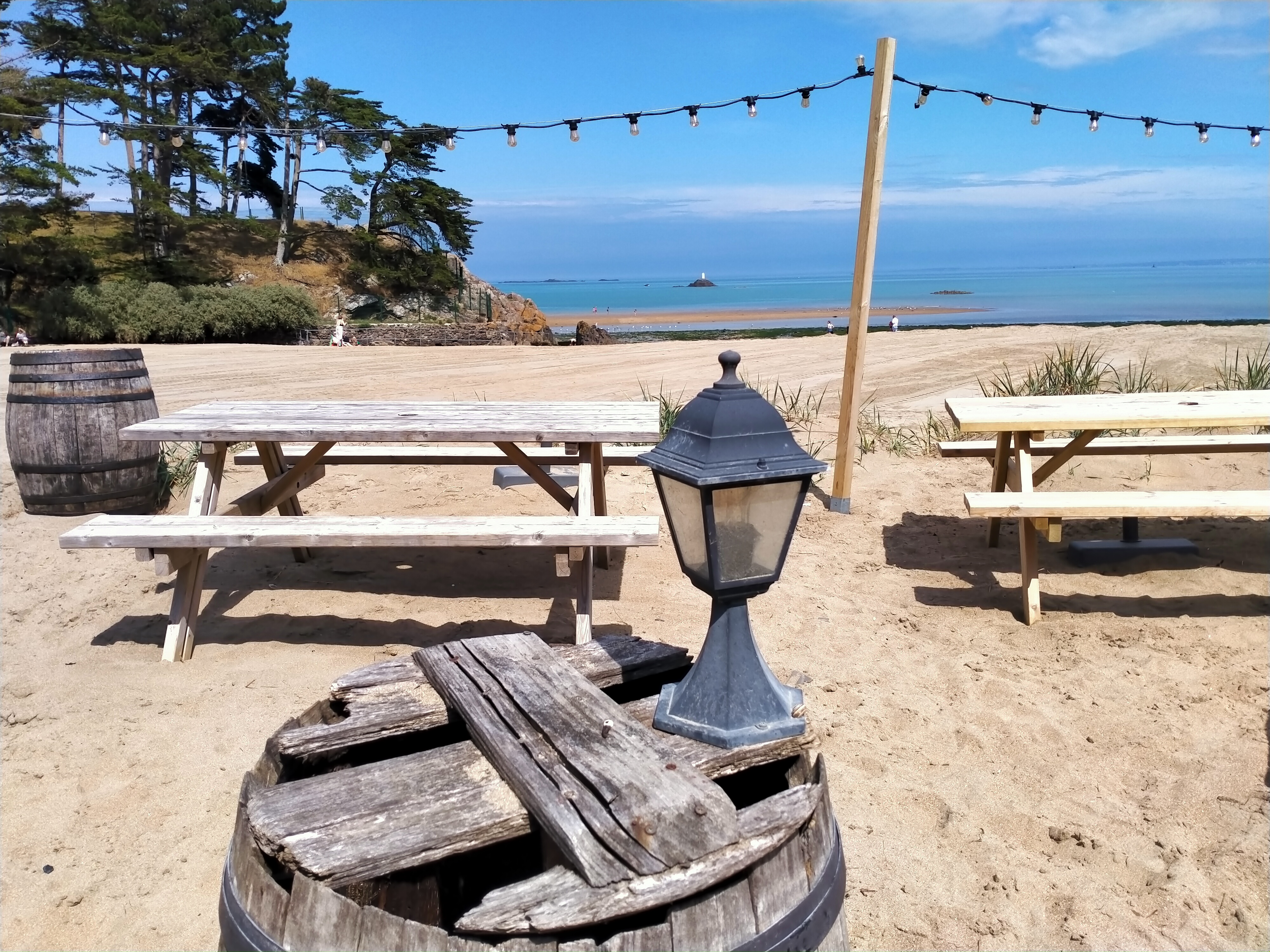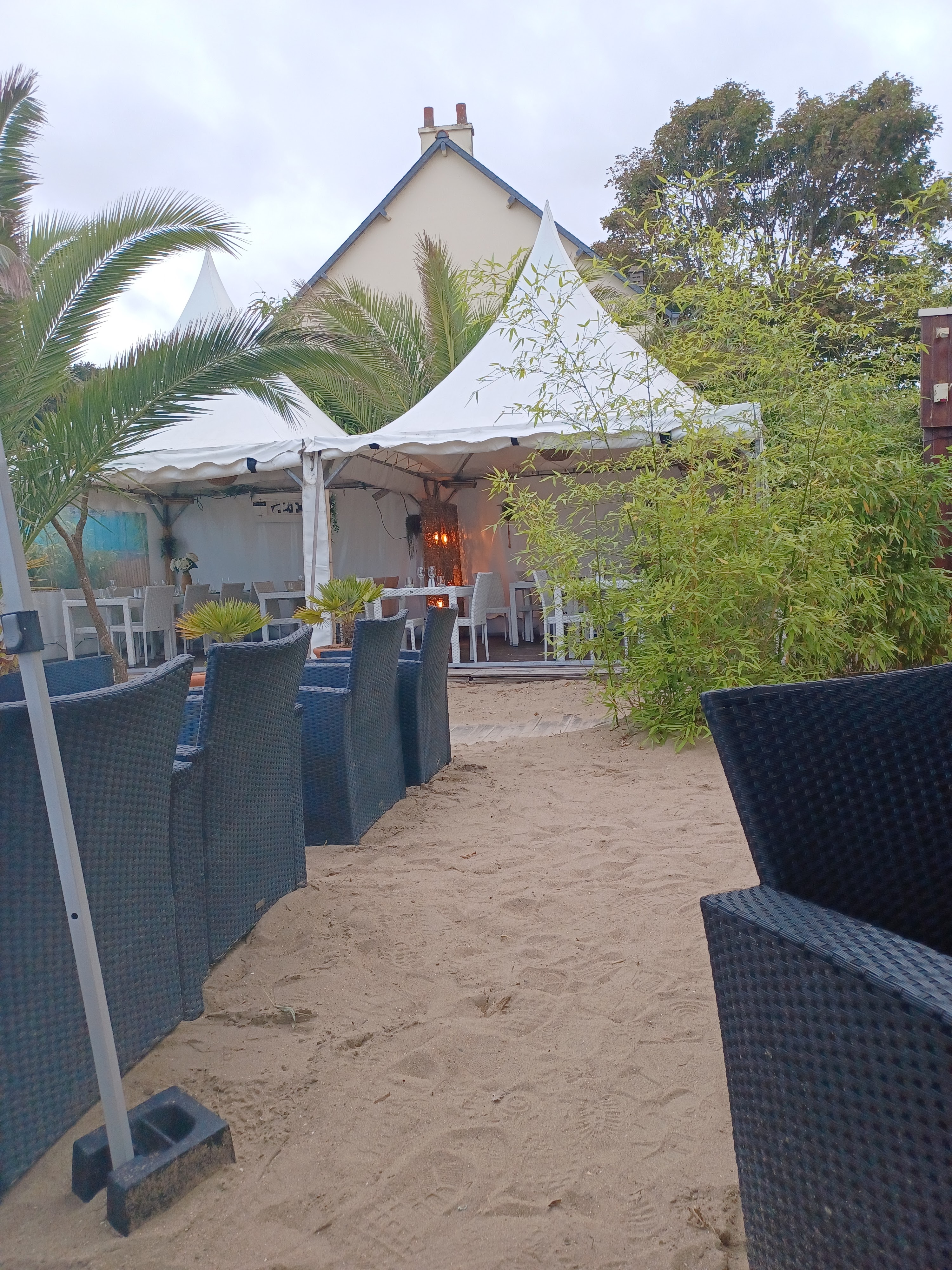 Un superbe endroit sur le sable et presque les pieds dans l'eau en bretagne !!! Ambiance du sud ou des ile paillotte loundge.. tres tres sympa .., et personels idem Un seul bémol ..vraiment domage d'etre dans une region agricole et maraichere et servir une salade sous vide et oxydée..!!! Au prix de la salade a la carte ont ne demande pas mieux qu'une vrai bonne salade du maraicher du coin !!!! Vraiment domage