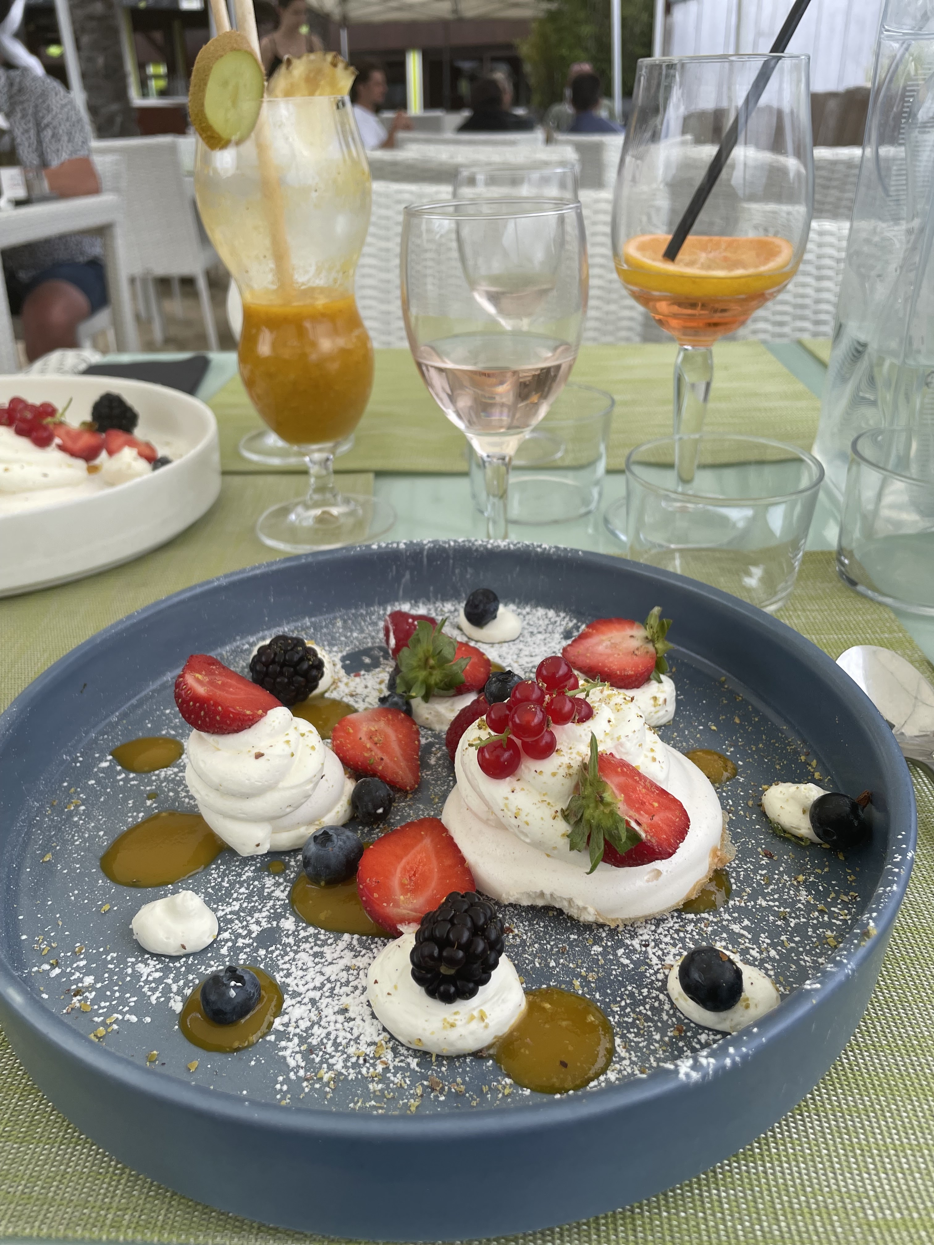 Cadre vraiment sympa, vue sur la plage quand on mange sur la trrrasse. Intérieur vraiment jolie, de style jardin zen / Îles. Nous avons été installé à l'intérieur juste à côté de l'enceinte audio, et du bar. Nous ne pouvions nous entendre, la musique était beaucoup trop forte, même en ayant demander gentiment aux serveurs de baisser un peu. Personnel au bar très bruyant (grossièreté, verre qui se casse). Le patron portait son masque sous le menton, celui qui s'occupait des cocktails ne n'en portait pas non plus. Notre repas à été servit avant le cocktail sans alcool. Prix assez excessif, rien d'extraordinaire dans ce qui était servit. Peut-être que si nous n'avions pas été si mal placé, cela aurait été mieux.