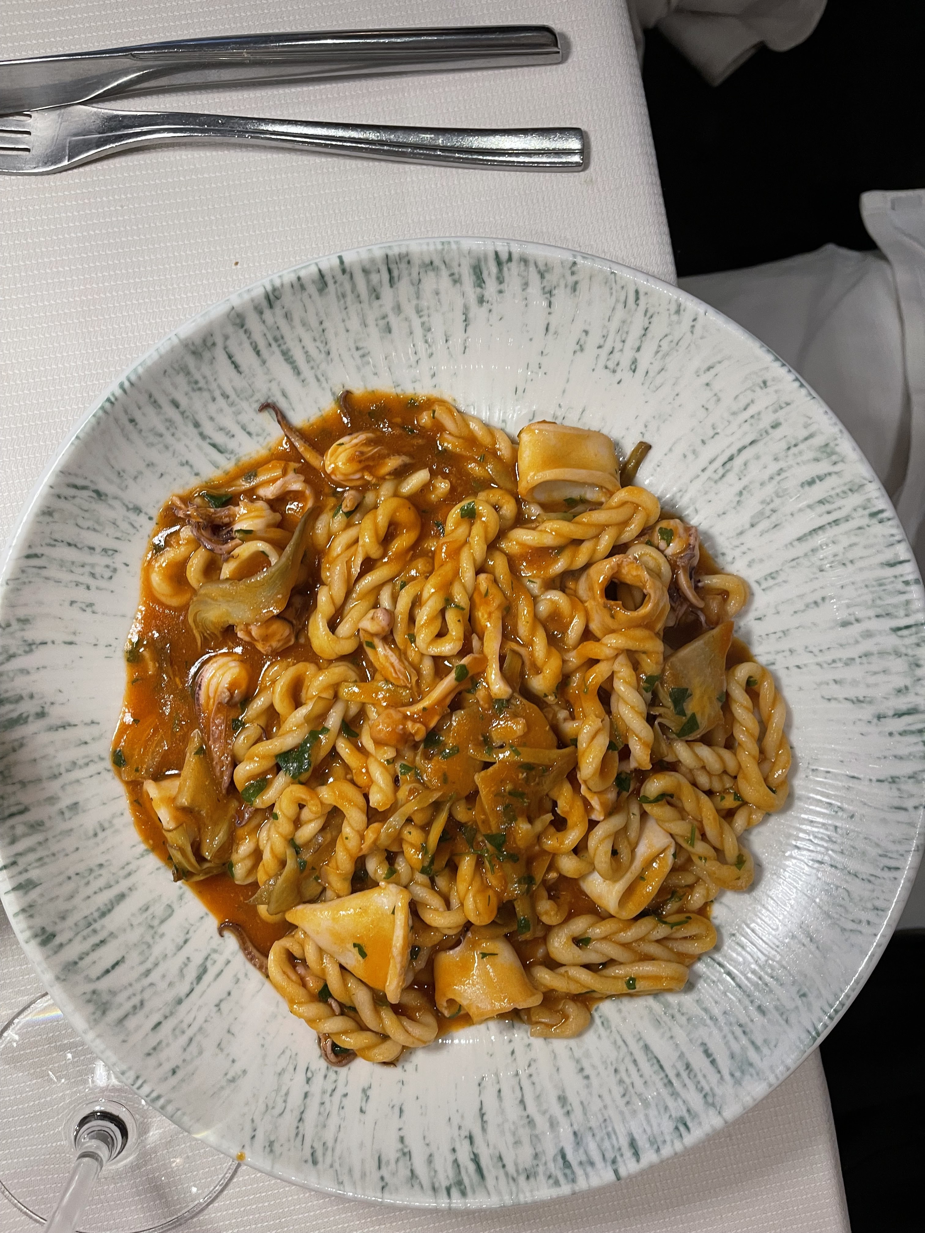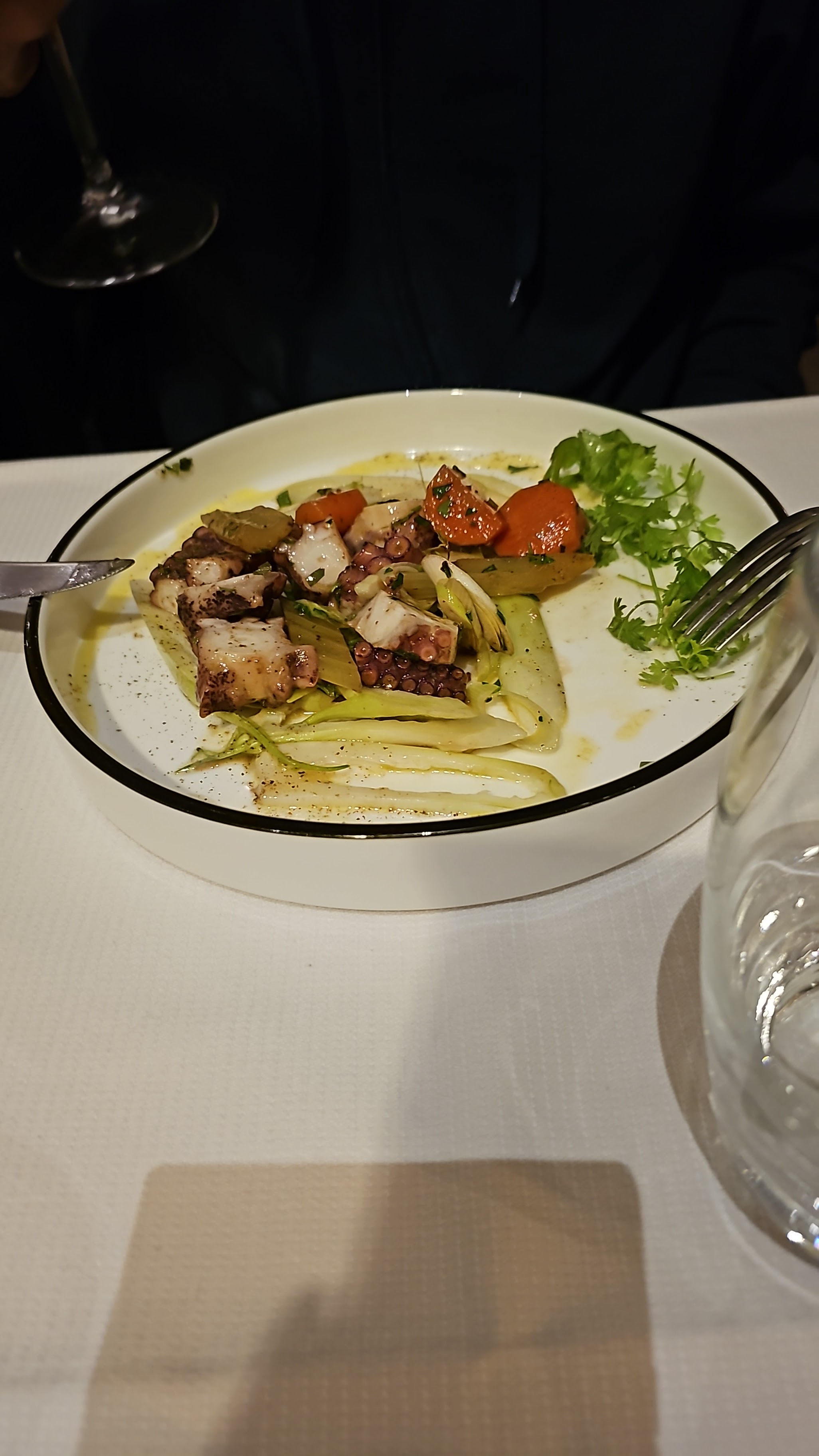 Dîner incroyable... Cuisine italienne avec des spécialités sardes exquises, chef italien super sympa, attentif et sympathique même pour une conversation après le dîner, personnel très très gentil et compétent... EXCELLENTE cuisine. Super recommandé pour un dîner italien avec un I majuscule. Excellent rapport qualité/prix. Vous pouvez voir la passion qu'ils ont et cela mérite beaucoup... continuez comme ça !